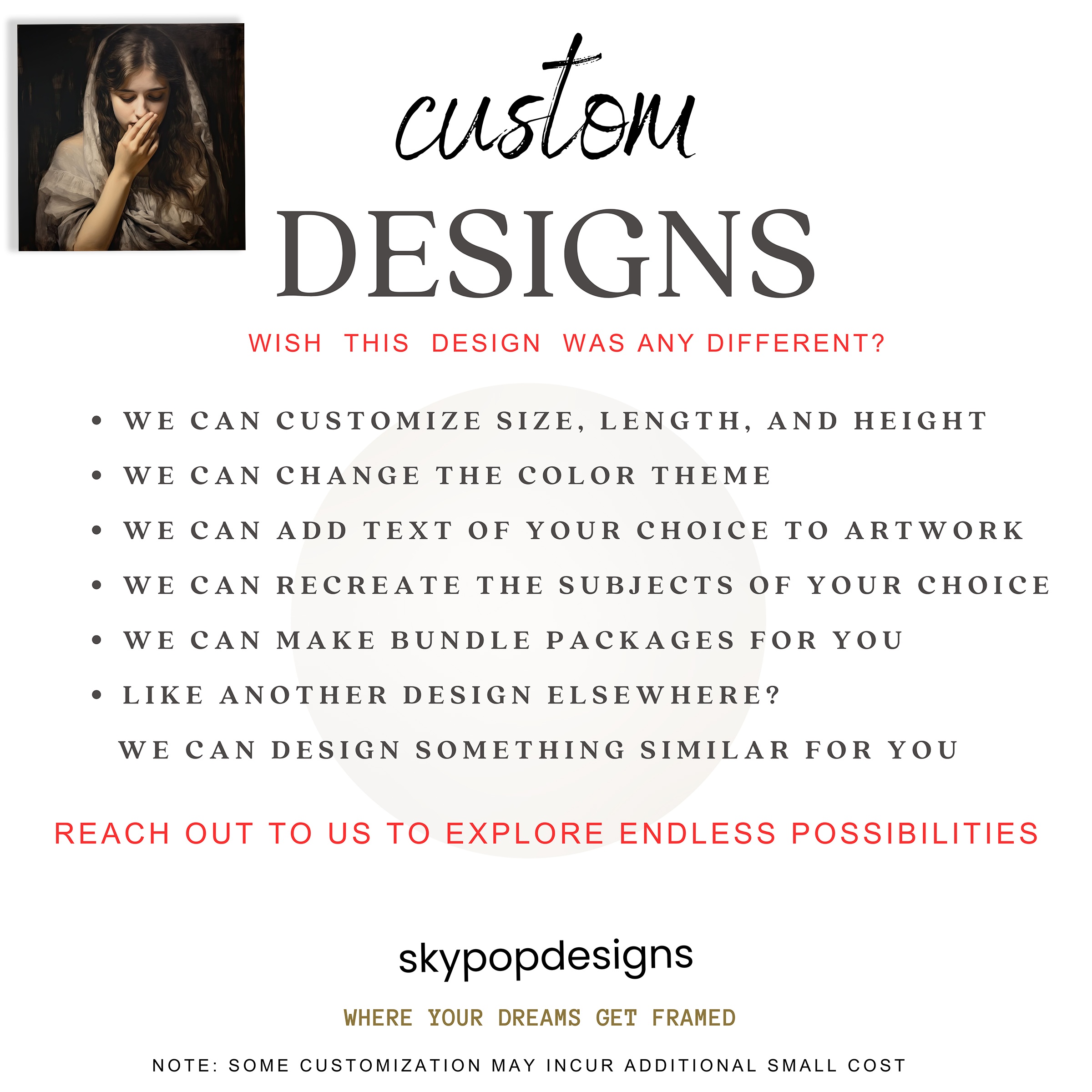 At SKYPOPDESIGNS, we specialize in high-quality canvas and poster prints designed to bring sophistication and style to your space. Please note that our designs are not created with 3D textures or as original oil, acrylic, or watercolor paintings; they are instead HD reproductions of original artwork. This approach allows us to offer these visually stunning pieces at competitive prices, ensuring you receive top-tier, maintenance-free art that’s easy to enjoy.