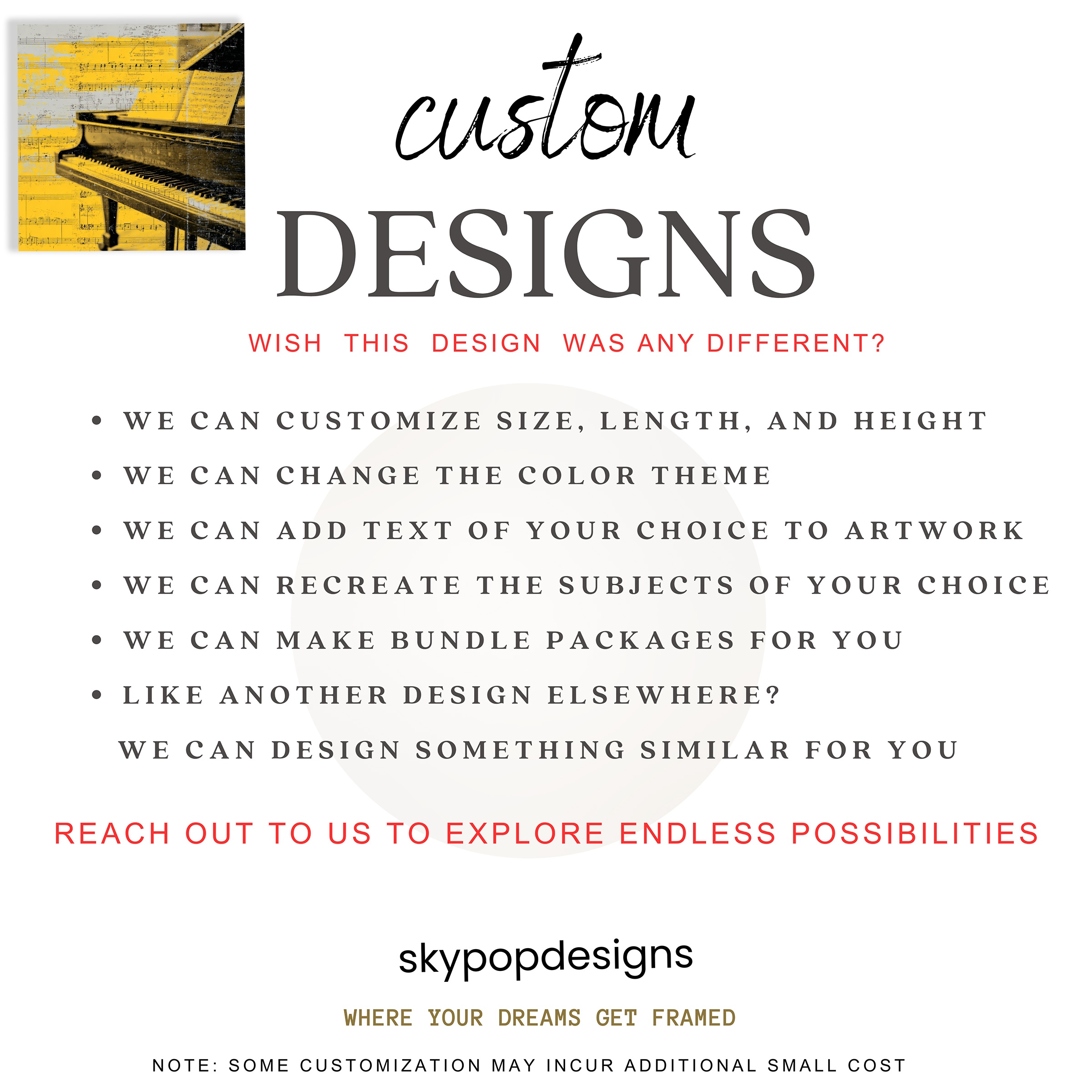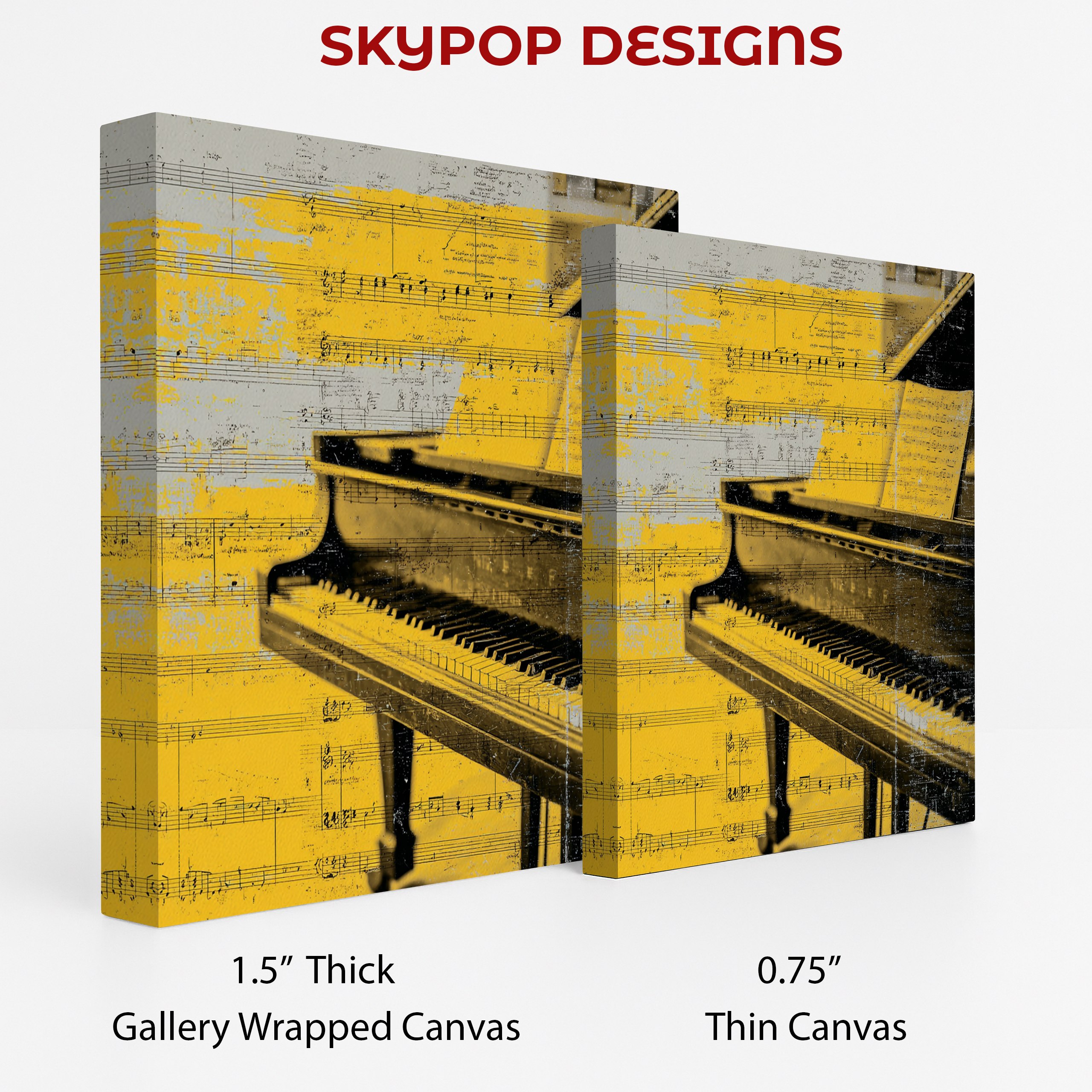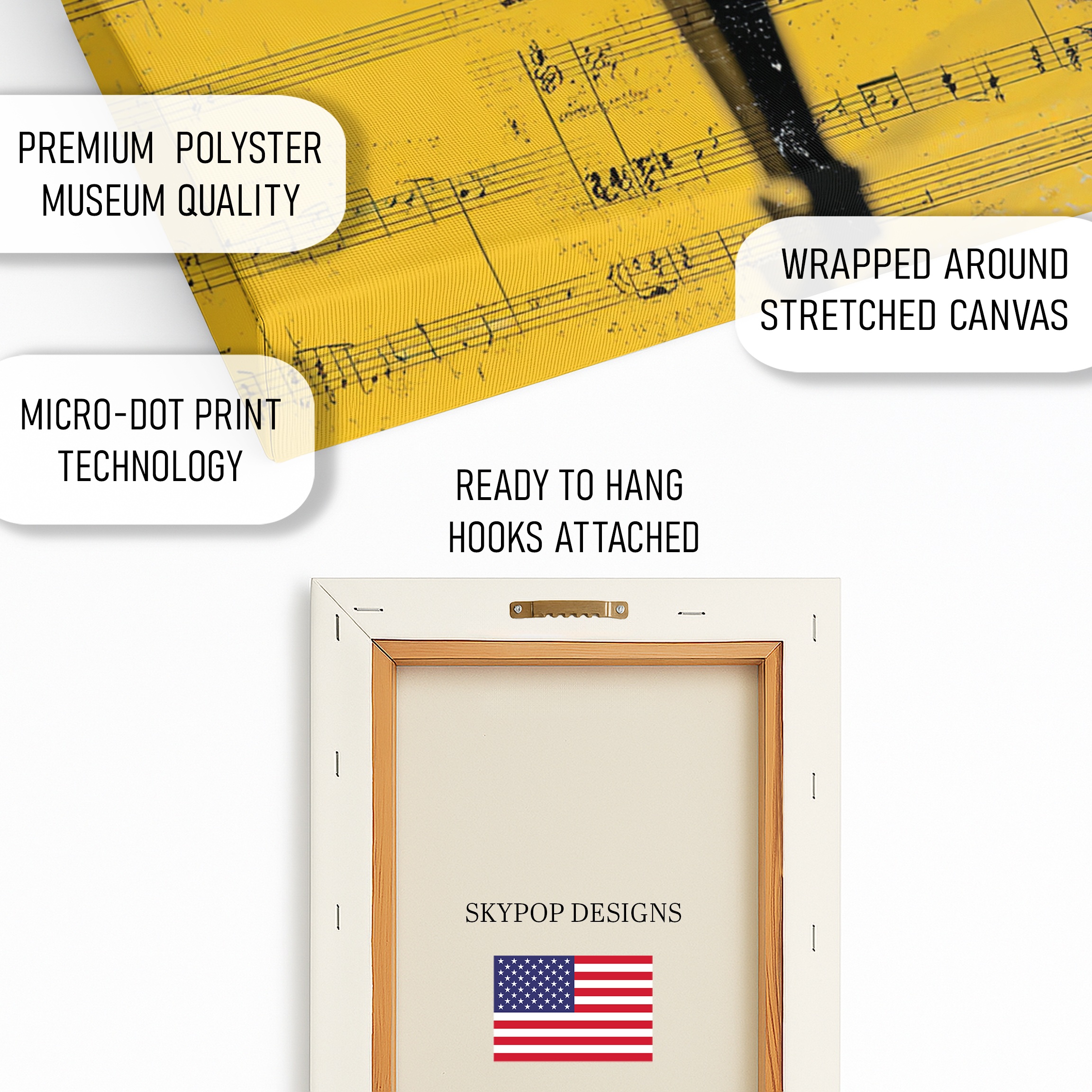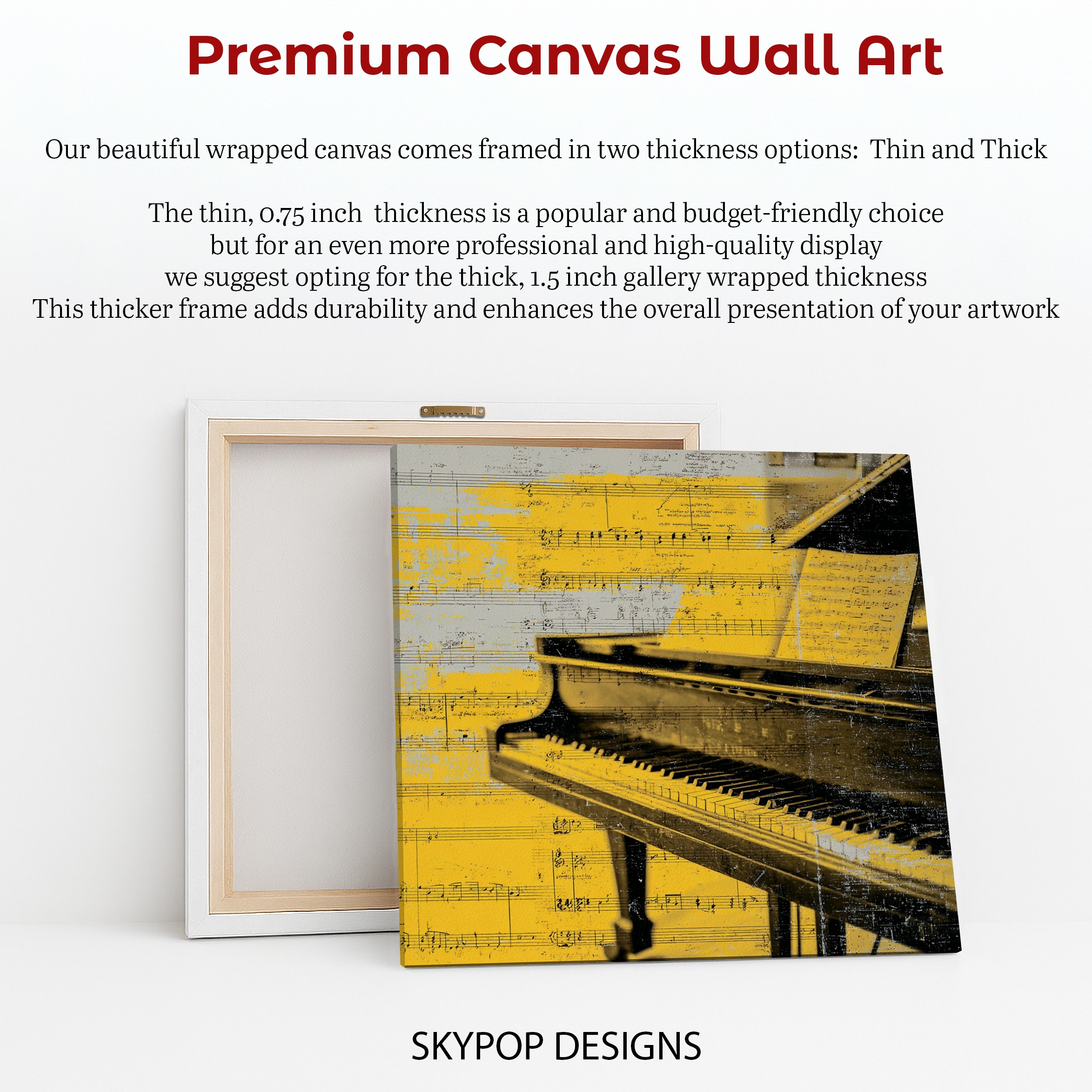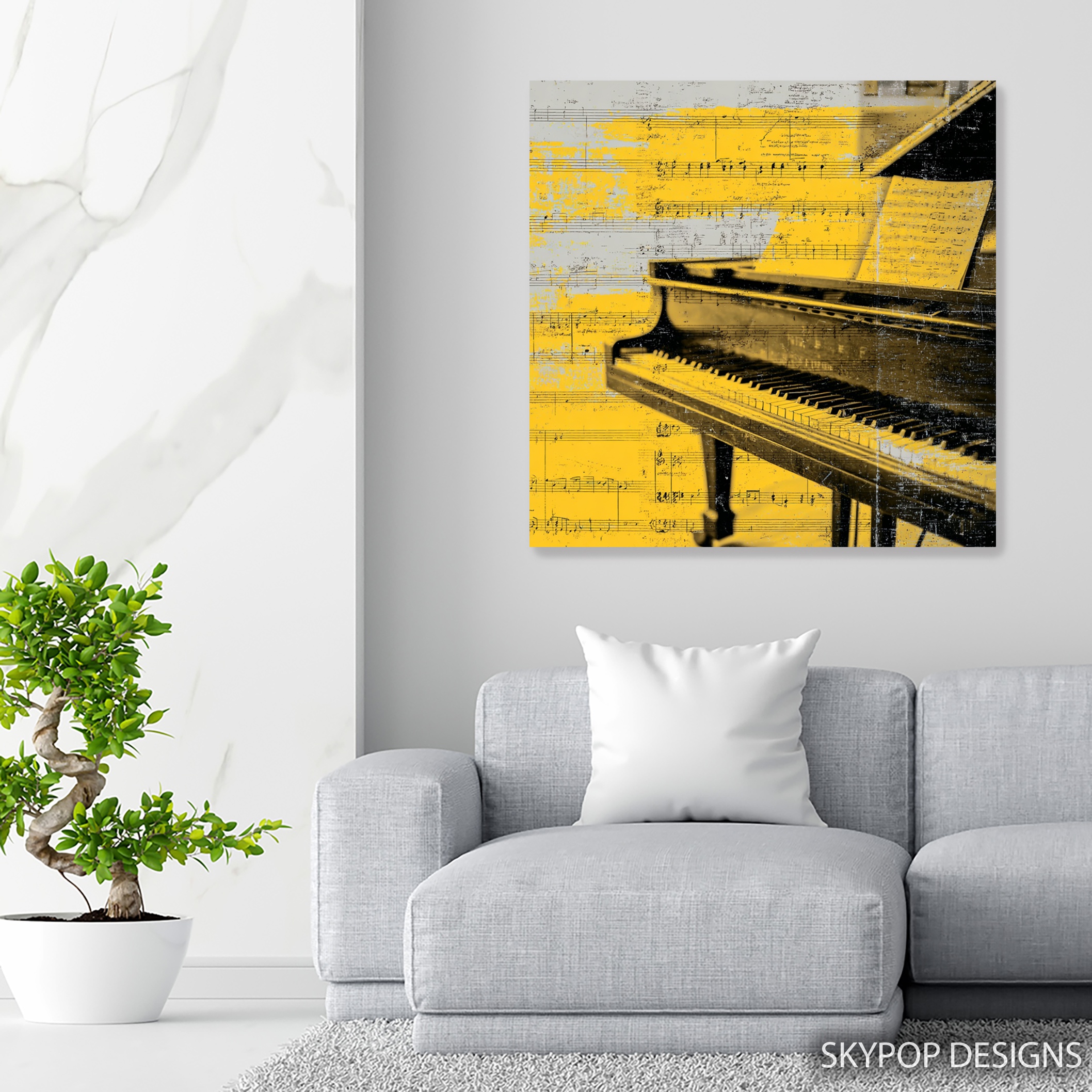 Elevate your space with this striking piano canvas wall art that beautifully merges music and visual artistry. The bold yellow and black color scheme creates a captivating contrast, instantly drawing the eye and making a powerful statement in any room. This modern poster or canvas print showcases a grand piano overlaid with sheet music, perfect for music lovers or anyone seeking to add a touch of sophistication to their decor. The vibrant yellow background infuses energy and warmth, while the crisp black piano keys and musical notation provide structure and depth. Ideal for contemporary living rooms, home offices, or dedicated music rooms, this piece effortlessly blends vintage charm with modern aesthetics. The textured appearance adds a rustic touch, making it versatile enough to complement minimalist or more eclectic interior styles. Whether you’re a pianist, music enthusiast, or simply appreciate unique wall art, this canvas brings harmony to your space. The high-quality printing captures every intricate detail of the sheet music and piano, ensuring a stunning visual experience from any angle. This artwork serves as an excellent conversation starter and can inspire creativity in your home studio or practice space. Transform your walls today with this melodic masterpiece that celebrates the timeless beauty of music and design. A perfect gift for musicians or as a housewarming present, this piano canvas art will resonate with anyone who appreciates the power of music and art combined.