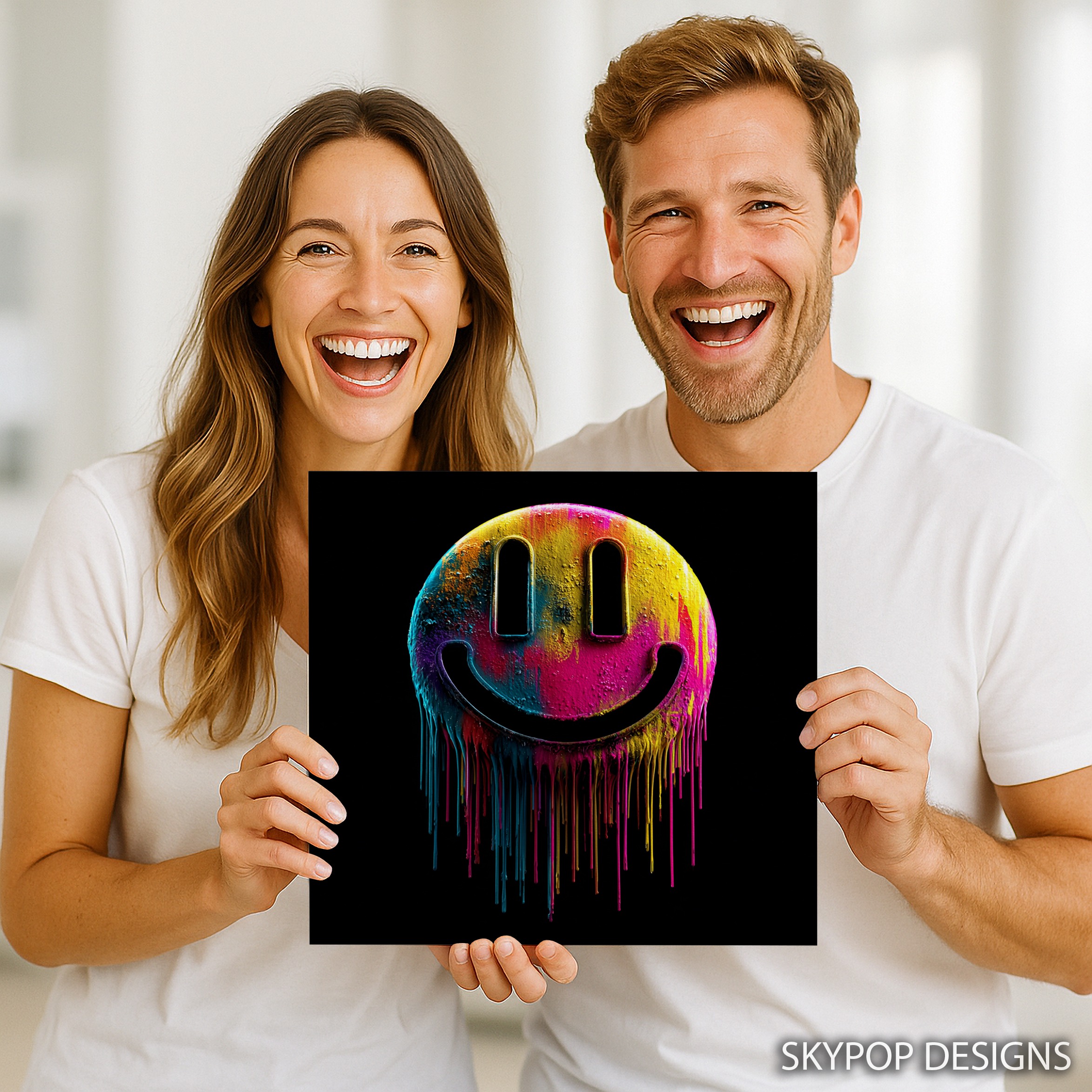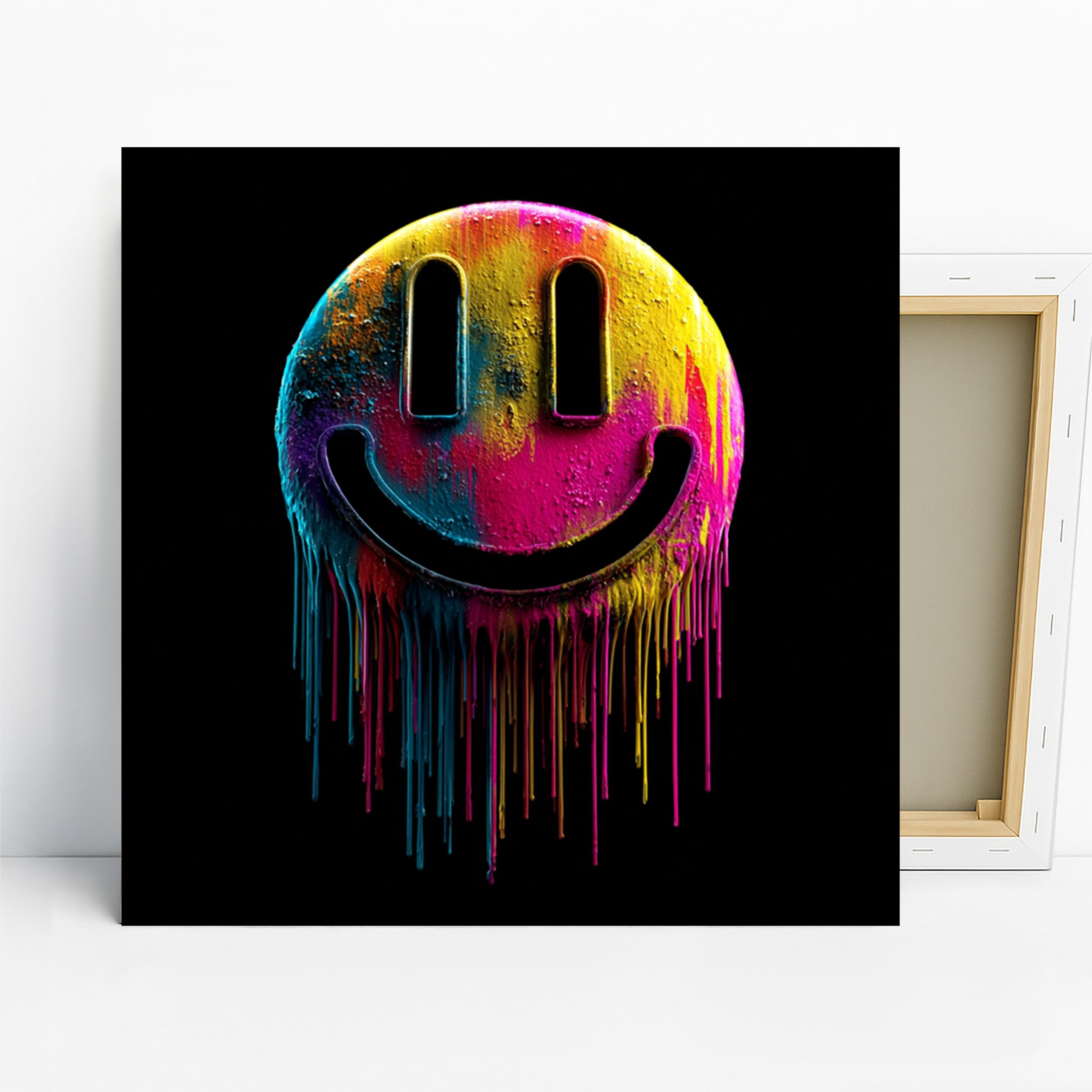 Brighten your space with this eye-catching melting smiley face canvas wall art that combines vibrant colors with iconic pop culture imagery. This striking poster features a classic smiley face design dripping with a rainbow of vivid hues, creating a mesmerizing visual effect that instantly draws attention. Perfect for modern living room wall decor or as a bold statement piece in a minimalist bedroom, this artwork adds a splash of personality to any interior. The multicolor palette of yellow, pink, blue, and more creates an energetic atmosphere, ideal for boosting mood and creativity in home offices or game rooms. This canvas art seamlessly blends retro charm with contemporary street art style, making it a versatile choice for various decor themes. The textured, paint-like effect adds depth and interest, ensuring this piece remains captivating from every angle. Whether you’re looking to inject some fun into your workspace or create a talking point in your living area, this melting smiley face poster delivers instant impact. High-quality printing captures every drip and splatter, bringing this unique design to life on your walls. Ideal as a housewarming gift or to refresh your own space, this artwork speaks to those who appreciate bold, expressive decor. Transform your room with this playful yet sophisticated piece that celebrates color, creativity, and the enduring appeal of the iconic smiley face. Add a pop of joy to your wall art collection today with this contemporary twist on a classic symbol.