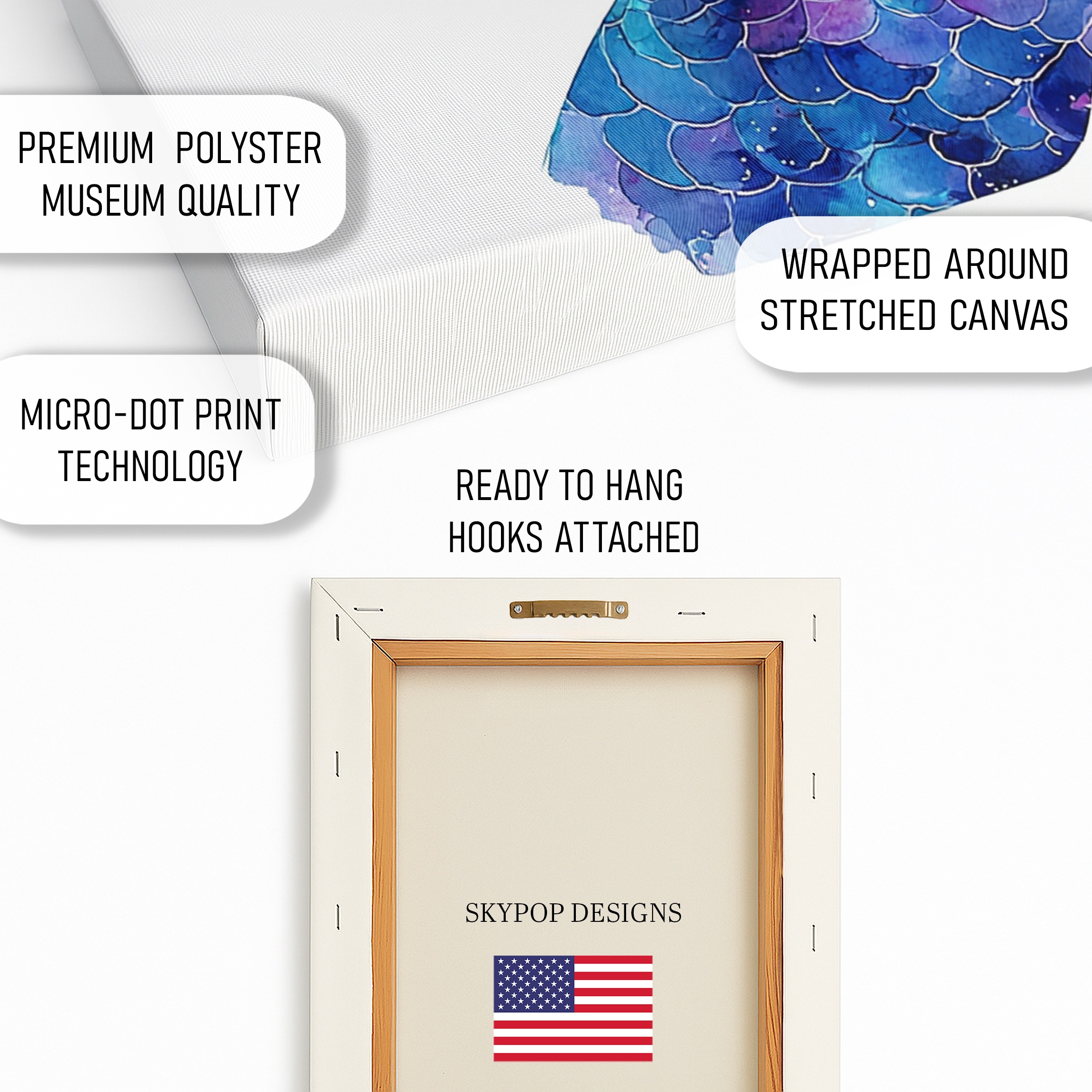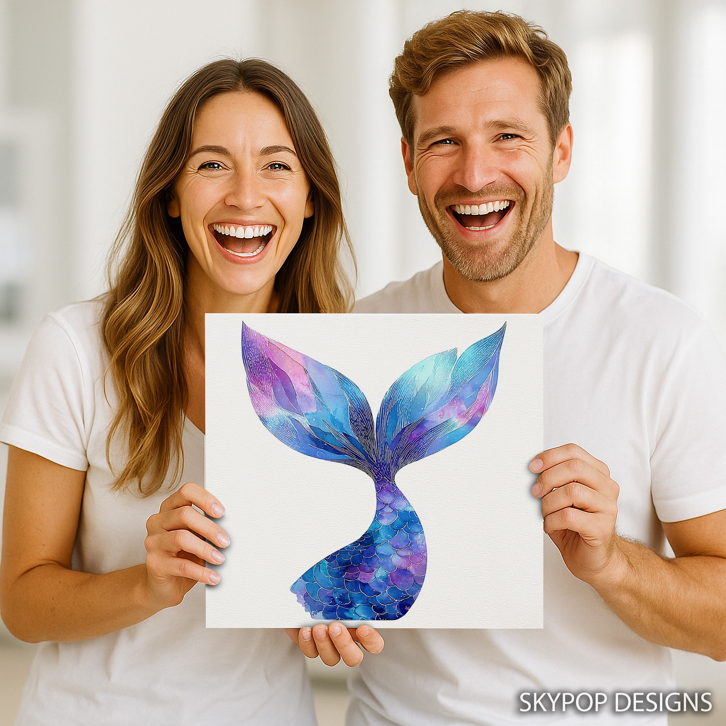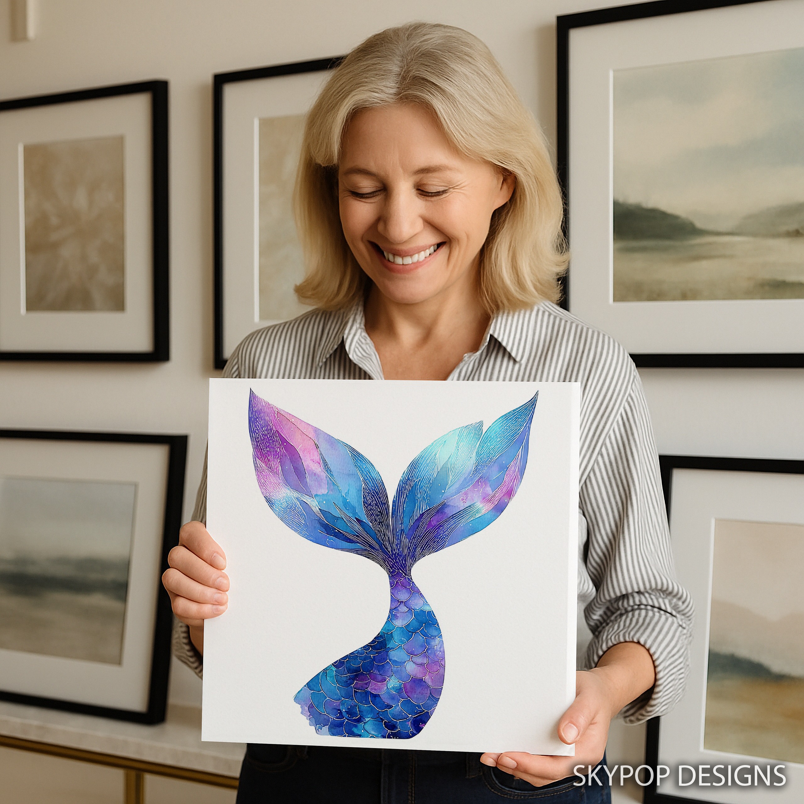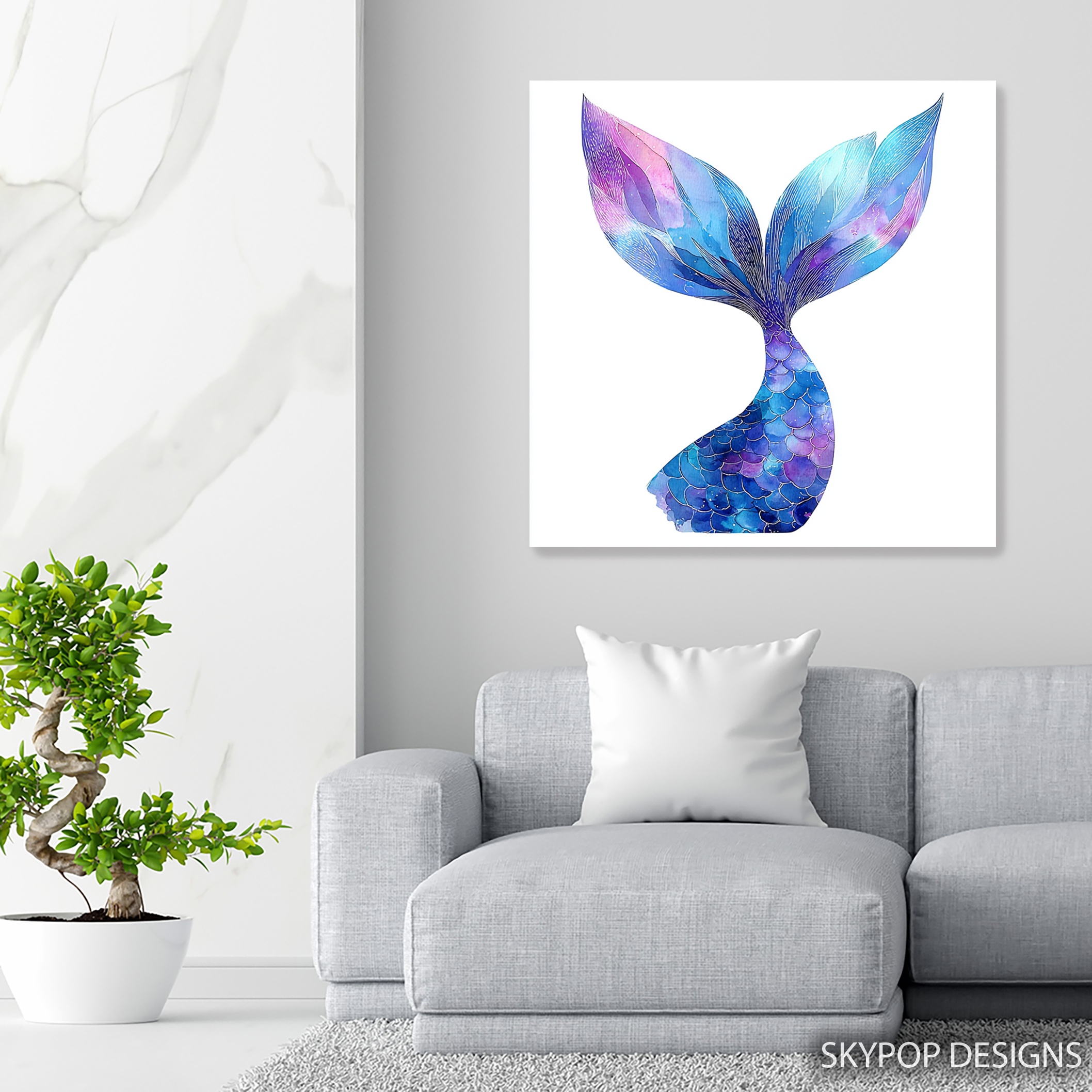 Dive into enchantment with this mesmerizing mermaid tail canvas wall art. The stunning watercolor-style poster transforms any space into an underwater wonderland, perfect for adding a touch of magic to your home decor. Vibrant shades of blue, purple, and pink blend seamlessly, creating a captivating ombre effect that mimics the shimmering scales of a mermaid’s tail. This eye-catching piece is ideal for contemporary bathrooms, dreamy bedrooms, or as a whimsical accent in modern living rooms. The abstract nature of the artwork allows it to complement various decor styles, from coastal-inspired interiors to sleek, minimalist spaces. The delicate, flowing lines and subtle sparkle effects evoke a sense of movement and mystery, inviting viewers to lose themselves in its depths. Whether you’re a mermaid enthusiast or simply love unique wall art, this versatile canvas print makes a statement in any room. Its large-scale presence works beautifully as a focal point above a bed or sofa, while smaller sizes can create charming vignettes in children’s rooms or home offices. The high-quality printing process ensures every brushstroke and color gradient is captured in stunning detail, bringing the artwork to life on your walls. Transform your living space with this enchanting mermaid tail art, and let its dreamy allure inspire your inner sea goddess every day.