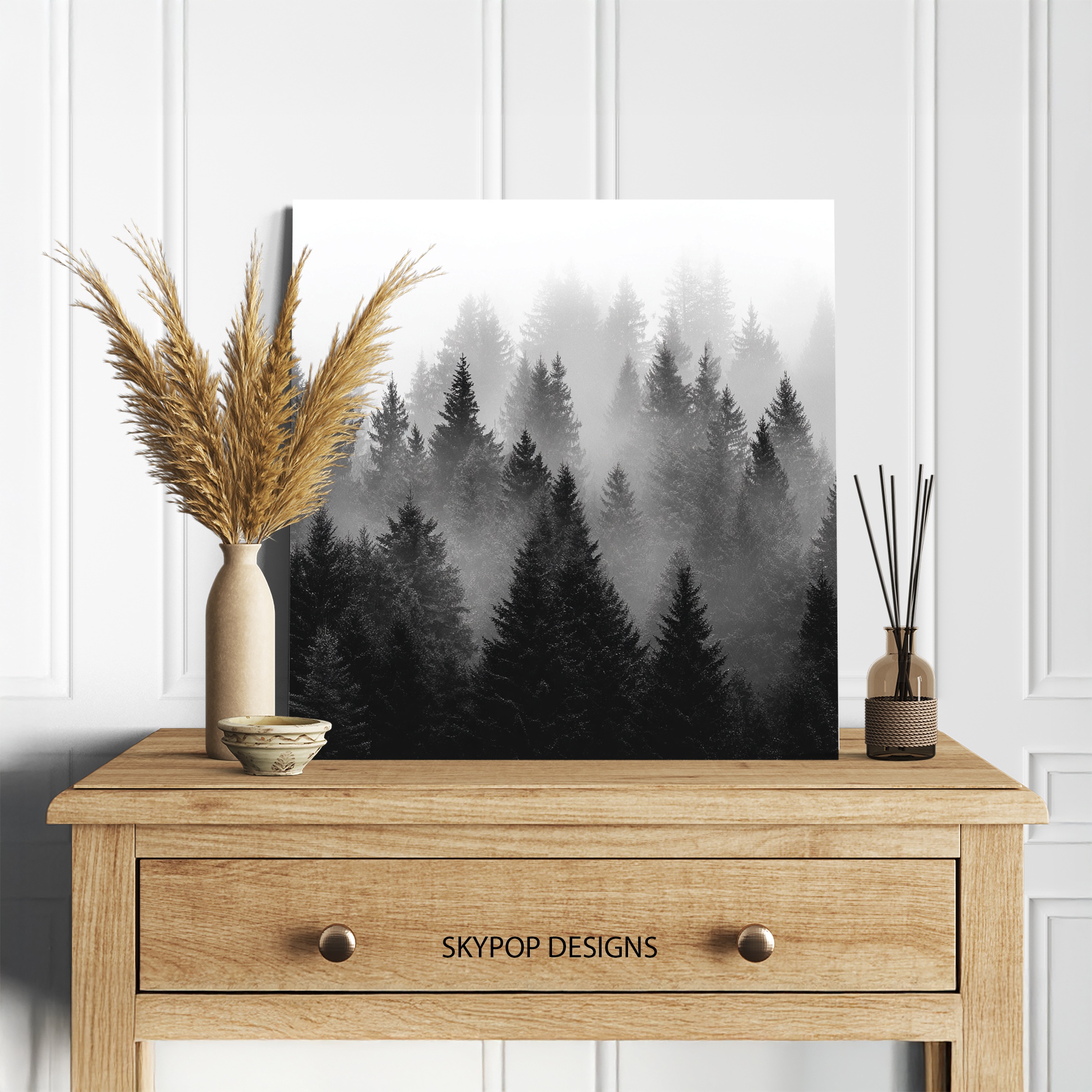 Misty Forest Art, Canvas or Poster, Nature Minimalism Decor, Living Room Bedroom Office Bathroom Wall Art, Black White Grey, Modern Wall Art