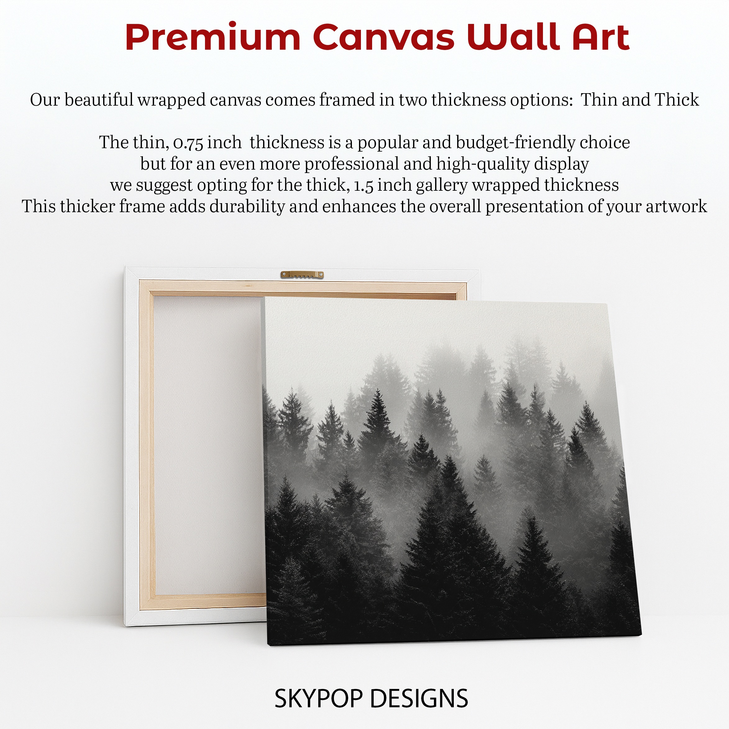 • Thick Canvas — 1.5" deep: gallery-wrapped edges for serious wow.