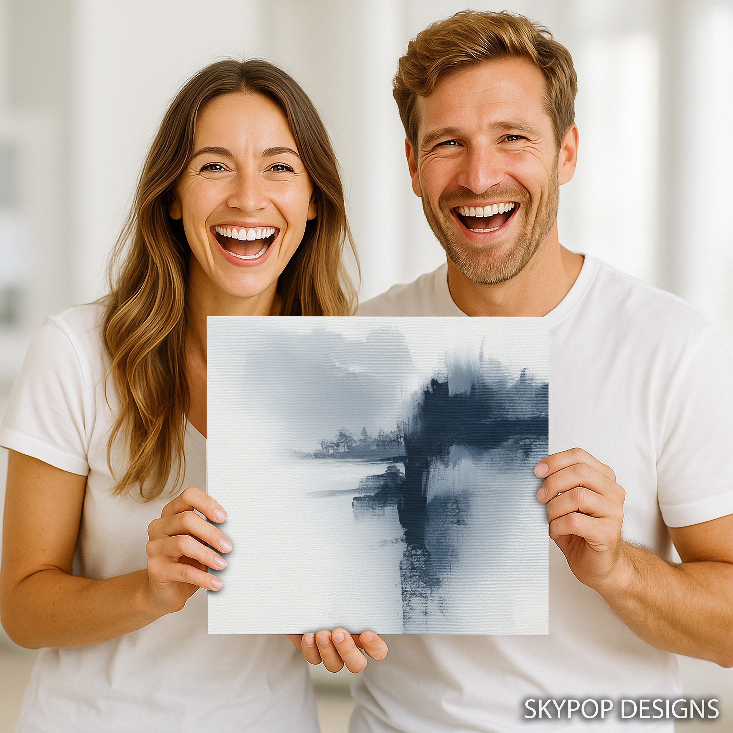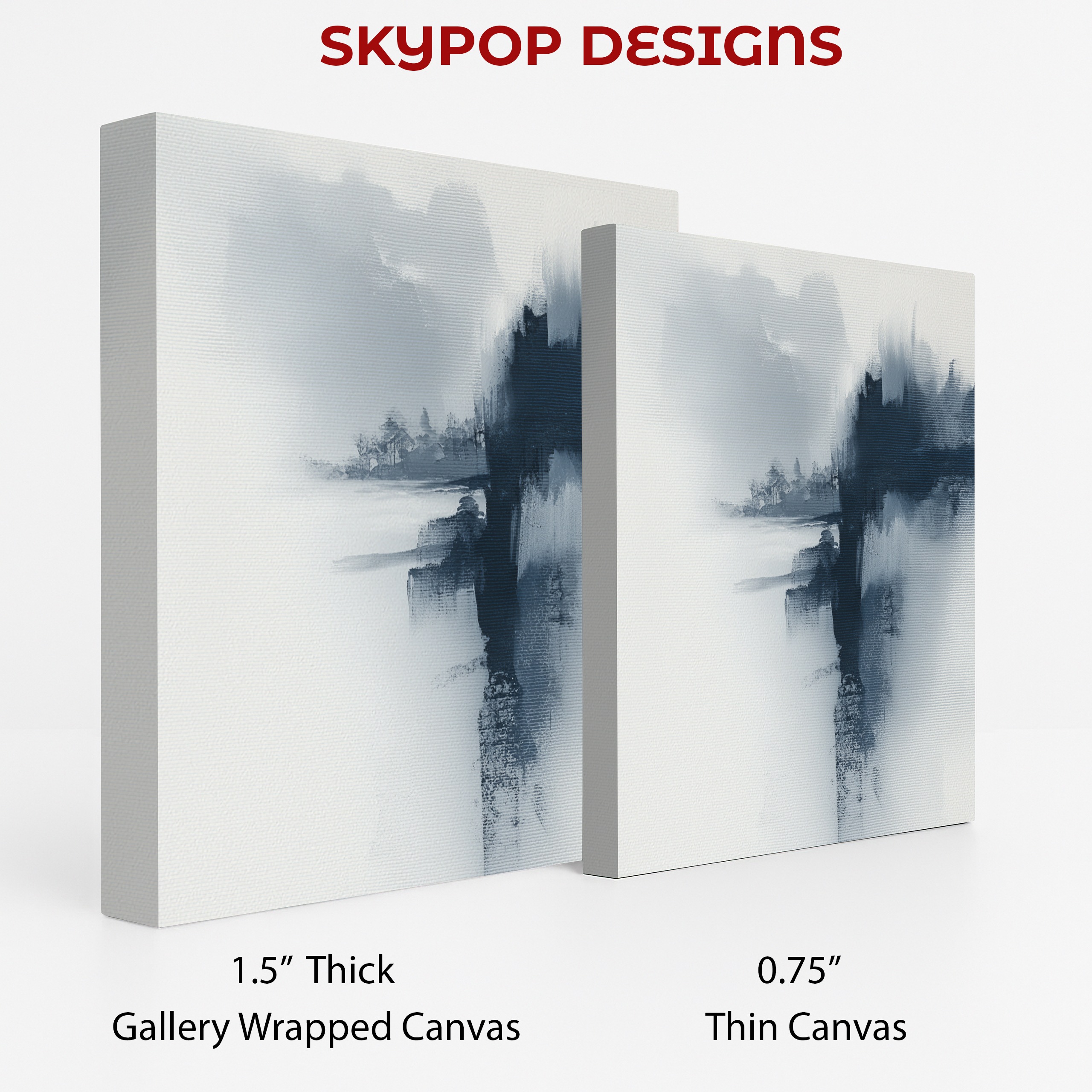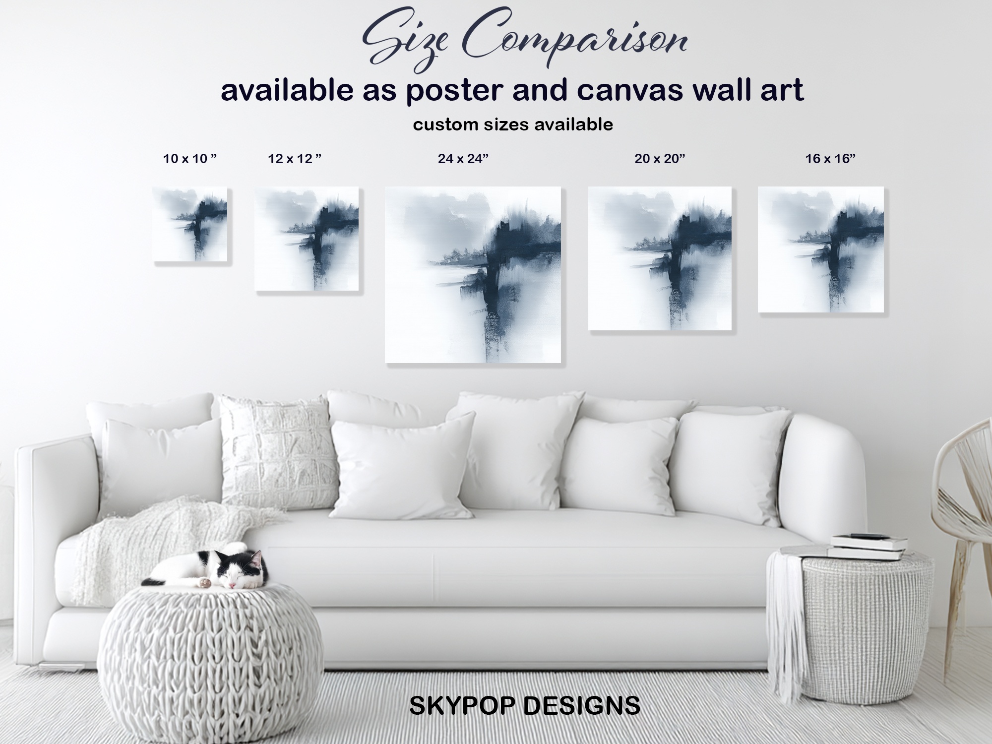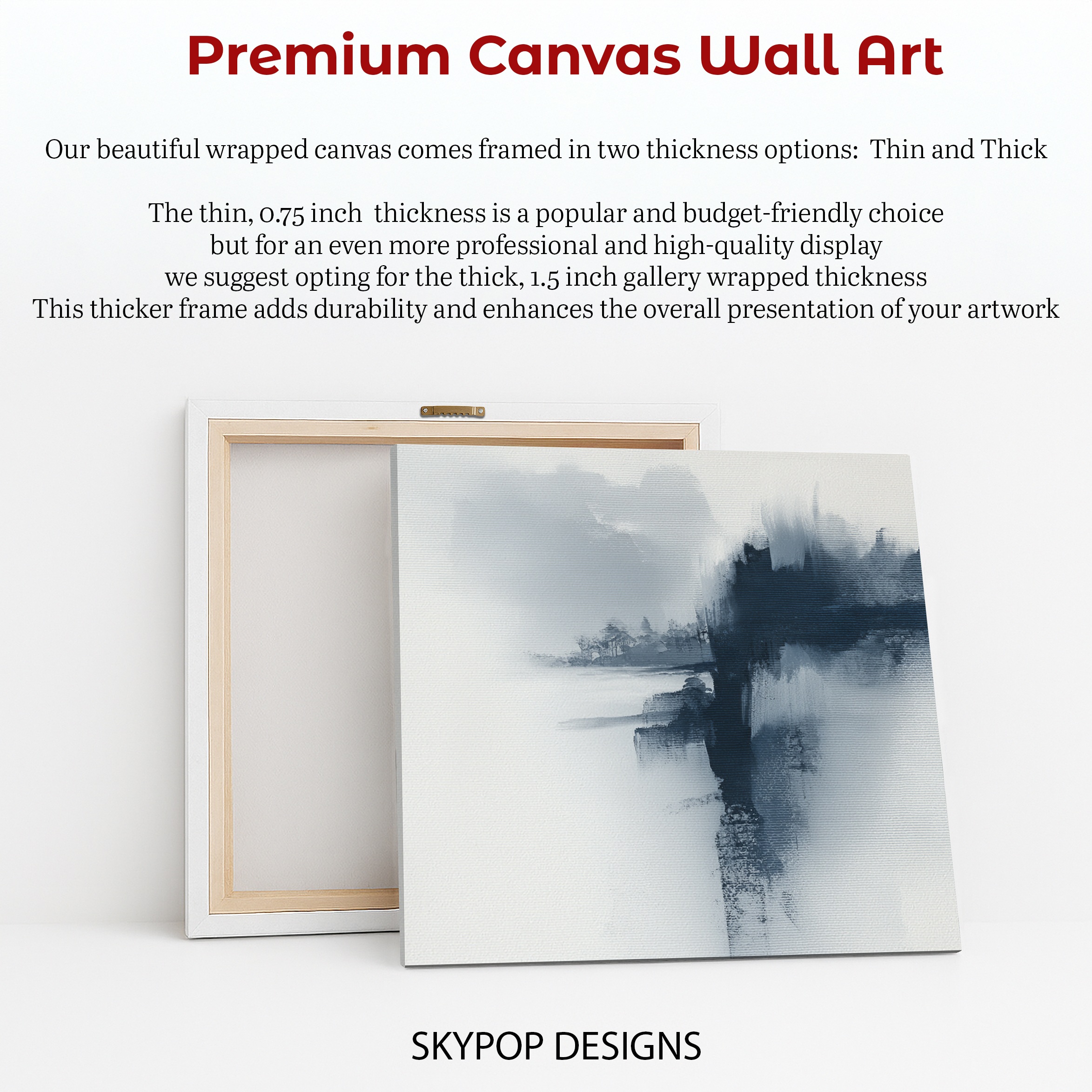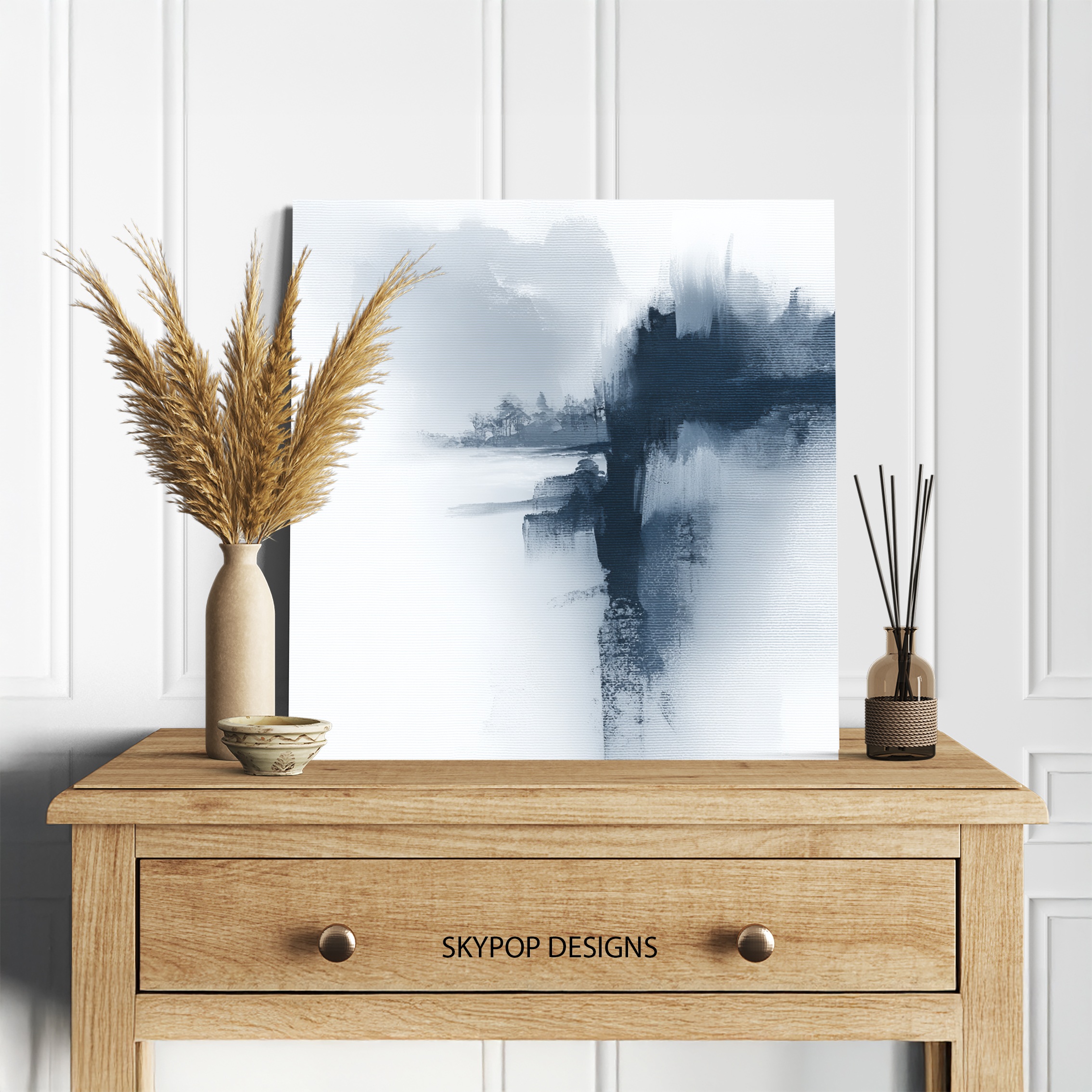 Transform your space with this captivating misty landscape canvas wall art. This striking abstract piece brings a sense of tranquility and mystery to any room, perfect for creating a calming atmosphere in your modern living room or bedroom. The blended shades of blue, white, and grey evoke a sense of serenity, making it an ideal addition to a minimalist or Scandinavian-inspired decor. This poster or canvas art beautifully captures the essence of a foggy coastal scene, with subtle hints of trees and water merging into the misty background. The contemporary brushstroke technique adds depth and texture, ensuring this piece remains visually interesting from every angle. Ideal for those seeking to bring a touch of nature indoors without overwhelming the space, this artwork complements a variety of color schemes and interior styles. Whether displayed as a standalone statement piece or as part of a gallery wall, this misty landscape art elevates your home’s ambiance. The versatile size options make it suitable for various spaces, from a cozy bedroom to a spacious office or bathroom. High-quality printing ensures every nuance of the ethereal scene is captured, from the delicate wisps of fog to the bold strokes of deep blue. This canvas wall art not only enhances your decor but also creates a soothing focal point that invites contemplation and relaxation. Bring the calming power of nature into your home with this stunning abstract landscape today.