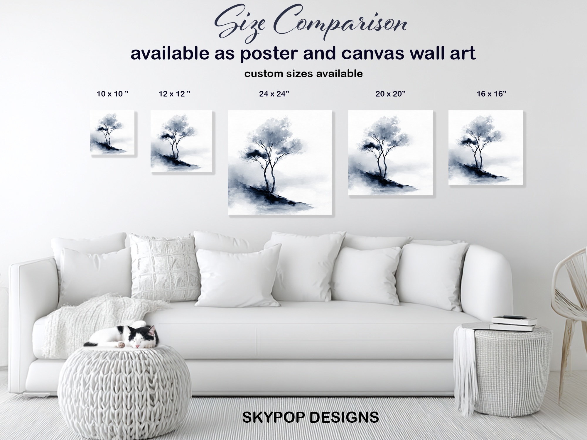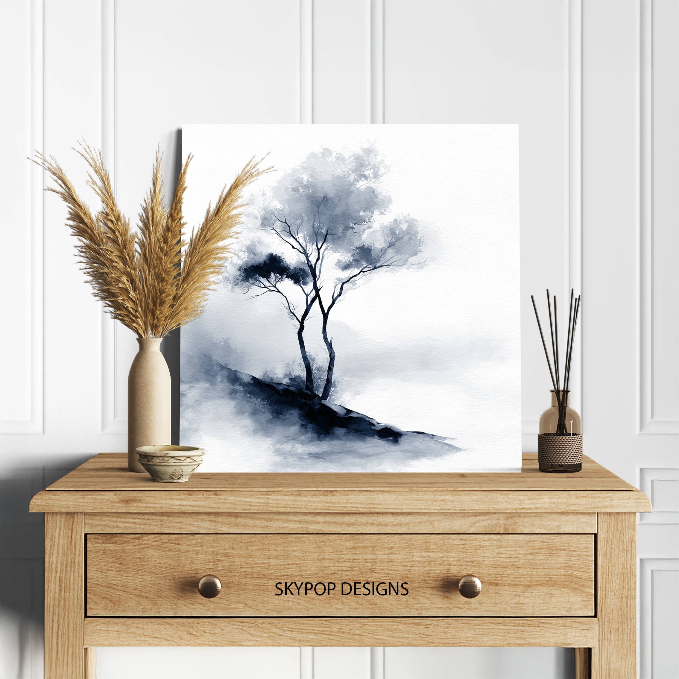 Transform your space with this captivating tree silhouette canvas wall art, perfect for those seeking a touch of serene nature in their home. This striking poster features a lone tree against a misty background, creating a powerful focal point that instantly draws the eye. The minimalist design and monochromatic palette make it an ideal choice for contemporary living rooms, peaceful bedrooms, or modern office spaces. The delicate brushstrokes and subtle shading techniques bring depth and texture to the piece, enhancing its visual appeal and creating a sense of calm and tranquility. This versatile canvas art complements a variety of decor styles, from Scandinavian simplicity to Asian Zen-inspired interiors. The misty atmosphere evokes a sense of mystery and contemplation, making it a perfect addition to meditation spaces or reading nooks. Whether displayed as a standalone piece or as part of a gallery wall, this tree silhouette poster adds a touch of sophistication and natural beauty to any room. The high-quality printing ensures every detail of the artwork is captured, from the intricate tree branches to the soft gradients of the foggy background. Elevate your home decor with this timeless piece that brings the quiet beauty of nature indoors. Transform your living space today with this elegant and calming tree silhouette wall art.