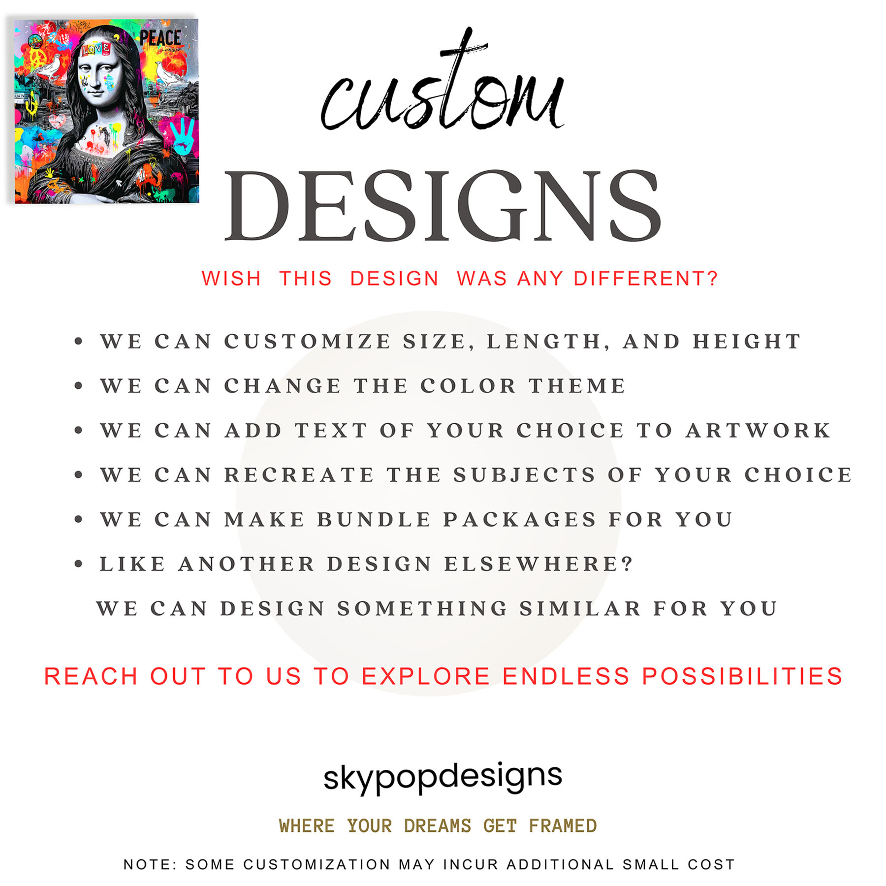 Welcome to SKYPOPDESIGNS, where we blend art, precision, and affordability. Our collection showcases stunning, high-quality images meticulously printed on canvas or posters, ensuring a flawless and consistent finish that captures the essence of various art styles.