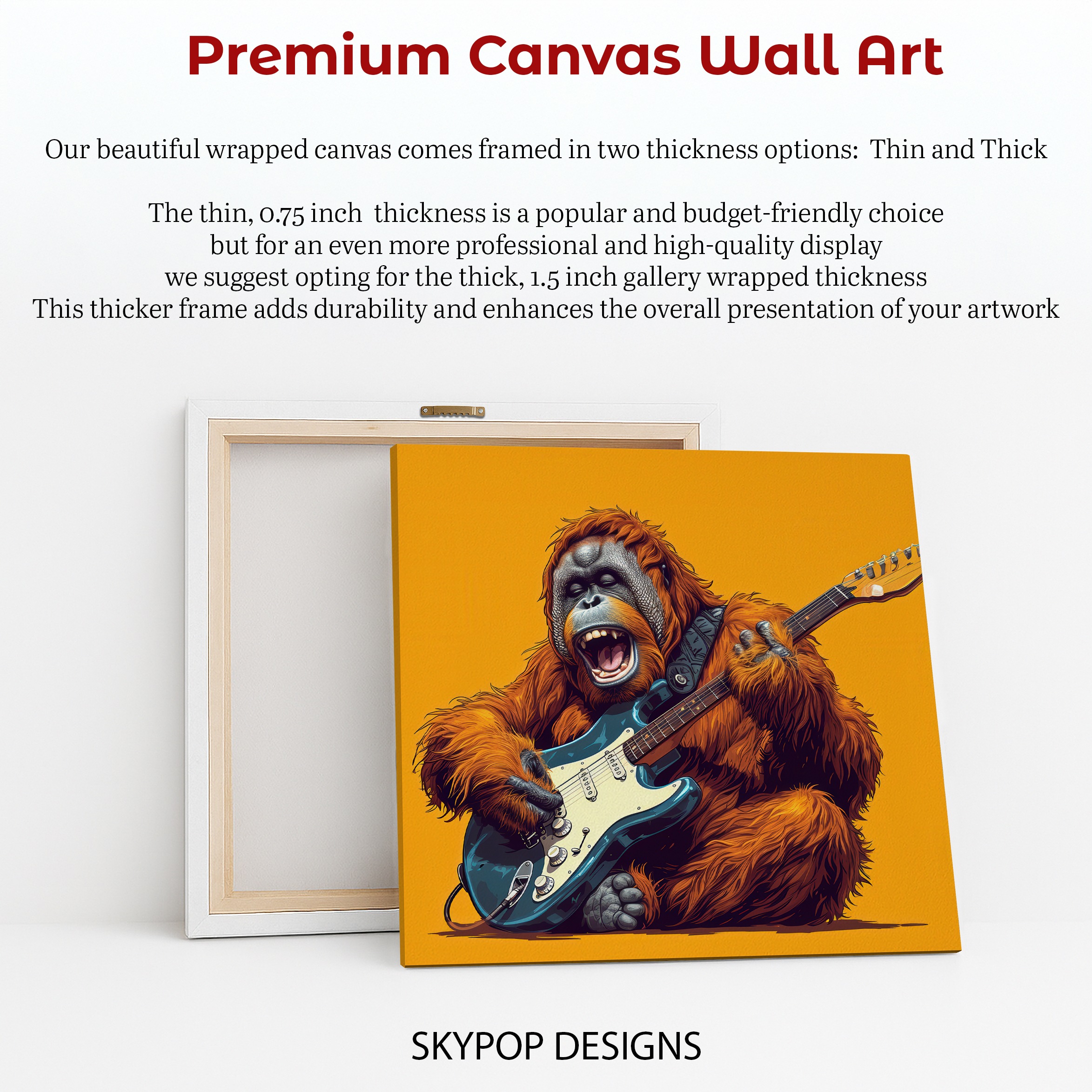 Keywords: Orangutan Art, Rocking Orangutan, Guitar Art, Canvas Wall Art, Animal Wall Art, Pop Art Print, Graffiti Art, Contemporary Art, Modern Decor, Bohemian Decor, Living Room Art, Game Room Decor, Office Wall Art, Music Room Decor, Yellow Art, Orange Art, Multicolor Art, Black Art, Music Lover Gift, Birthday Gift, Holiday Gift, Unique Wall Art, Statement Piece, Home Decor, Animal Lover, Vibrant Art, Energetic Vibe, Joyful Art, Creative Decor, Rockstar Art
