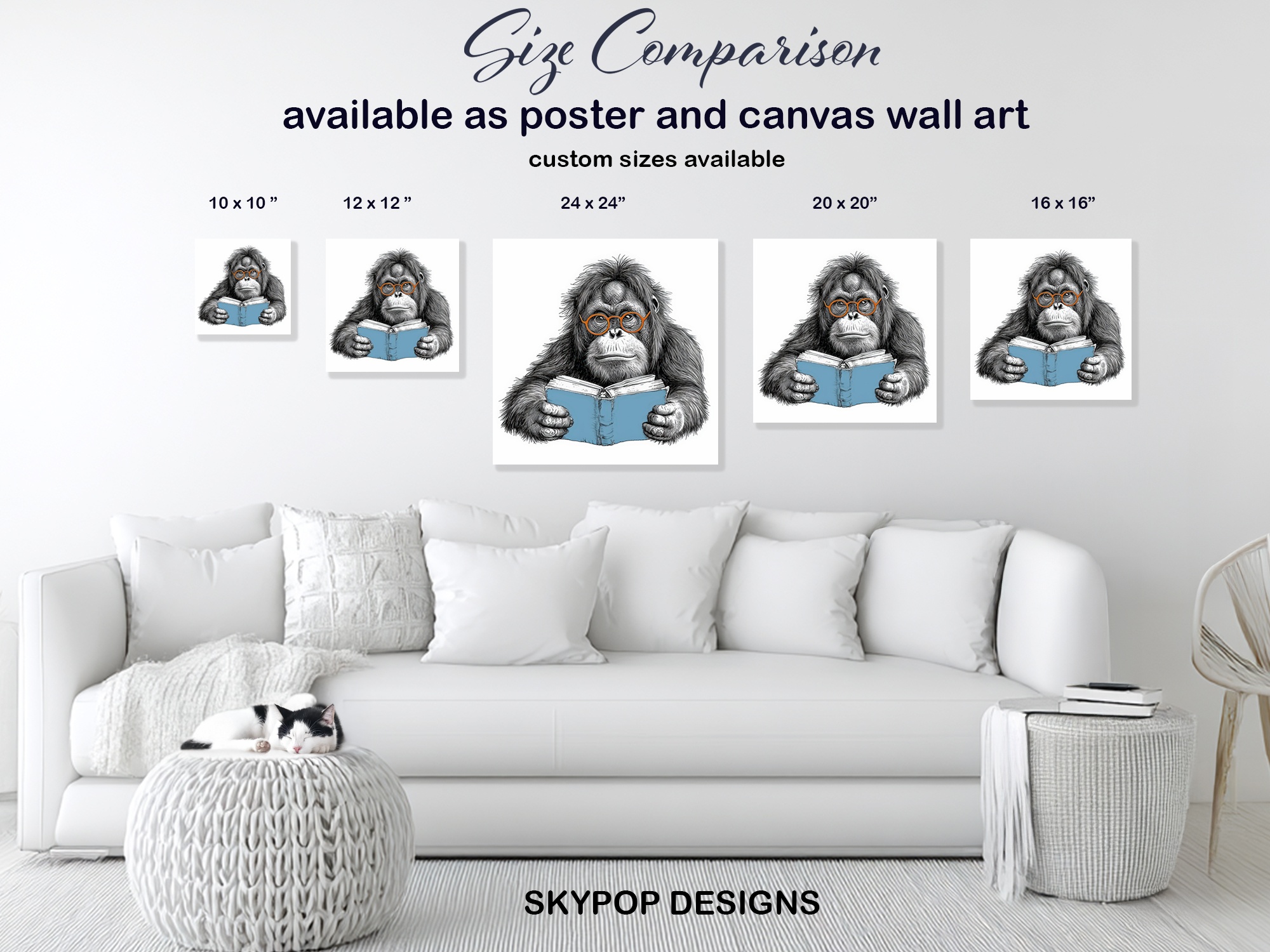 Keywords: Orangutan Wall Art, Animal Art, Contemporary Art, Whimsical Art, Modern Decor, Bohemian Decor, Minimalist Decor, Living Room Art, Office Decor, Bedroom Art, Library Art, Art Poster, Canvas Wall Art, Orangutan Reading, Book Lover Gift, Animal Enthusiast Gift, Home Decor, Wall Decor, Unique Art, Brown Art, Grey Art, Blue Art, Orange Art, Intelligent Art, Charming Decor, Thoughtful Art, Wall Print, Statement Piece, Fine Art Print, Interior Design