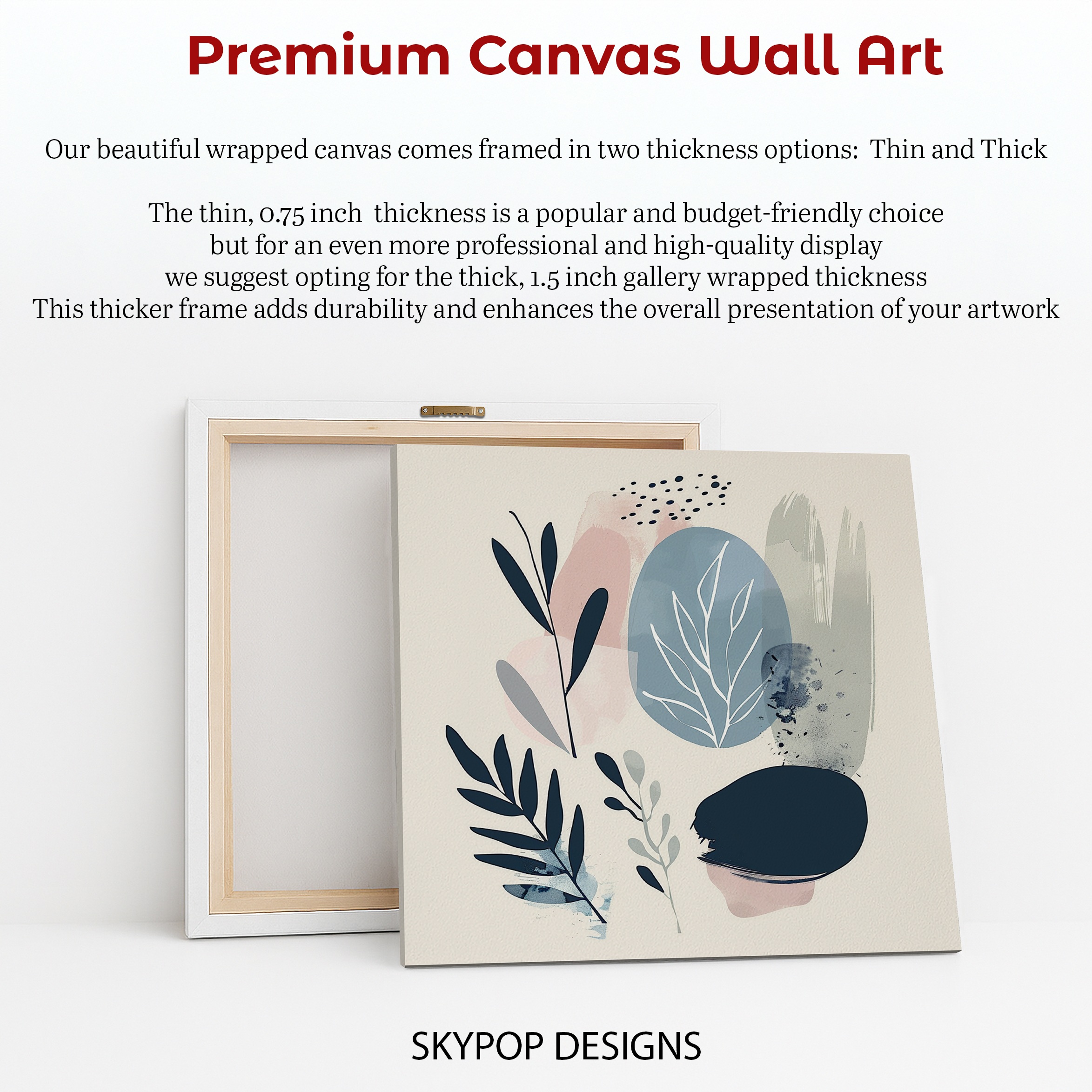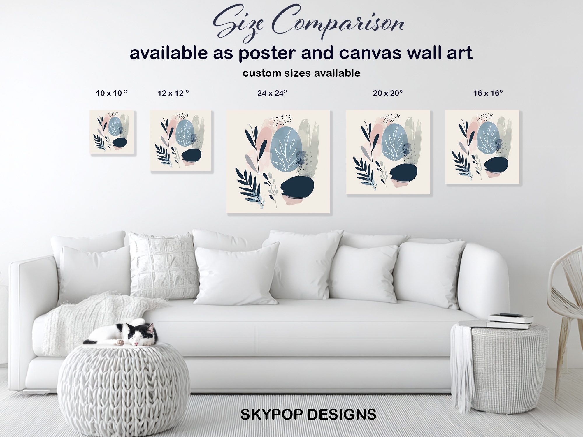 Transform your living space with this captivating abstract canvas wall art featuring a harmonious blend of organic shapes and soothing colors. This contemporary poster or canvas print brings a touch of modern elegance to any room, perfect for those seeking to elevate their home decor with a minimalist yet expressive piece. The soft pink and calming blue hues create a serene atmosphere, ideal for bedrooms or living rooms where relaxation is key. Bold navy accents add depth and contrast, making this artwork a striking focal point in Scandinavian-inspired interiors. The abstract nature-inspired elements evoke a sense of growth and tranquility, perfect for enhancing office spaces or bathrooms with a touch of artistic flair. This versatile wall art adapts beautifully to various room sizes, making it an excellent choice for apartments, houses, or even corporate environments. The high-quality printing captures every subtle brushstroke and watercolor-like texture, ensuring a premium look that stands the test of time. Whether you’re redecorating your home or searching for a thoughtful housewarming gift, this modern abstract canvas offers a fresh and stylish solution. Embrace the calming energy of this contemporary nature-inspired artwork and transform your walls today with this eye-catching piece that seamlessly blends art and interior design.