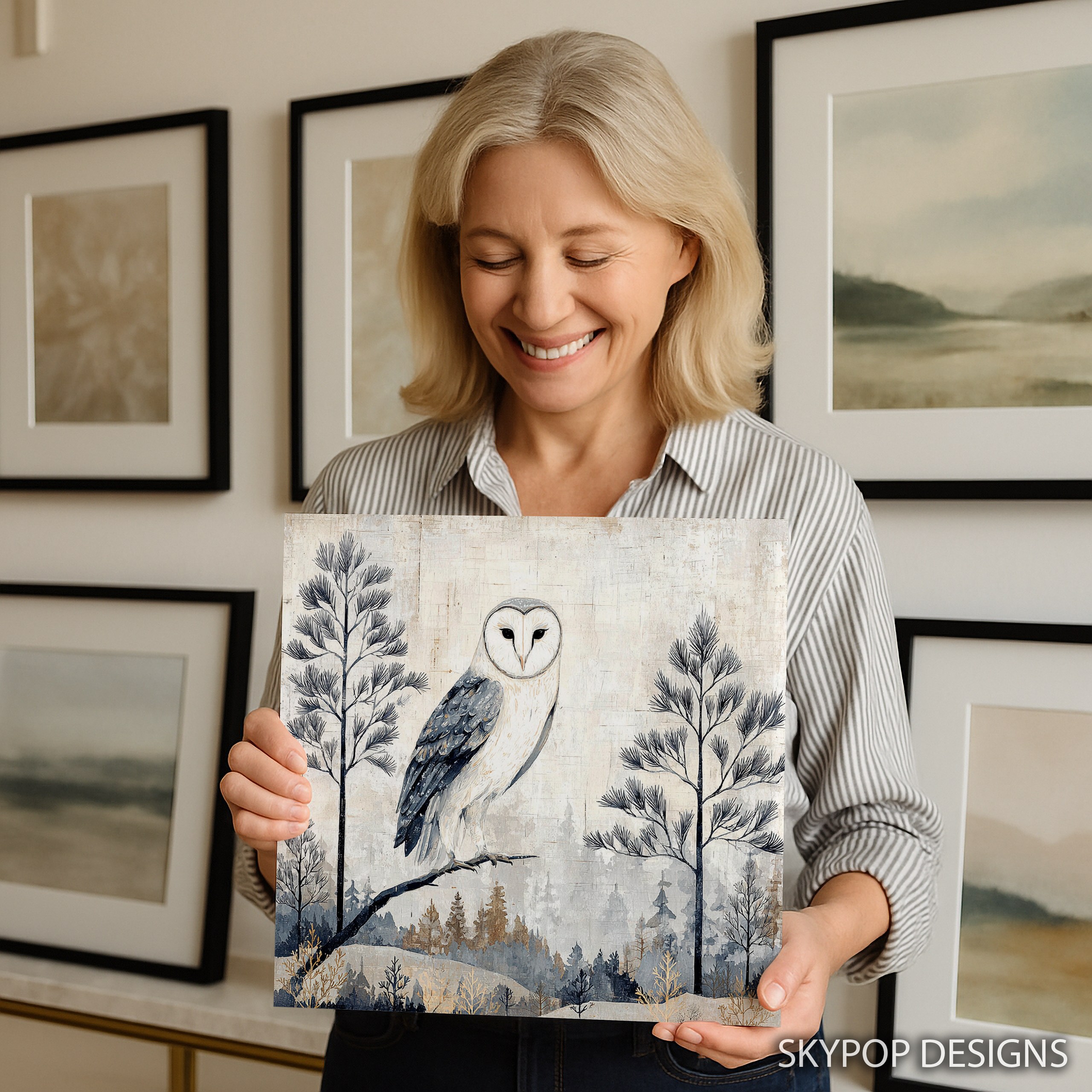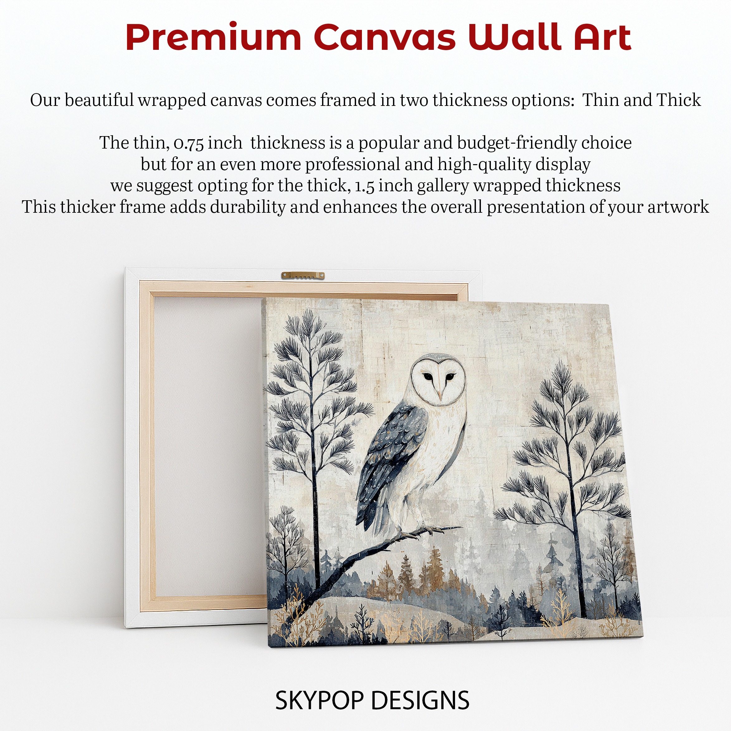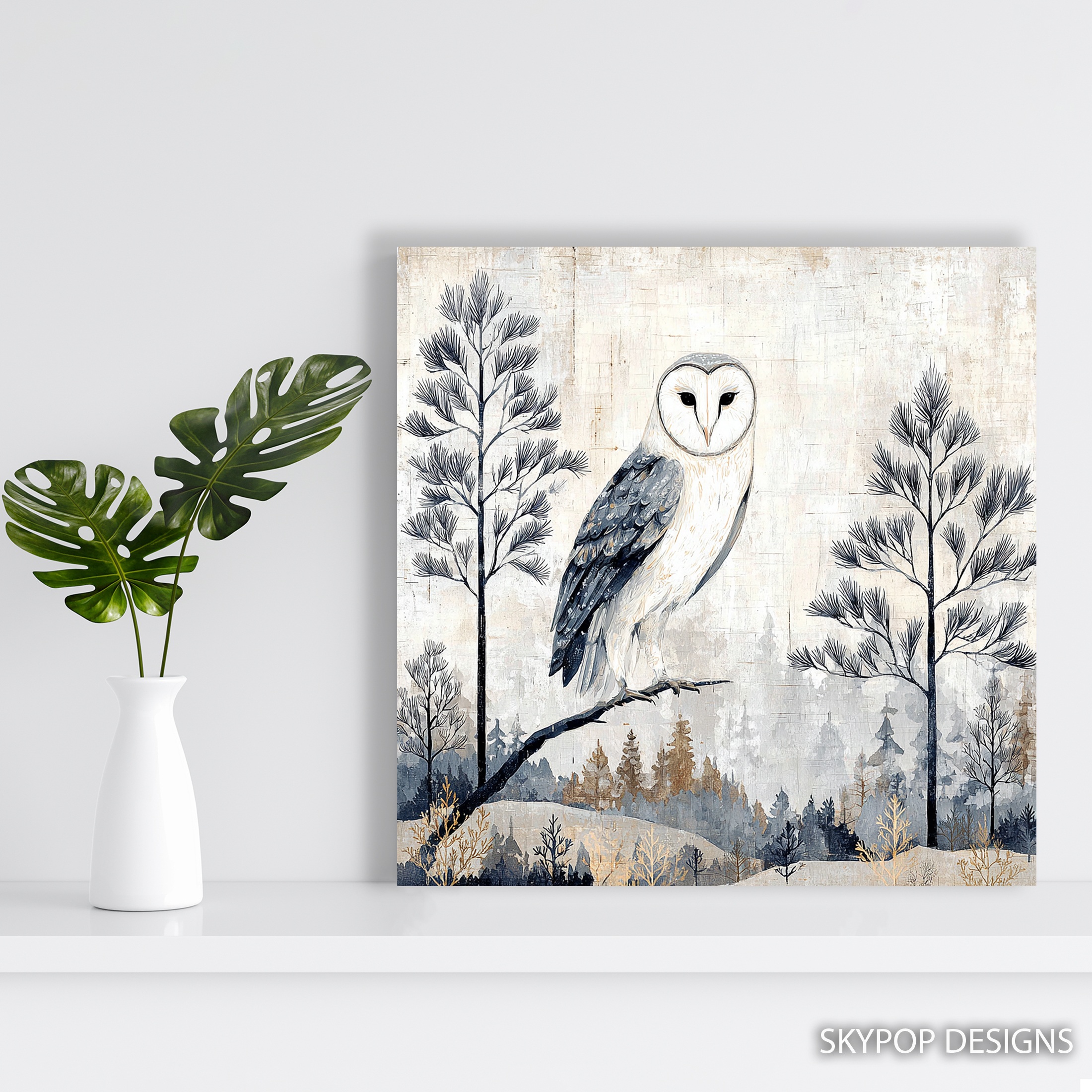Bring the serene beauty of a winter forest into your home with this stunning owl canvas wall art. This captivating piece showcases a majestic barn owl perched on a branch, surrounded by delicate pine trees and a misty winter landscape. Perfect for nature lovers and bird enthusiasts, this poster or canvas print adds a touch of woodland charm to any room. The muted color palette of whites, grays, and soft browns creates a calming atmosphere, ideal for bedrooms, living rooms, or home offices seeking a tranquil vibe. This owl wall art seamlessly blends with rustic, Scandinavian, or minimalist decor styles, making it a versatile addition to your home. The intricate details of the owl’s feathers and the subtle texture of the background bring depth and interest to your walls. Celebrate the quiet strength of nature with this eye-catching piece that serves as a focal point in nurseries or reading nooks. The high-quality printing ensures every brushstroke and subtle shade is captured, offering a lifelike presence that transforms your space. Whether you’re looking for a thoughtful housewarming gift or want to refresh your own decor, this owl canvas art is sure to impress. Available in various sizes, it’s easy to find the perfect fit for any wall. Elevate your home’s ambiance with this enchanting winter owl artwork that brings the outdoors in and creates a cozy, nature-inspired retreat.