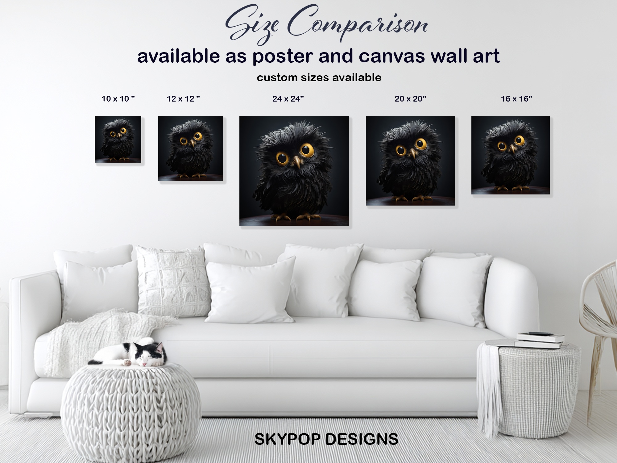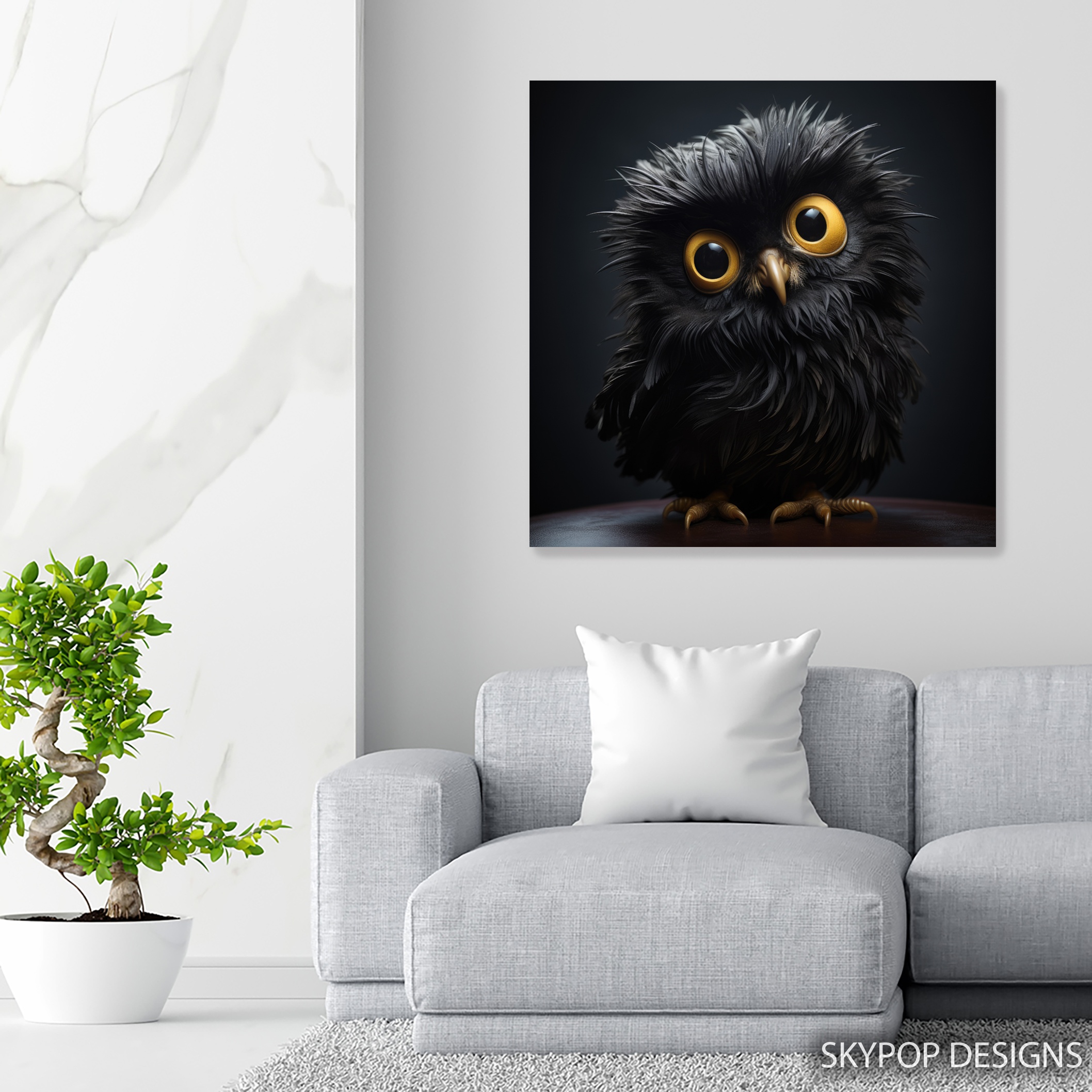 Transform your space with this captivating owl canvas wall art, featuring an enchanting owl with striking golden eyes. The modern rendering and abstract touches of this poster create a unique focal point that adds personality to any room. This charming owl print is perfect for contemporary living rooms, cozy bedrooms, or a creative office space, bringing a touch of whimsy and wisdom to your decor. The rich black and vibrant gold color palette evokes a sense of mystery and elegance, creating a sophisticated yet playful atmosphere. Ideal for modern or minimalist decor, this versatile wall art adds character without overwhelming your existing design. The detailed texture of the feathers and the glossy impact of the eyes make this canvas wall art a statement piece. This striking artwork is ideal for nature lovers and anyone seeking to enhance their home with unique animal art. It’s a perfect gift for birthdays, housewarmings, or any occasion for art enthusiasts. Elevate your wall decor collection with this delightful owl canvas art. Showcase your love for nature and striking design with this eye-catching poster. Brighten your home and inspire wonder with this beautiful owl artwork.