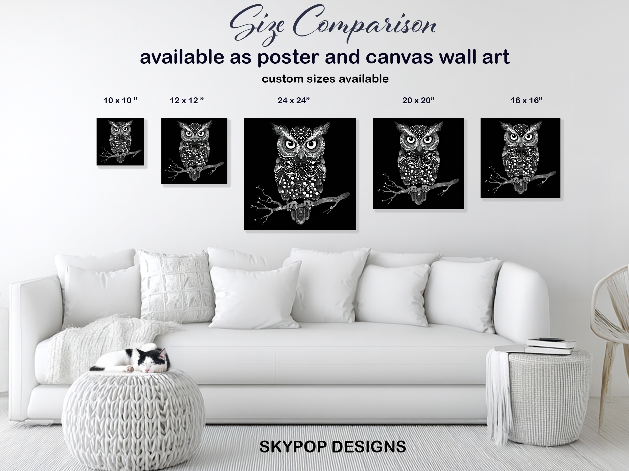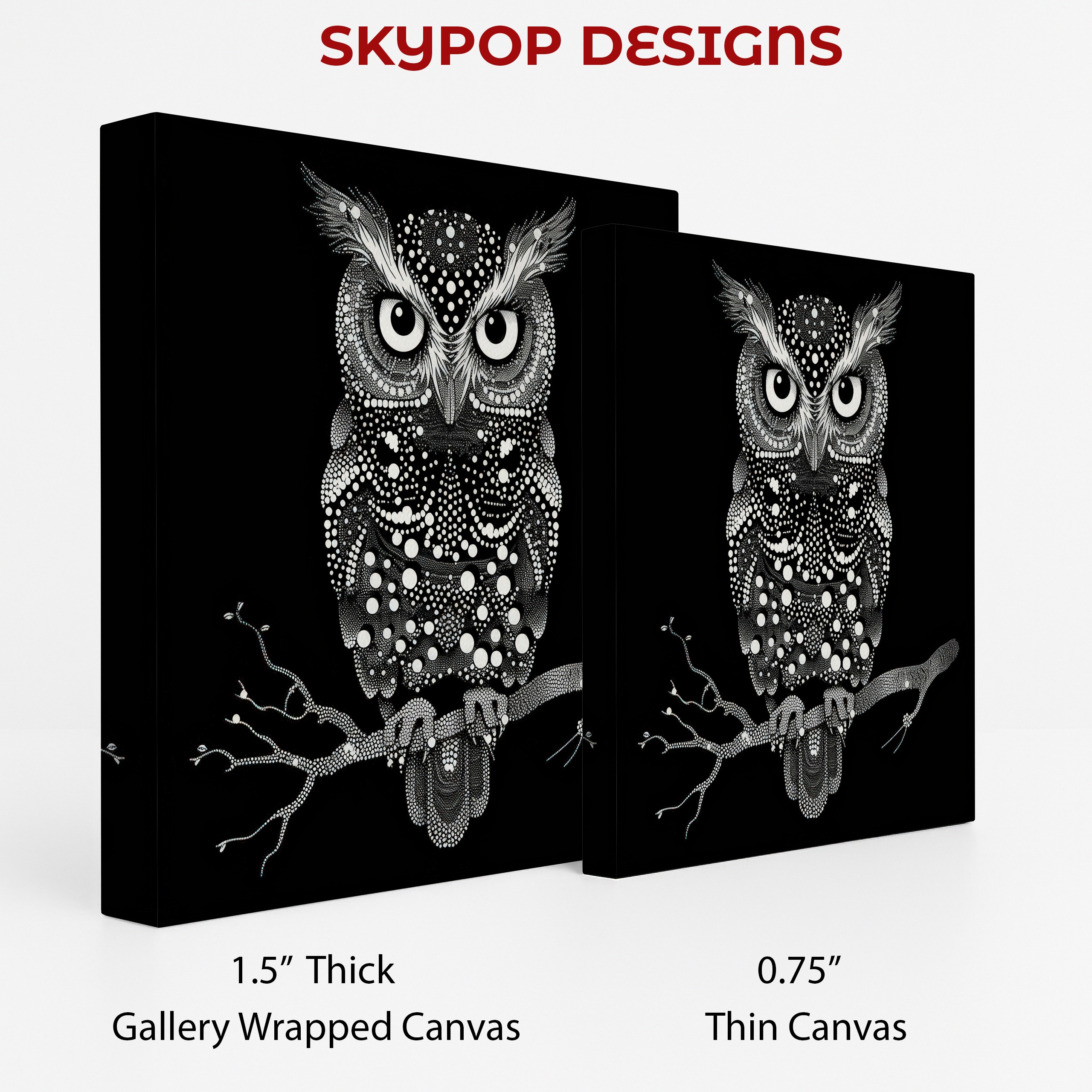 Keywords: Owl wall art, Black and white art, Canvas wall art, Nature art, Animal art, Contemporary art, Minimalist decor, Modern decor, Living room art, Bedroom art, Office decor, Entryway decor, Owl print, Dot art, Wildlife art, Home decor, Wall decor, Wall poster, Art for home, Black and white owl, Monochromatic art, Wisdom art, Mystery art, Natural elegance, Gift for nature lover, Housewarming gift, Birthday gift, Unique art, Artistic flair, Modern farmhouse