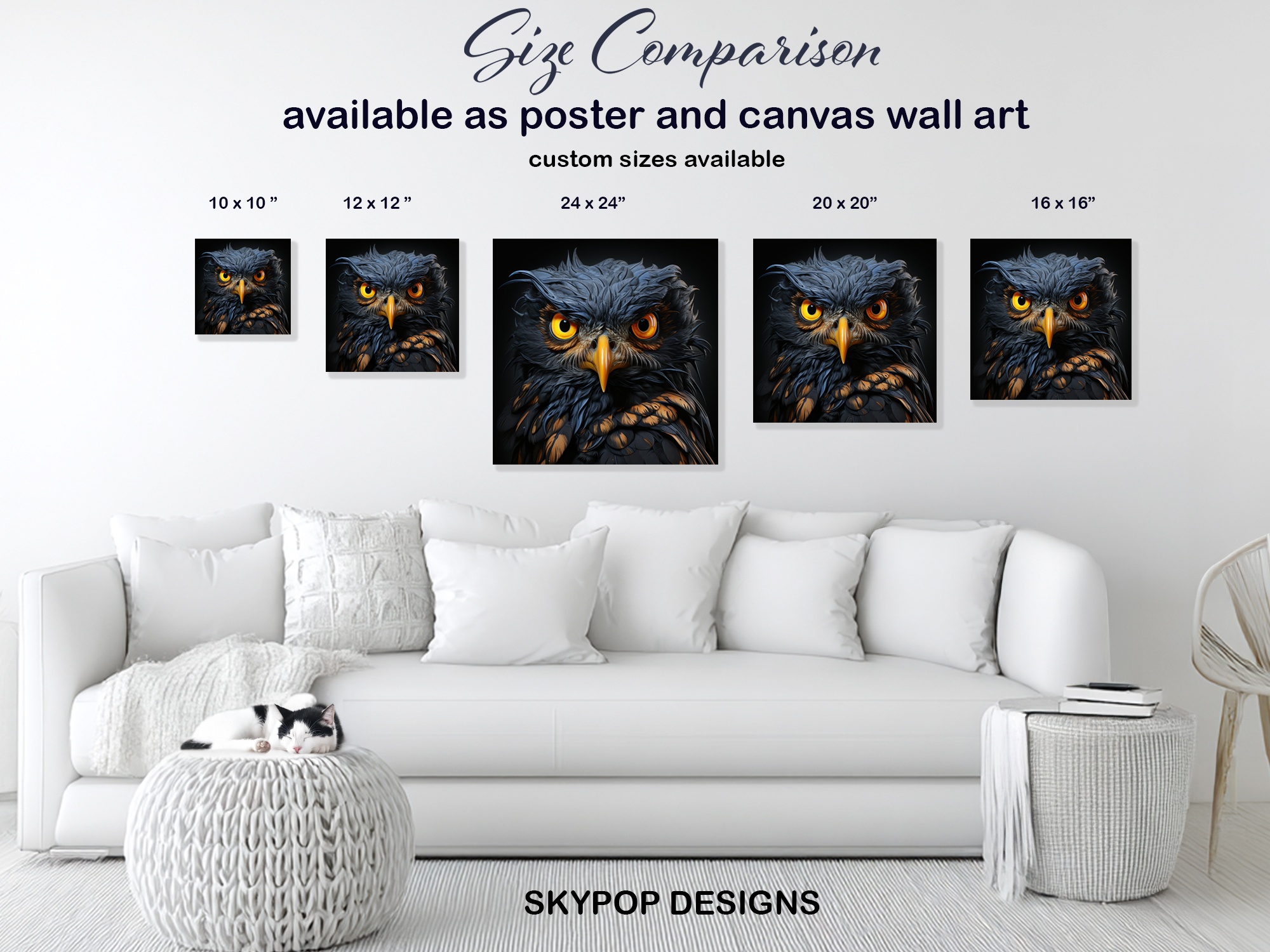 Keywords: owl wall art, animal art, nature art, contemporary art, modern decor, minimalist decor, living room wall art, bedroom wall art, office wall art, black art, gold art, brown art, grey art, owl poster, canvas wall art, wildlife art, majestic owl, fine art, home decor, statement art, interior design, wall decor, gift ideas, housewarming gift, birthday gift, holiday gift, nature lovers gift, elegant art, sophisticated decor, animal portrait