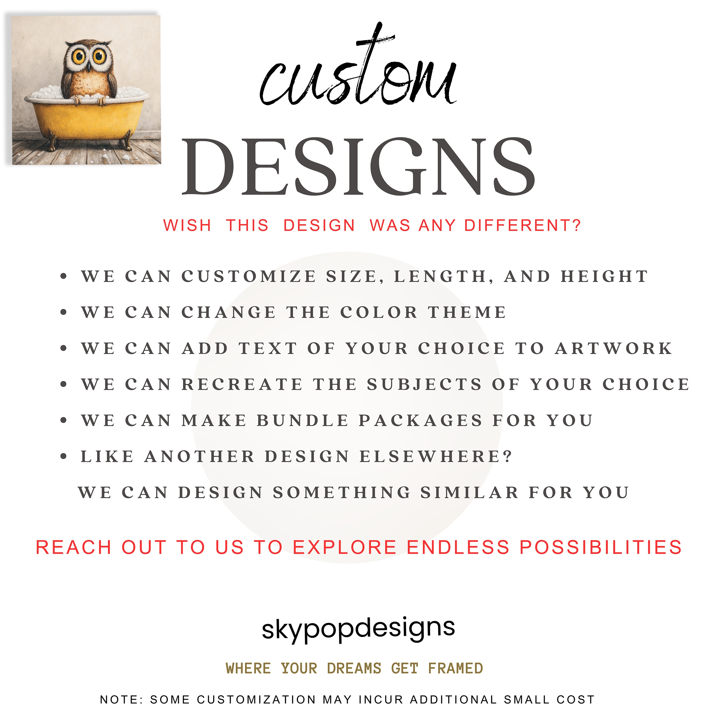 Looking for a custom design, or do you love a particular design but need it in a different size or orientation? Perhaps you’ve found a design elsewhere and wish for us to create something similar for you? Drop us a message! We’re dedicated to meeting your needs and will work closely with you to ensure your vision comes to life.