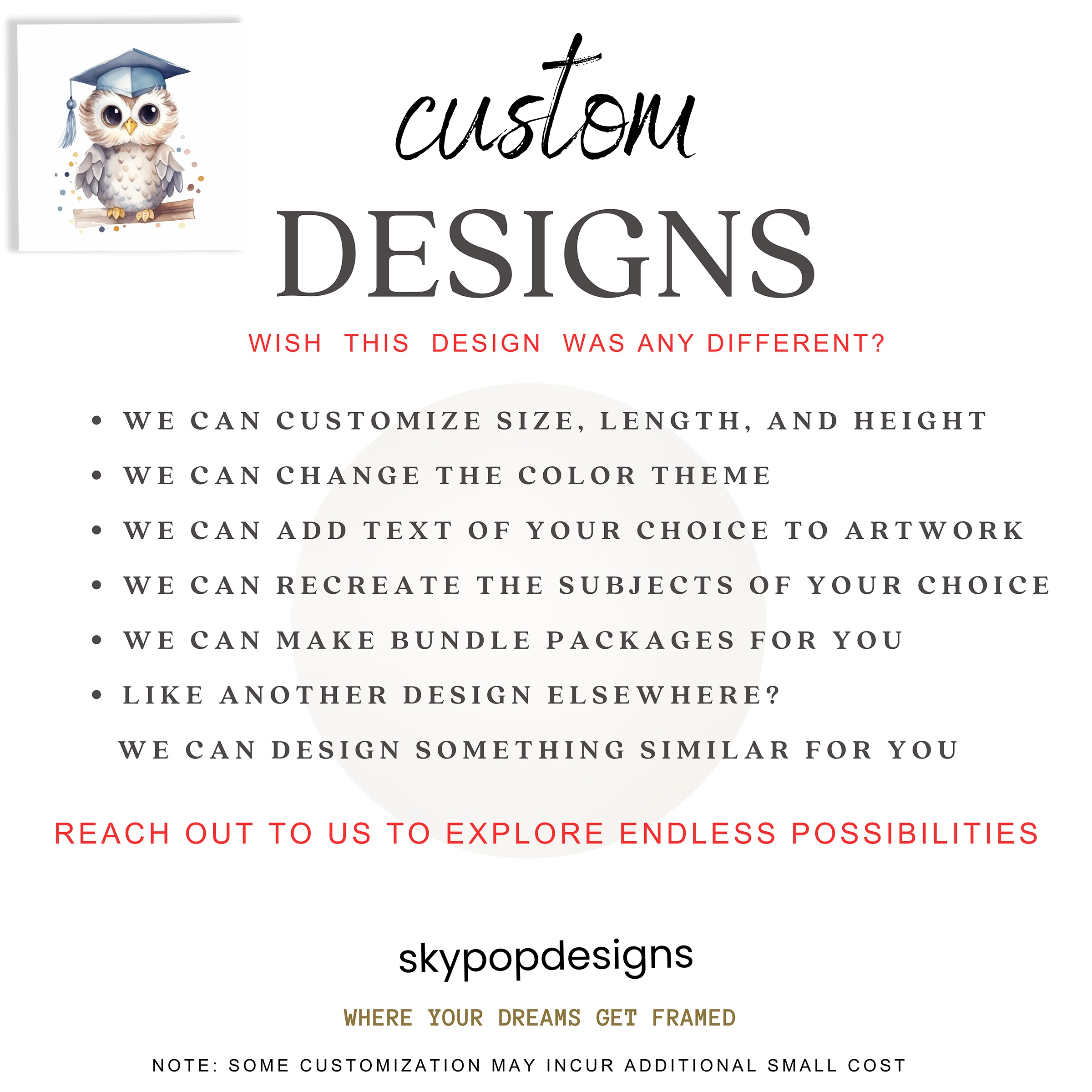 Looking for a custom design, or do you love a particular design but need it in a different size or orientation? Perhaps you’ve found a design elsewhere and wish for us to create something similar for you? Drop us a message! We’re dedicated to meeting your needs and will work closely with you to ensure your vision comes to life.