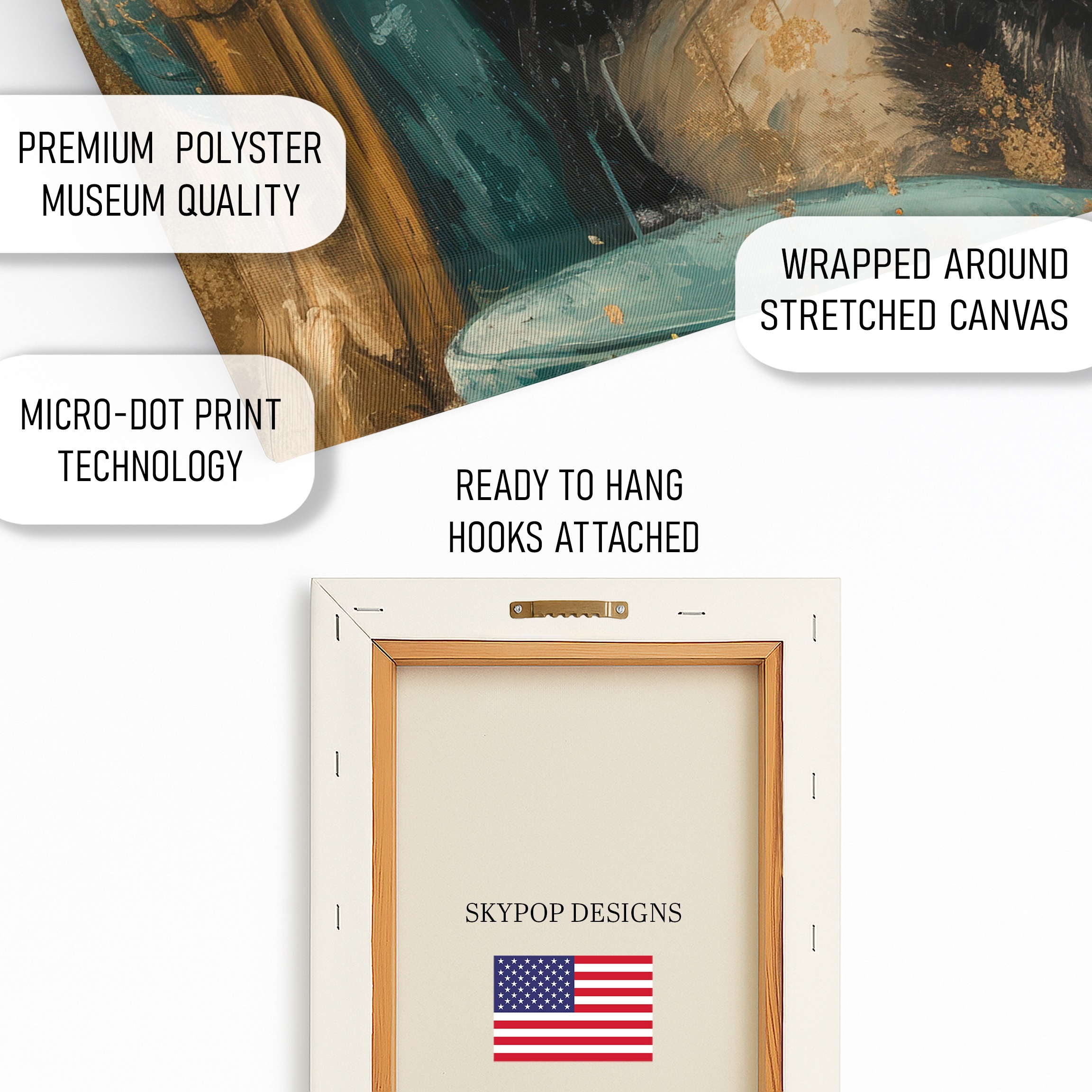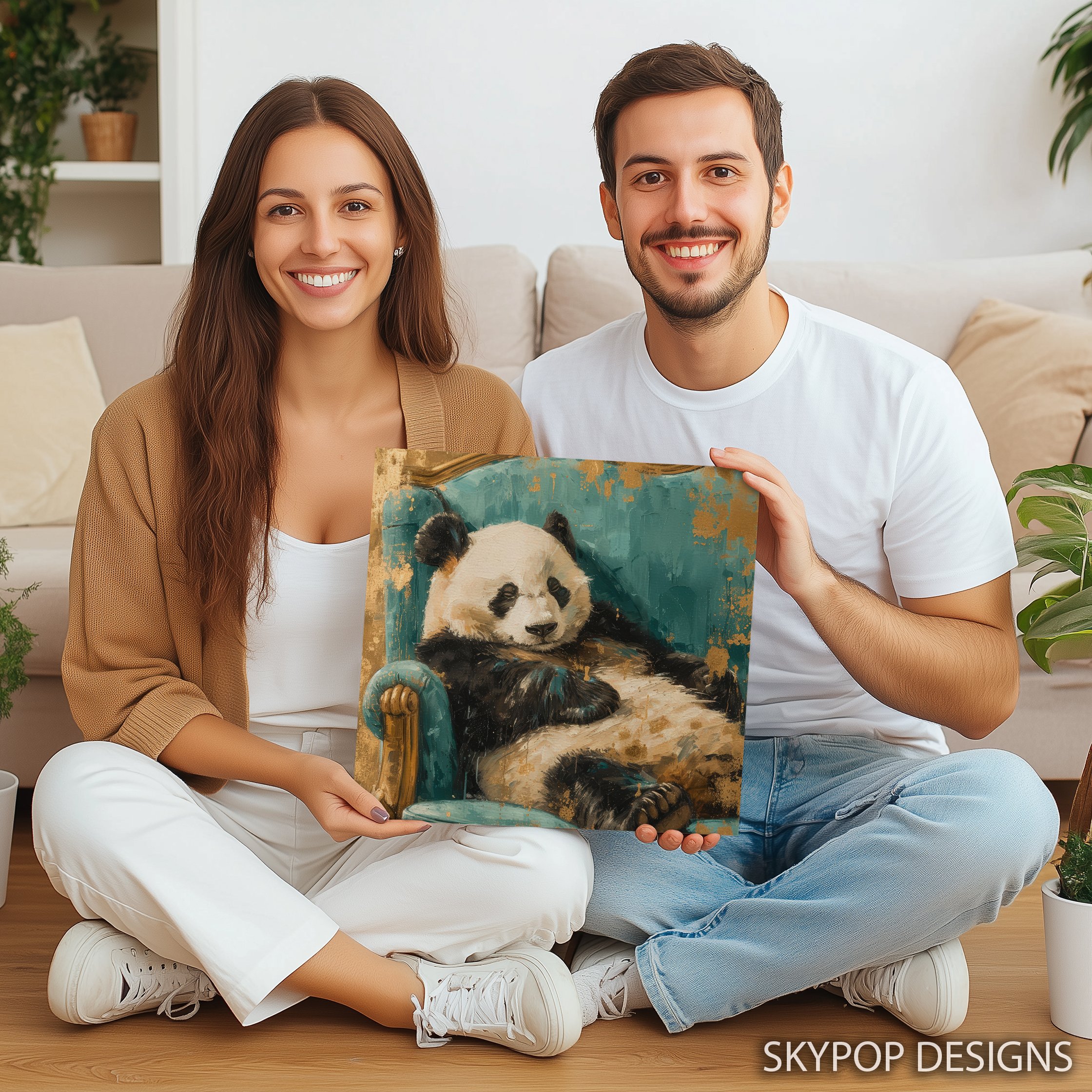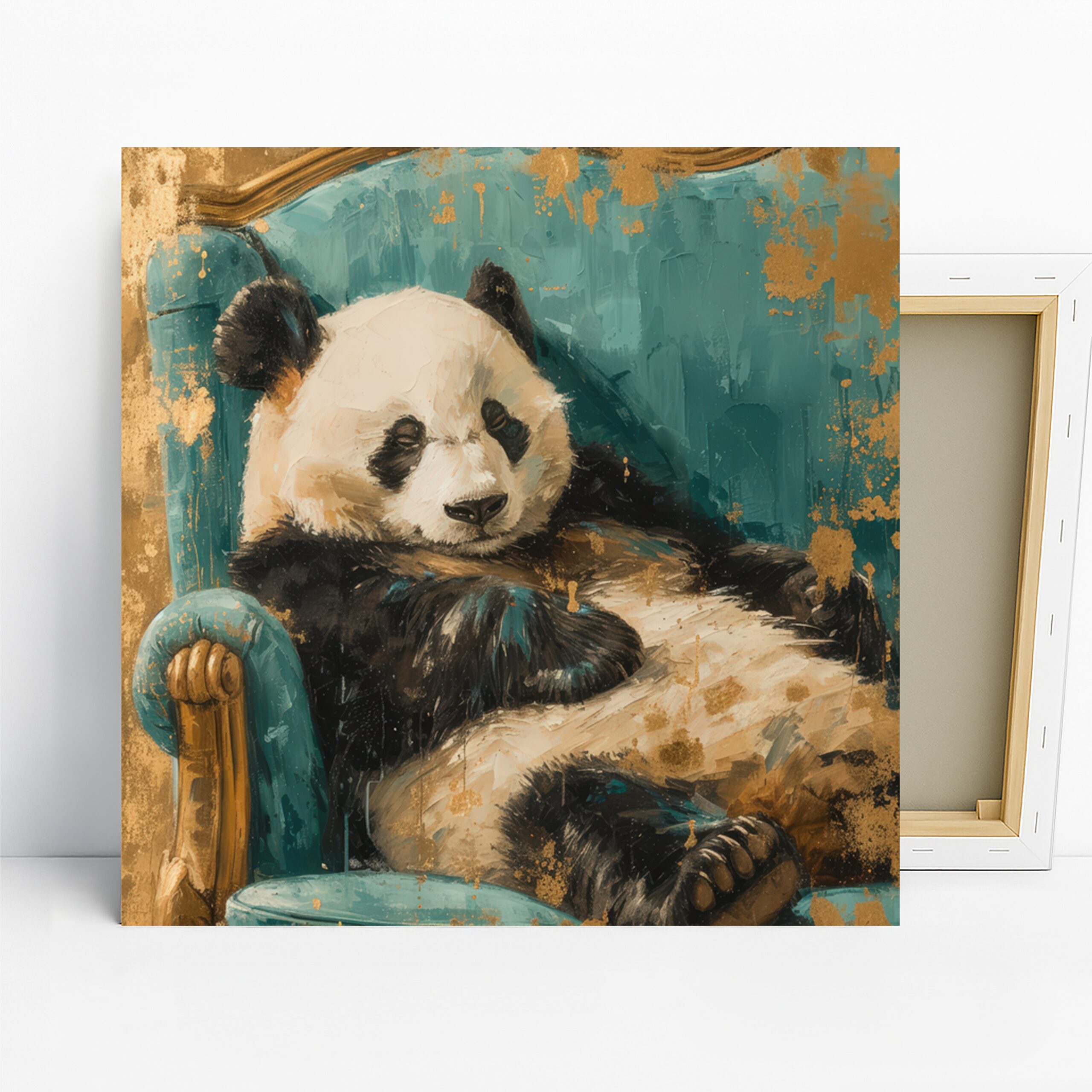 Keywords: Panda Art, Canvas Print, Wall Art, Contemporary Decor, Modern Home, Glam Decor, Teal Decor, Gold Accents, Animal Art, Living Room Art, Bedroom Decor, Office Wall Art, Entryway Decor, Nature Art, Statement Piece, Luxurious Art, Chic Style, Expressive Panda, Plush Armchair, Textured Art, Bold Colors, Housewarming Gift, Birthday Gift, Unique Wall Art, High-Quality Canvas, Elegant Home Decor, Sophisticated Style, Panda Poster, Wall Decor, Interior Design