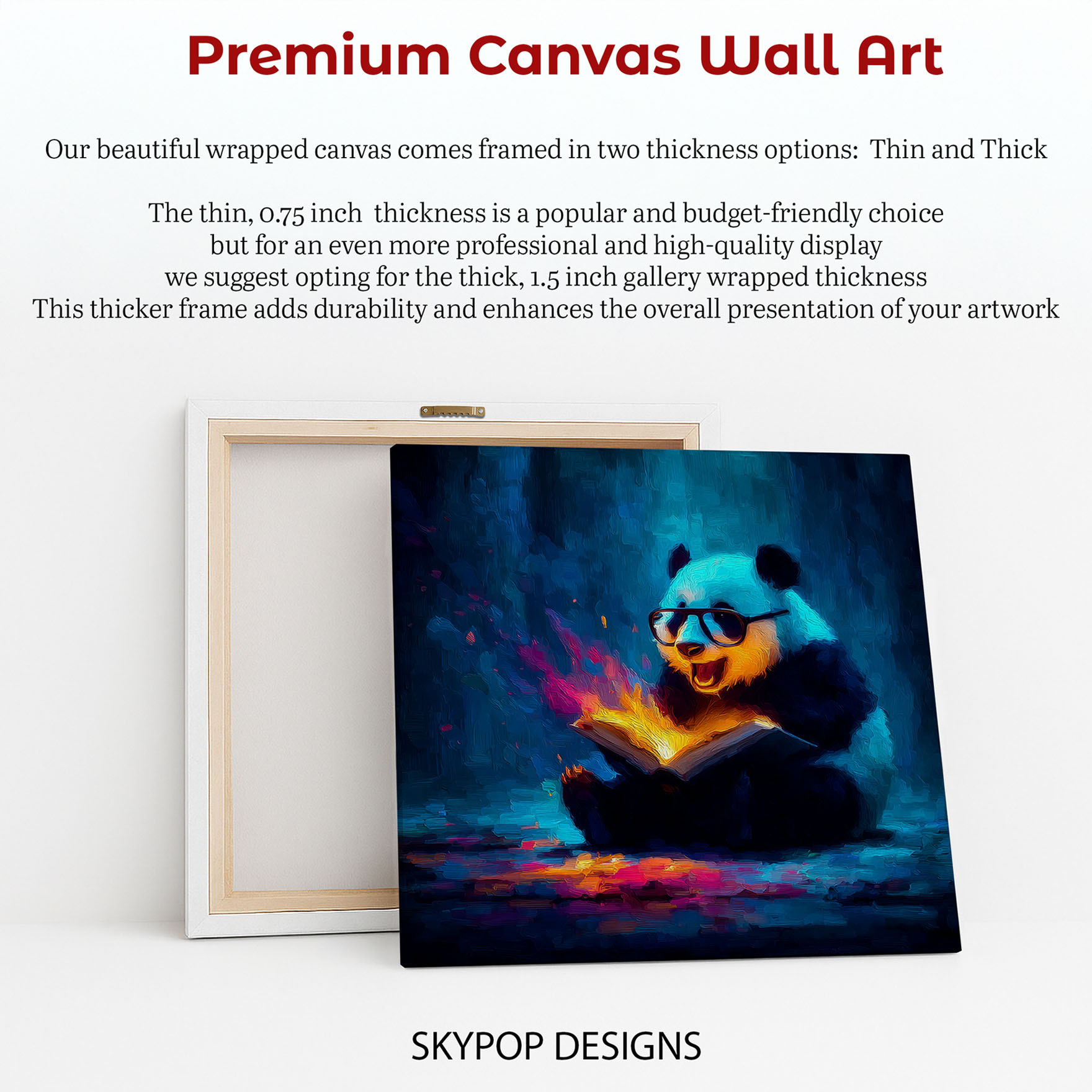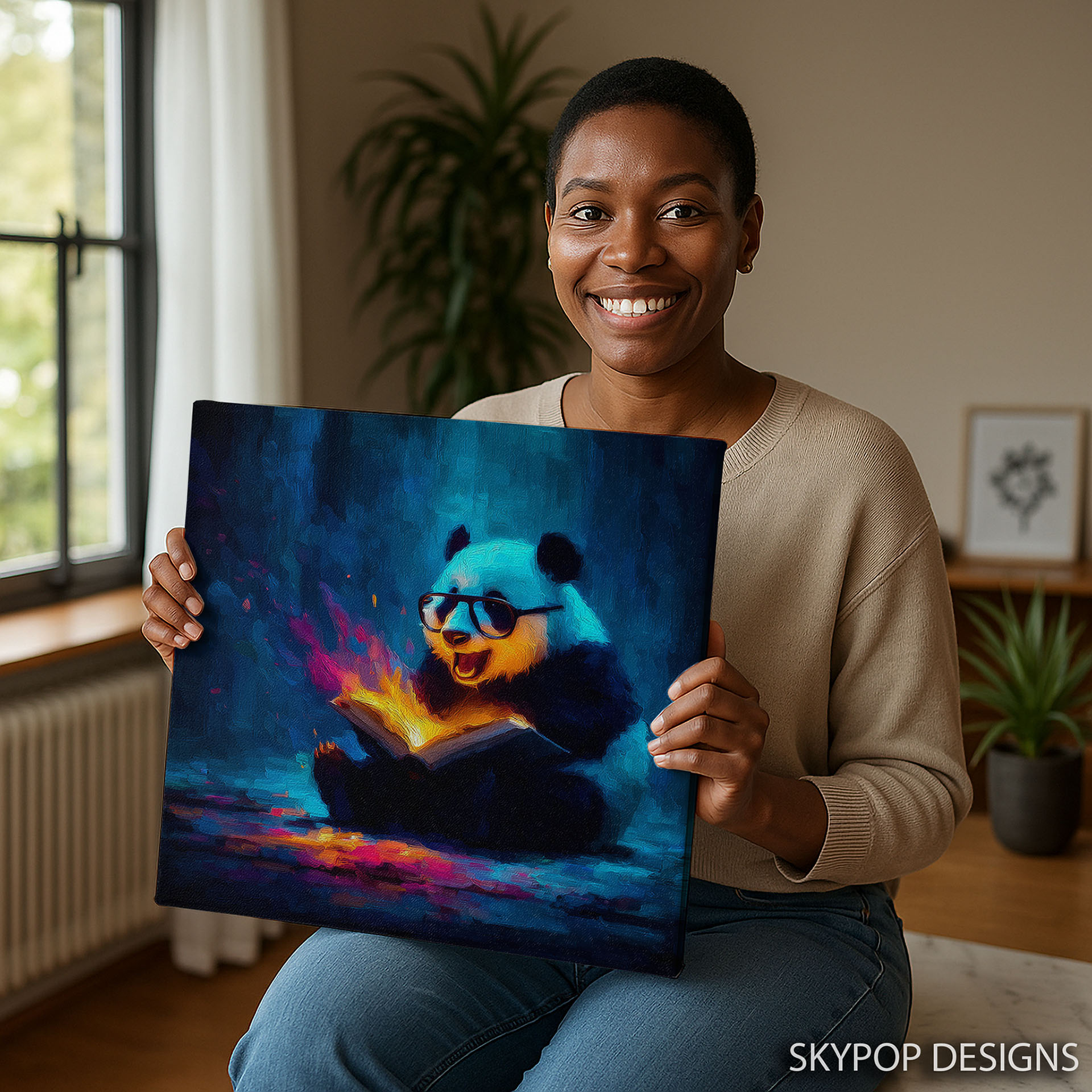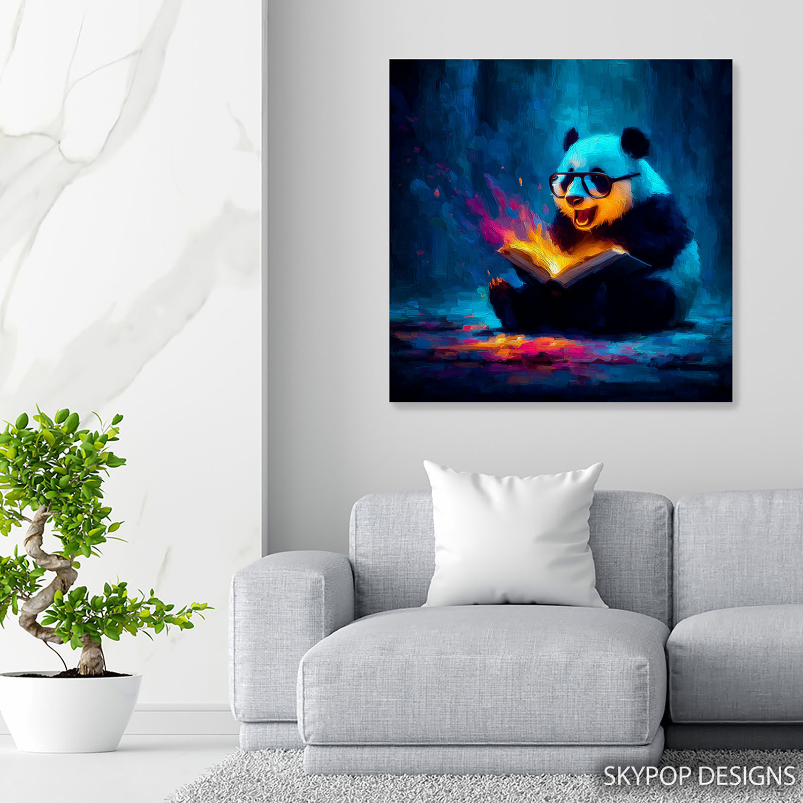 Ignite your imagination with this captivating panda reading a book canvas wall art, a truly unique poster that brings a touch of magic to any space. This vibrant and whimsical artwork transforms ordinary rooms into extraordinary realms, perfect for modern living room wall decor or an inspiring office. The striking contrast between the cool blues and the warm, glowing pages creates a mesmerizing effect, symbolizing the power of knowledge and discovery. Ideal for bohemian spaces or children’s rooms, this canvas wall art celebrates the joy of learning with a playful panda character. The rich multicolor palette, featuring warm yellows and oranges, radiates creativity and energy, enhancing the room’s ambiance. This panda poster is not just art; it’s a conversation starter and a mood enhancer, bringing light and wonder into your home. High-quality printing captures the expressive texture and dynamic glow of the magical book, ensuring this piece is a stunning addition to your wall art collection. Whether displayed in a cozy library, a creative craft room, or a welcoming entryway, this canvas artwork adds personality and charm. Looking for a unique gift? This panda reading art is ideal for book lovers, students, or anyone who appreciates imaginative decor for birthdays or housewarming occasions. Embrace the magic of stories and learning with this breathtaking panda canvas wall art. Elevate your space today with this extraordinary piece of animal art that sparks curiosity and joy. Add this enchanting panda artwork to your collection and inspire wonder every day.
