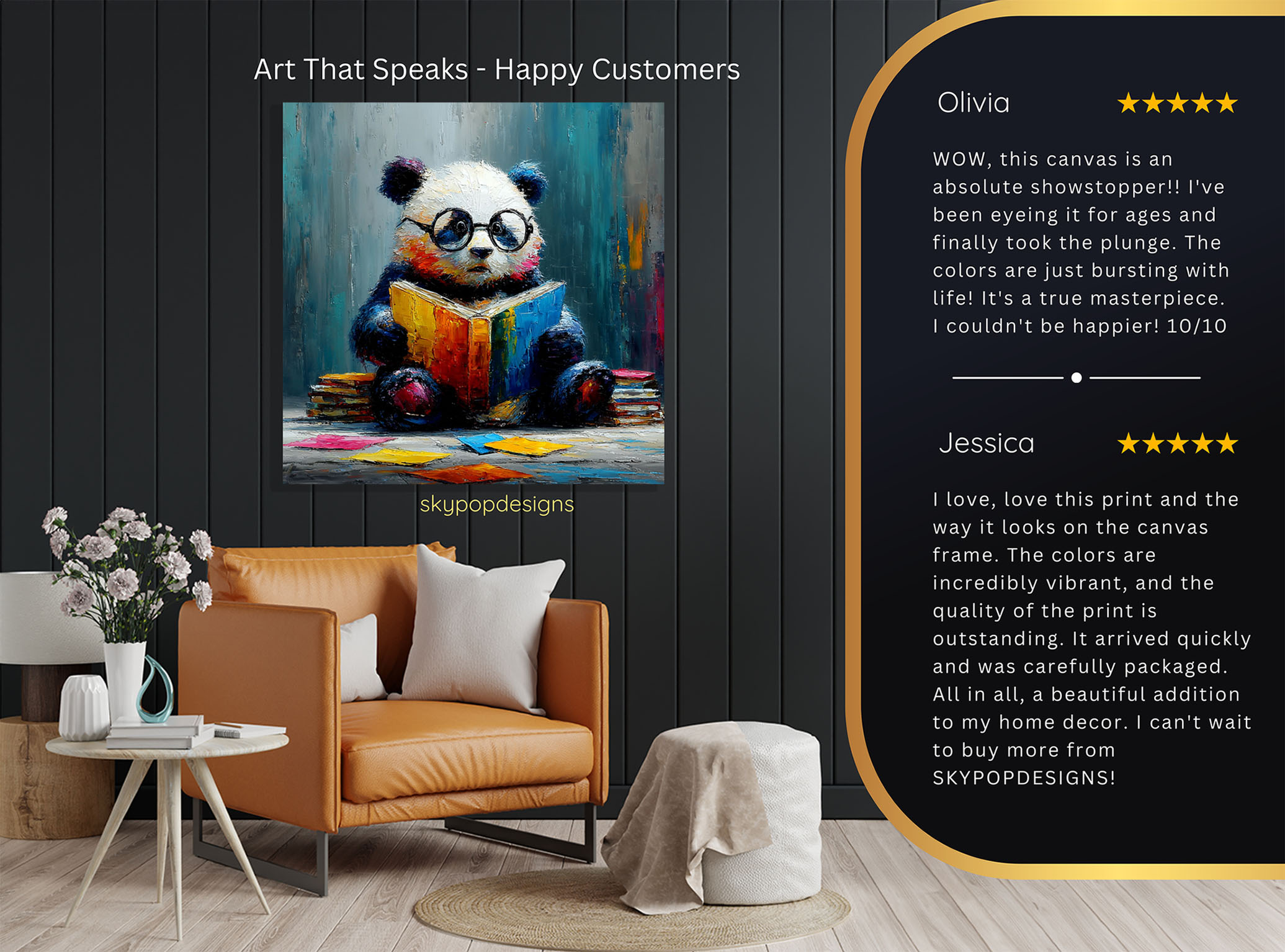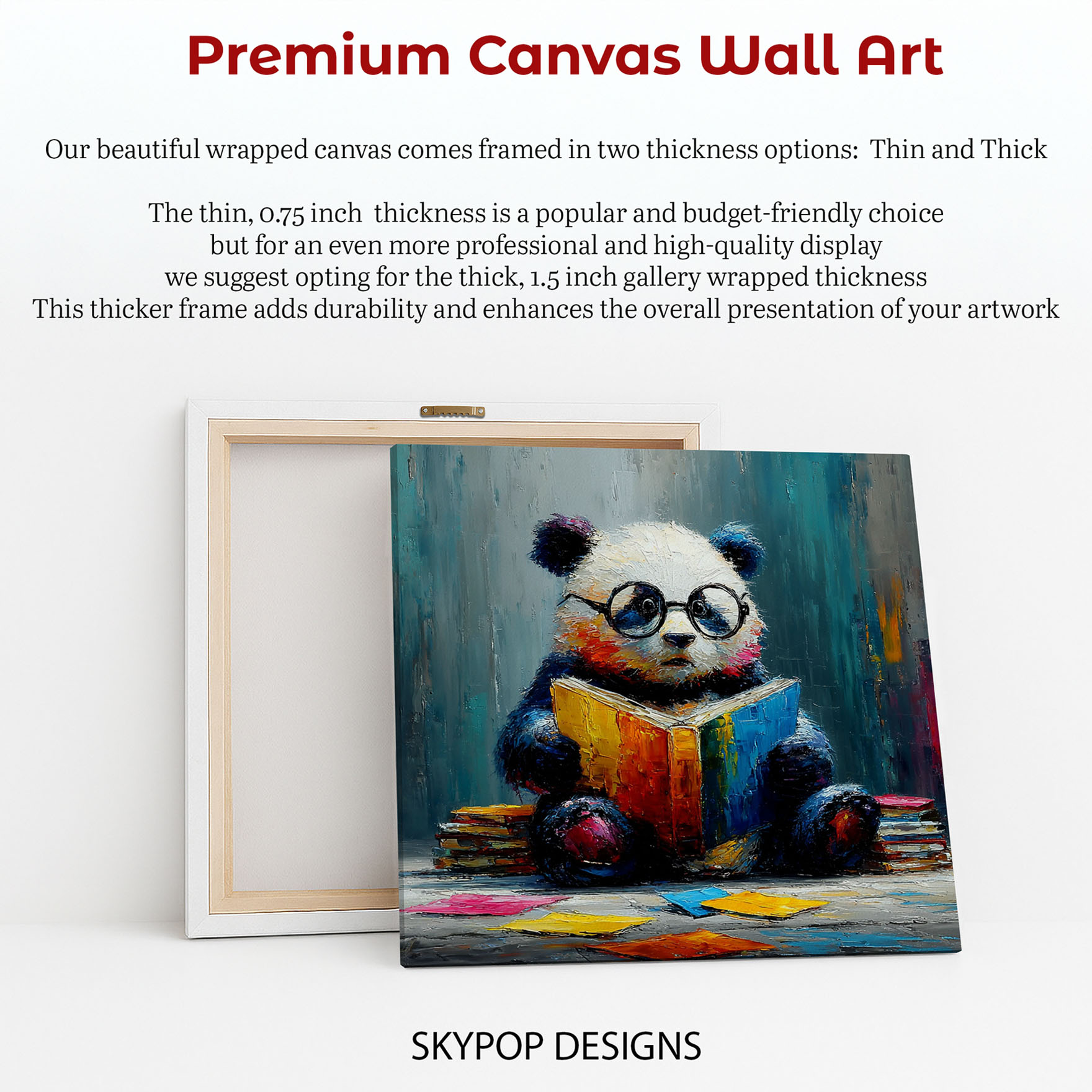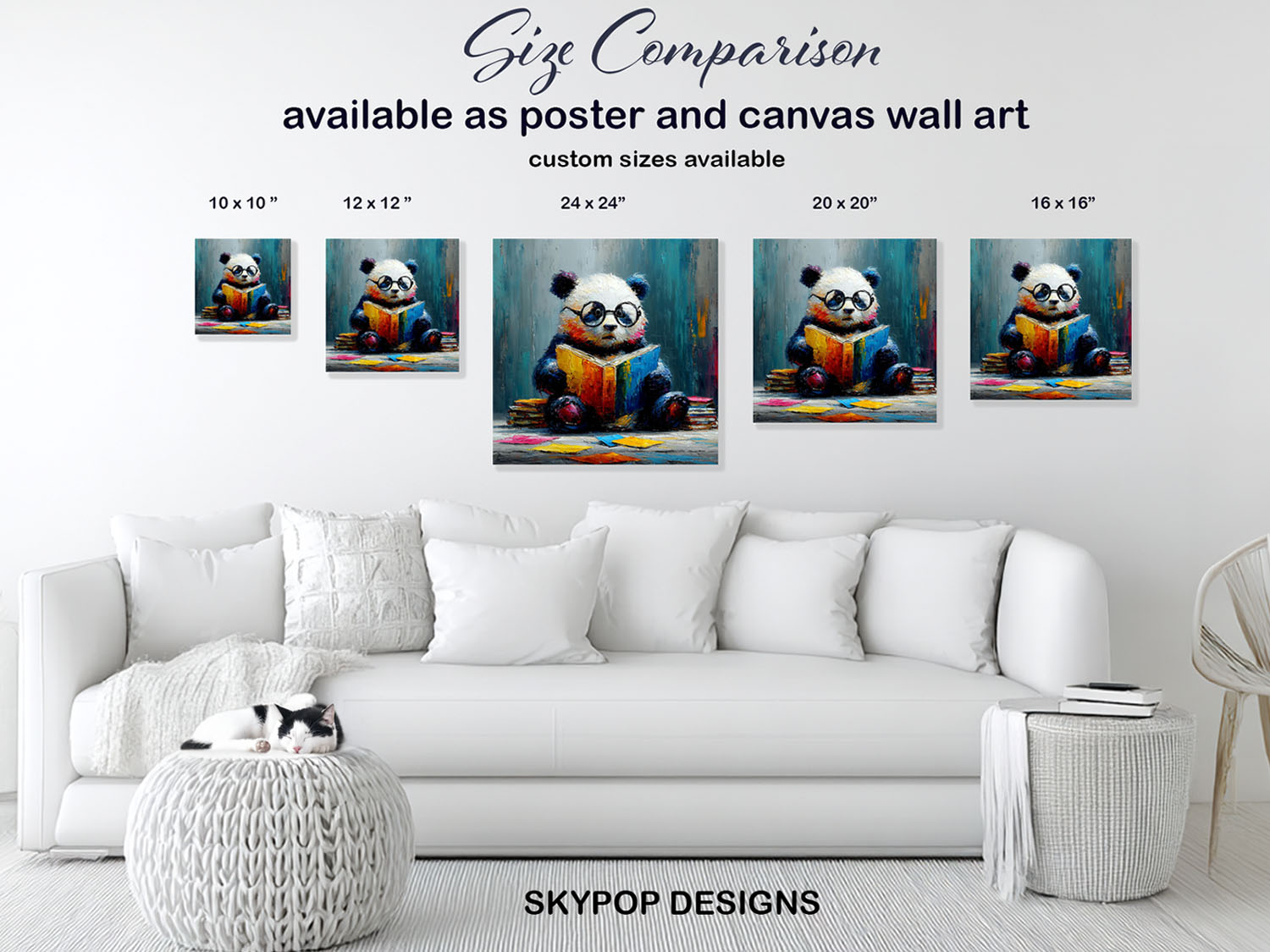Transform your space with this vibrant Panda Reads canvas wall art, a captivating piece that blends Pop Art charm with whimsical contemporary style. This high-quality poster or canvas wall art is perfect for adding a splash of color and personality to modern living room decor, a playful children’s room, or an inspiring office space. The striking multicolor palette, featuring bright yellows and blues, evokes a sense of joy and intellectual curiosity, making this artwork an excellent conversation starter. The expressive panda, complete with round glasses and engrossed in a colorful book, brings a unique and heartwarming focal point to any interior. Ideal for bohemian settings, this canvas wall art also complements minimalist decor by adding a touch of playful sophistication. The textured brushstrokes provide depth and visual interest, ensuring this poster or canvas wall art is as engaging as it is decorative. This versatile piece is perfect for creating a happy and stimulating atmosphere in a nursery or adding character to a home library. It makes a thoughtful and delightful gift for birthdays, housewarmings, or holidays for anyone who appreciates animal art and unique wall decor. Elevate your home with this stunning panda canvas wall art that celebrates the love of reading and brings a cheerful vibe to your walls. Add this eye-catching artwork to your collection and inspire wonder and imagination every day.