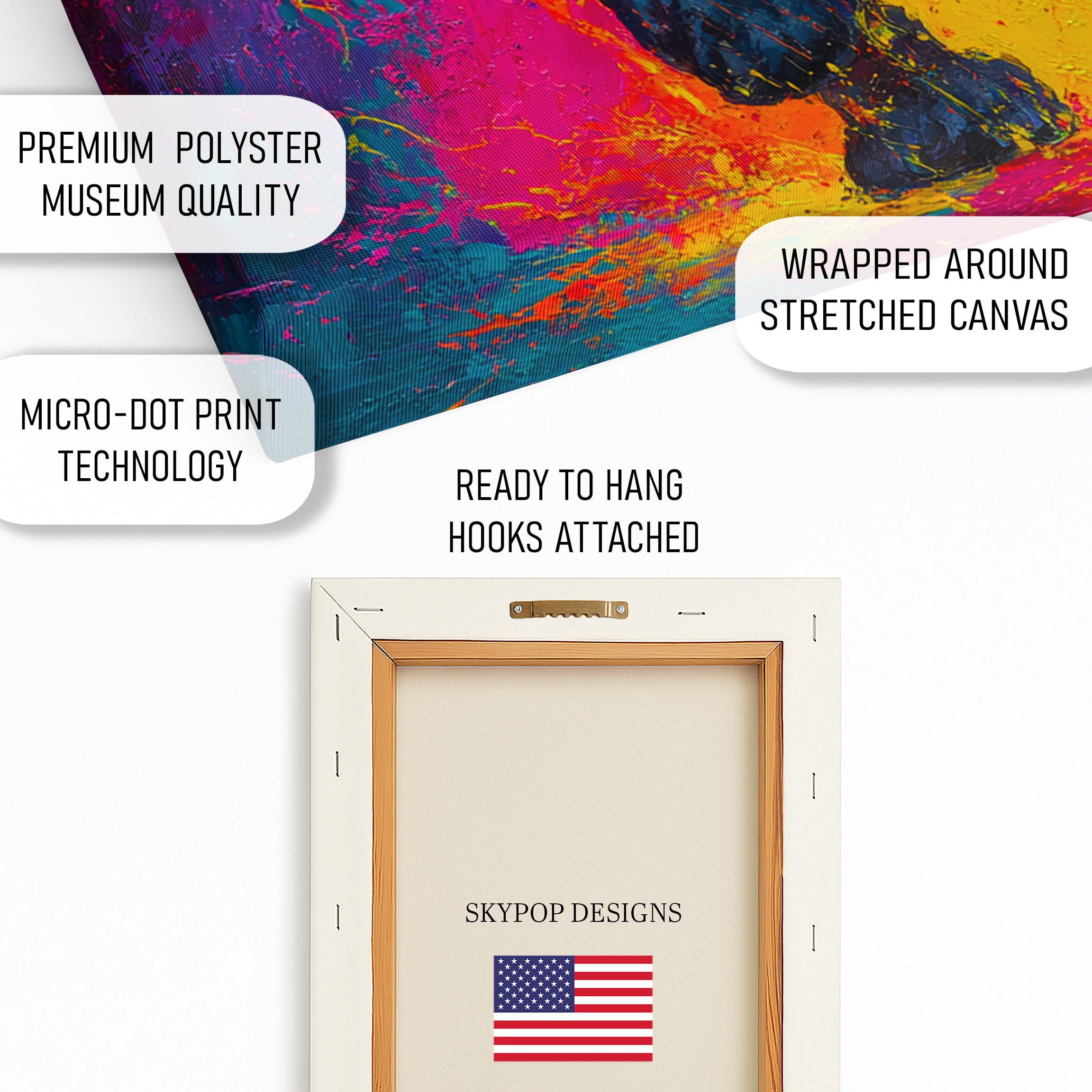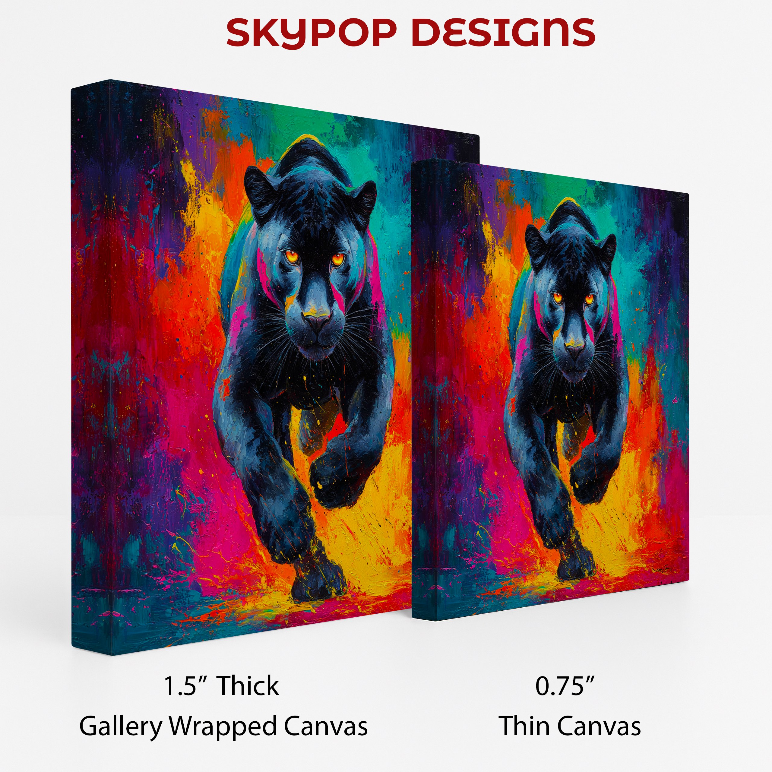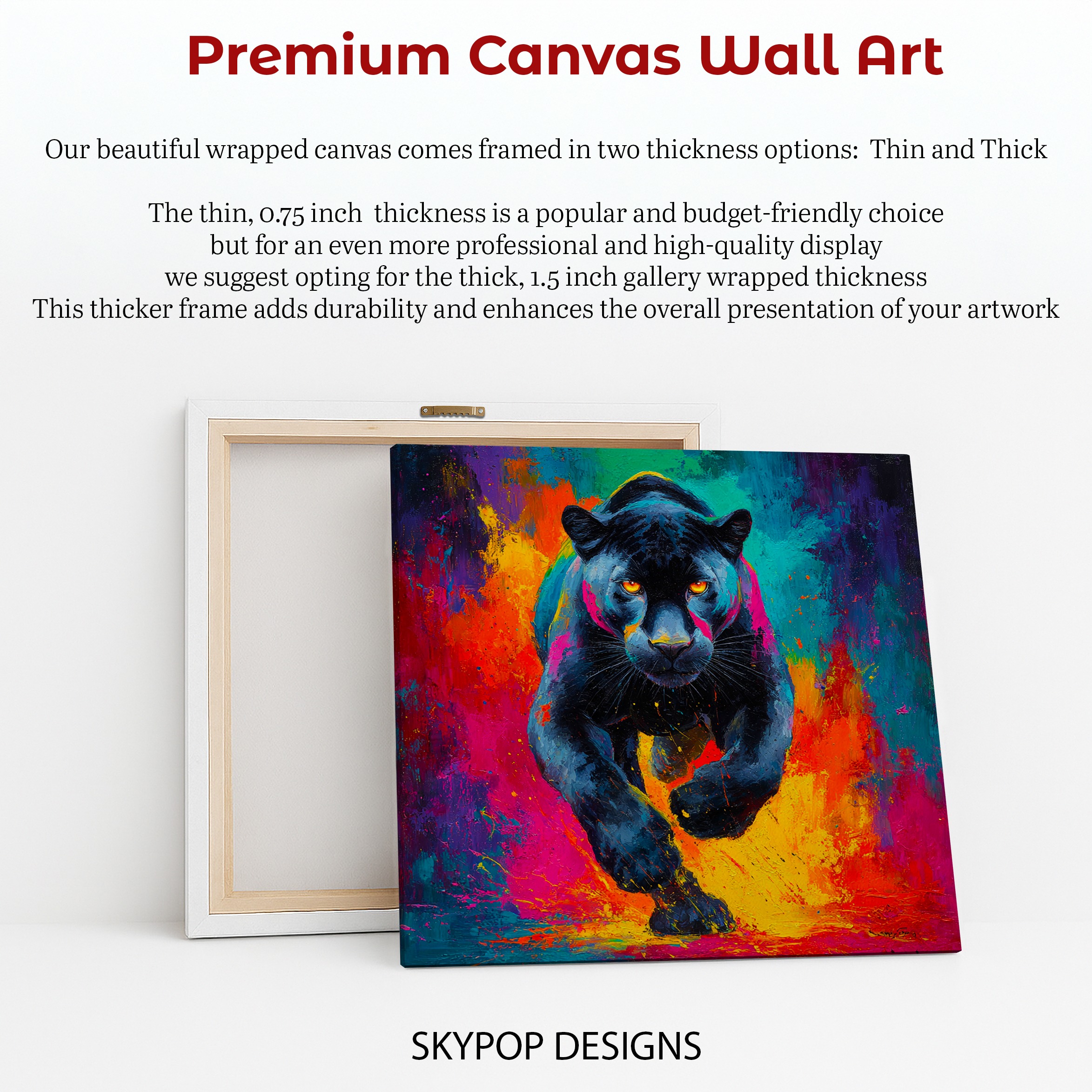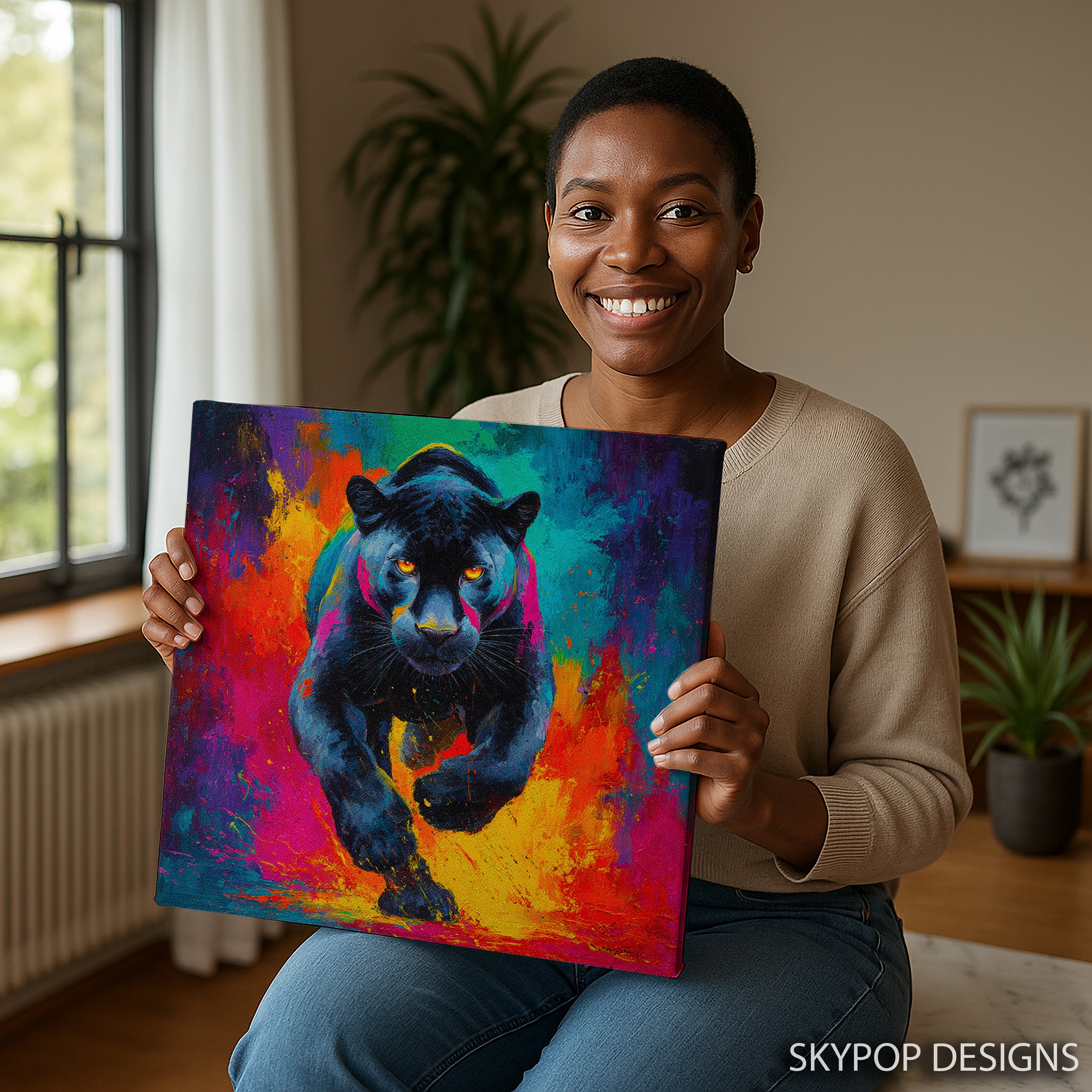 Transform your space with this striking panther canvas wall art that commands attention with its bold colors and dynamic composition. This vibrant poster or canvas print features a powerful black panther set against an explosion of vivid hues, perfect for adding a modern pop of color to any room. The intense gaze of the panther, with its glowing yellow eyes, creates an immediate focal point that draws viewers in and sparks conversation. Ideal for contemporary living rooms or eclectic bedrooms, this piece seamlessly blends animal art with abstract elements, making it a versatile addition to various decor styles. The contrasting palette of deep blacks and electric blues, pinks, and oranges evokes a sense of energy and movement, instantly elevating the mood of your space. Whether you’re looking to make a bold statement in your home office or add a touch of the wild to your game room, this panther wall art delivers impact and style. The high-quality printing captures every brushstroke and color splash, ensuring the artwork remains stunning from every angle. Gift this eye-catching piece to art enthusiasts or animal lovers for birthdays or housewarmings. Available in multiple sizes, this canvas art adapts to different wall spaces, from cozy corners to grand feature walls. Embrace the spirit of the wild and the vibrancy of contemporary design with this captivating panther artwork. Elevate your interior decor today with this unforgettable blend of nature and artistic expression.