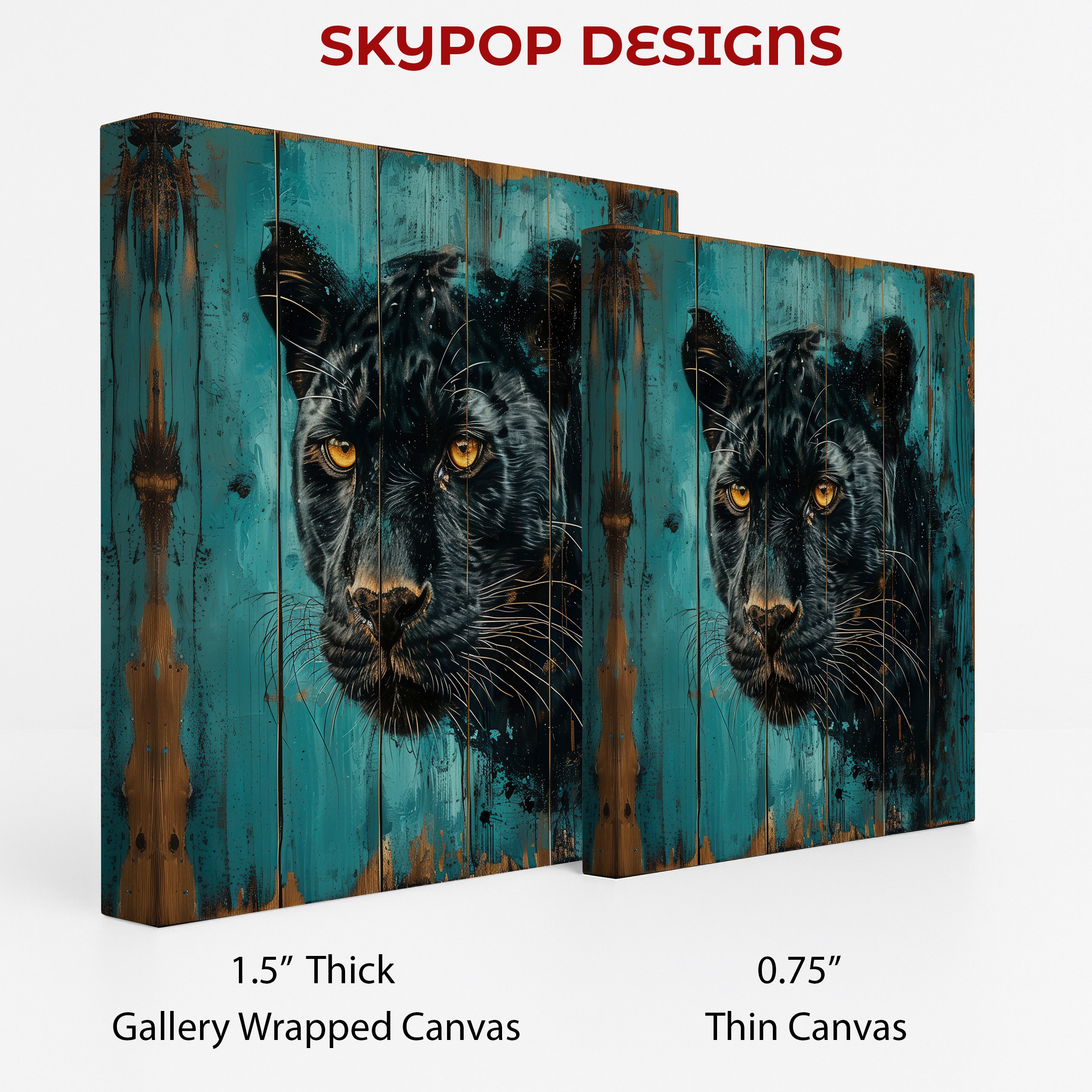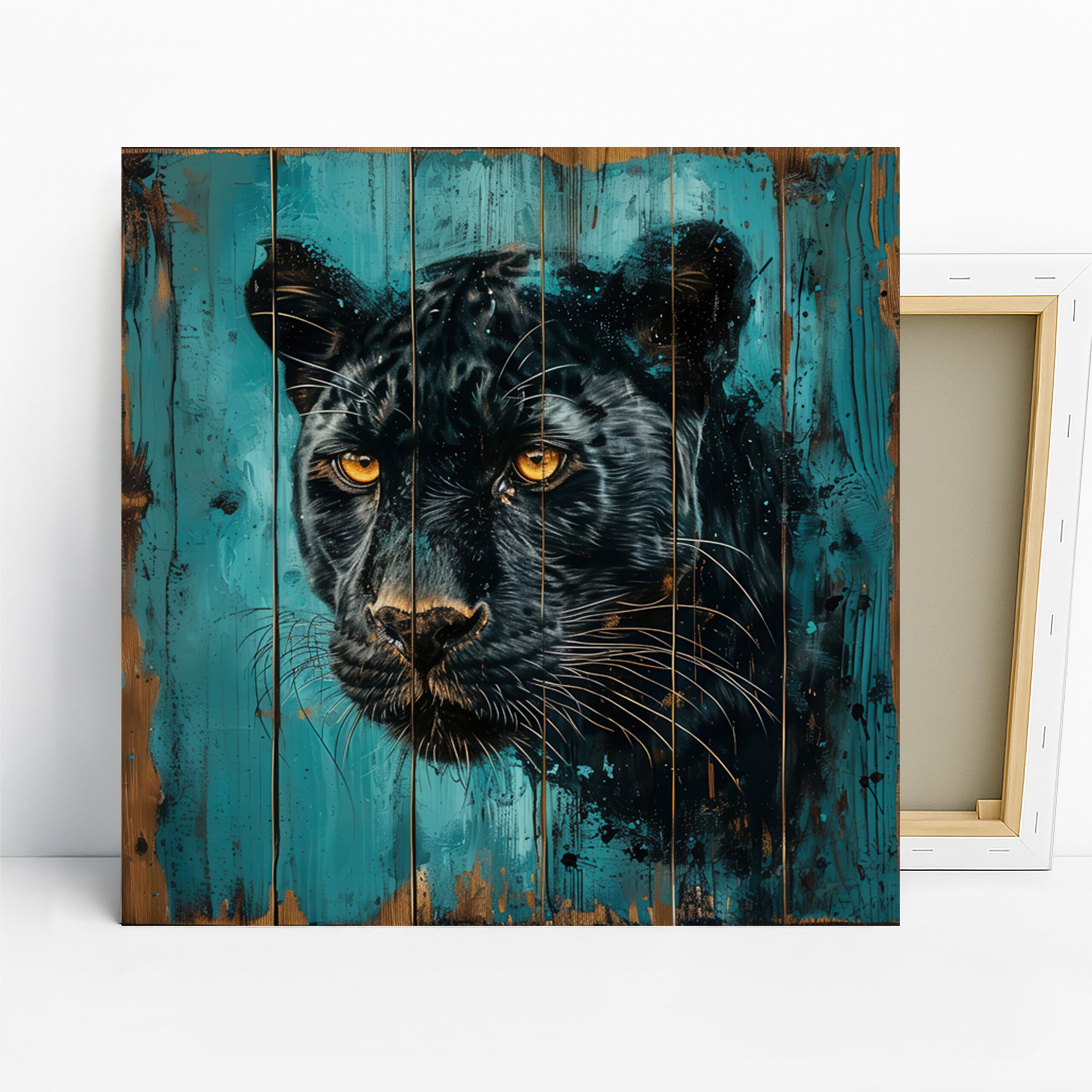 Transform your space with this captivating panther canvas wall art, featuring the striking gaze of a majestic black panther against a backdrop of distressed teal and gold textures. This abstract animal art piece powerfully blends raw energy with sophisticated design, making it an ideal canvas print for any modern or contemporary living room. Elevate your home decor with this visually stunning poster that adds a touch of the wild and a sense of mystery to your walls. The vibrant teal and deep black tones evoke a feeling of calm yet powerful presence, creating a focal point that inspires awe and transforms your interior. This unique piece, perfect for a contemporary office or entryway, showcases the beauty of nature with an artistic flair, ideal for those who appreciate modern art and animal-themed decor. The textured details and striking contrast make this canvas wall art truly a conversation starter, whether displayed in a minimalist setting or a more eclectic bohemian space. Enhance your bedroom with its calming yet intriguing ambiance, or use it to add personality to your personal office. This versatile poster is a fantastic gift idea for wildlife enthusiasts or anyone looking to add a touch of dramatic flair to their home. Embrace the spirit of the jungle with this high-quality canvas art, designed to bring a sense of untamed beauty and artistic sophistication to your living environment today. Make a bold statement and elevate your wall decor with this unforgettable panther artwork.