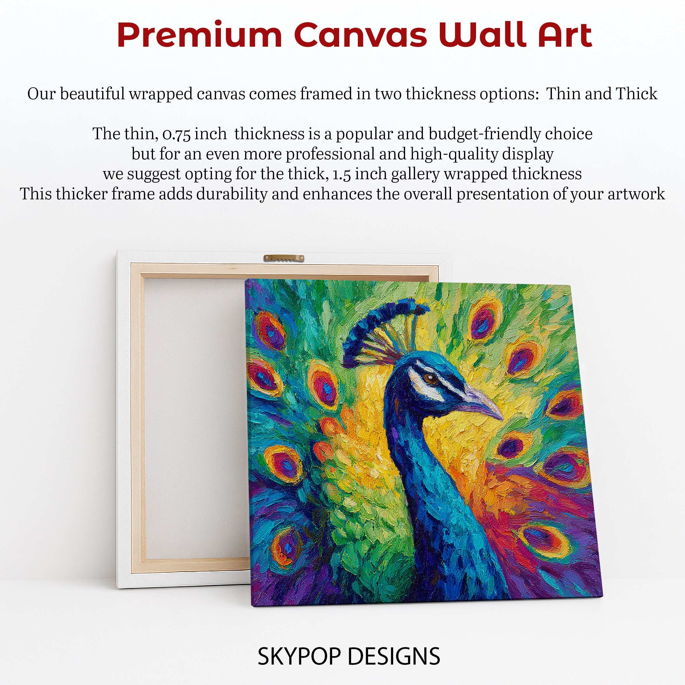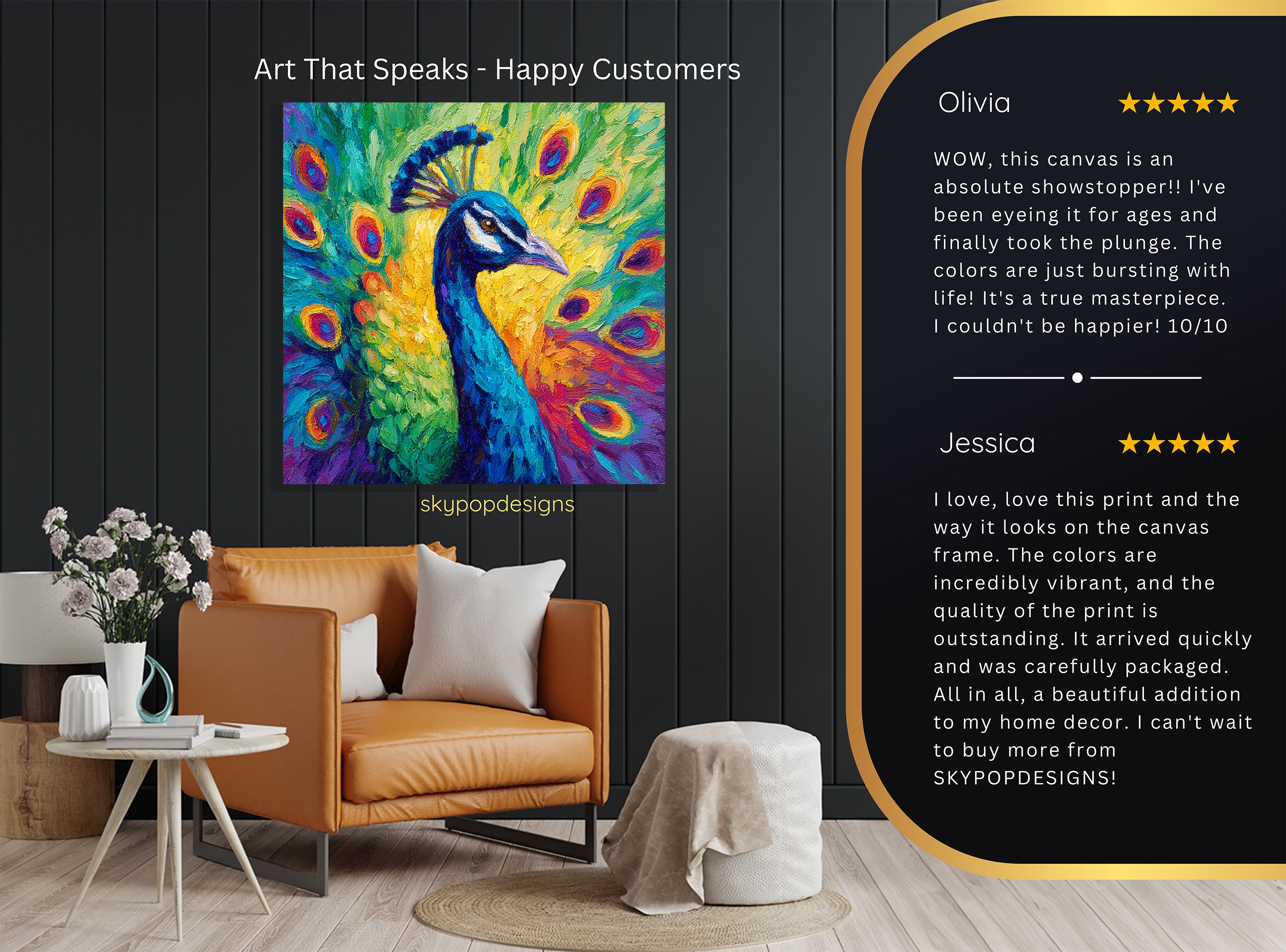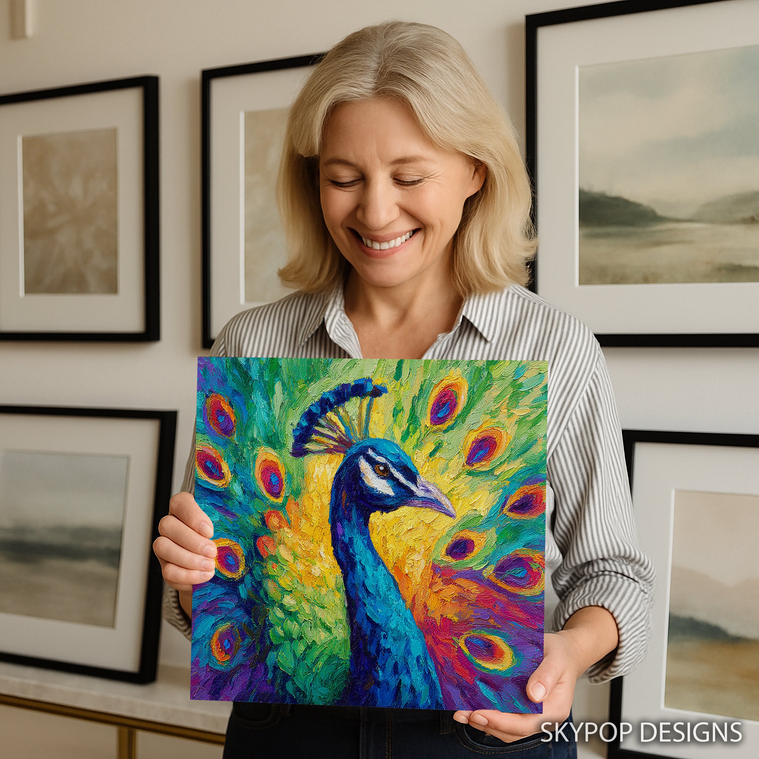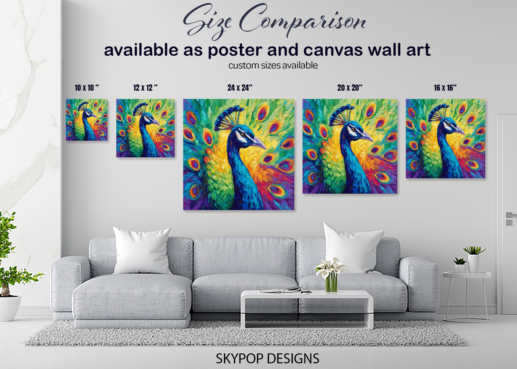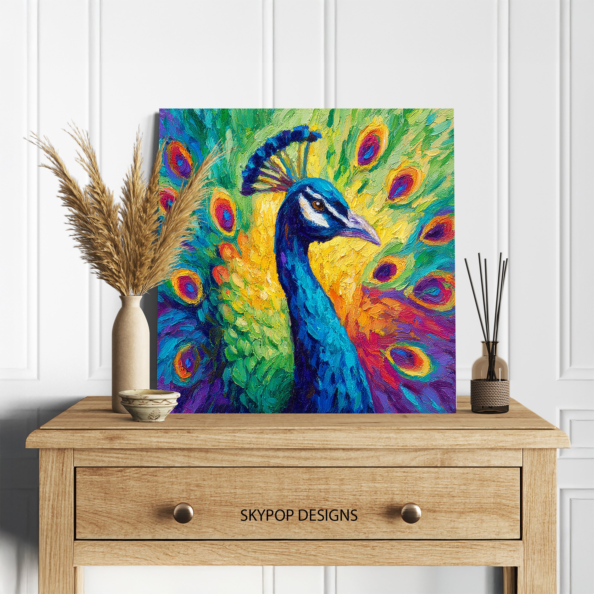 Transform your space with this stunning peacock canvas wall art, bursting with vibrant colors and energy. This eye-catching poster celebrates the majestic beauty of nature’s most colorful bird in a contemporary style that’s perfect for modern home decor. The bold brushstrokes and rich palette of blues, greens, purples, and yellows create a captivating focal point that instantly elevates any room. Ideal for bohemian or eclectic interiors, this peacock wall art adds a touch of exotic charm and personality to your living room, bedroom, or entryway. The striking composition draws the eye, making it a great conversation starter for dinner parties or gatherings. The peacock’s regal pose and dazzling plumage symbolize confidence and beauty, inspiring positive energy in your daily life. This versatile canvas art adapts beautifully to various decor styles, from minimalist modern to maximalist bohemian. Its high-quality printing ensures every intricate detail of the peacock’s feathers is captured in stunning clarity. Whether you’re looking to refresh your seasonal decor or searching for the perfect housewarming gift, this peacock artwork delivers impact and style. The large, colorful design makes a bold statement in any space, instantly transforming blank walls into vibrant showcases of art. Bring the beauty of nature indoors and elevate your home’s atmosphere with this unique and eye-catching peacock canvas wall art today.
