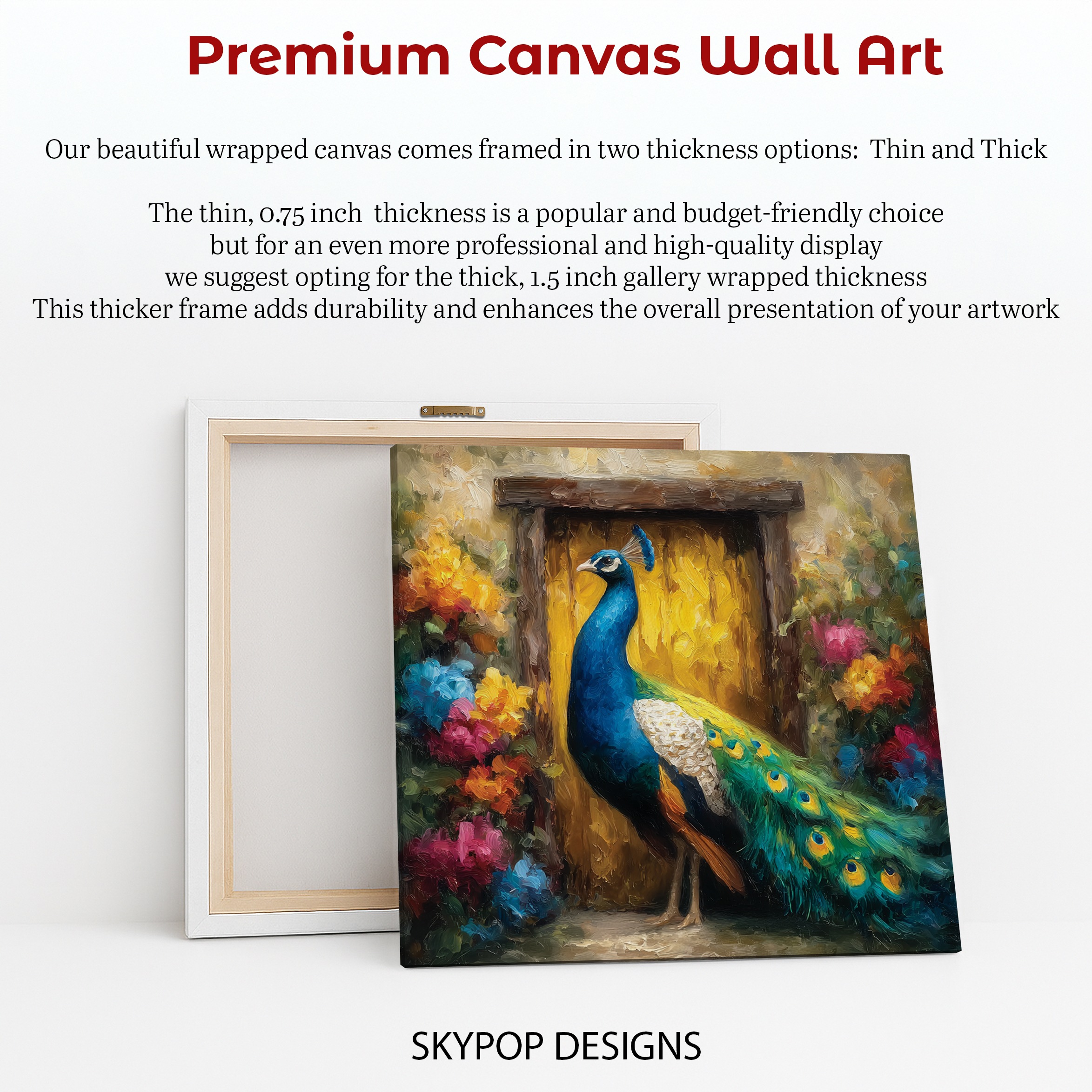 Keywords: Peacock Wall Art, Canvas Wall Art, Impressionism Art, Nature Wall Art, Animal Wall Art, Bohemian Decor, Traditional Decor, Vintage Decor, Living Room Art, Bedroom Art, Dining Room Art, Entryway Decor, Multicolor Art, Blue and Green Art, Yellow and Pink Art, Majestic Peacock, Floral Wall Art, Wall Decor, Home Decor, Statement Piece, Housewarming Gift, Artistic Flair, Classic Beauty, Vibrant Colors, Textured Art, Expressive Brushstrokes, Elegant Sanctuary, Botanical Art, Wildlife Art, Wall Poster