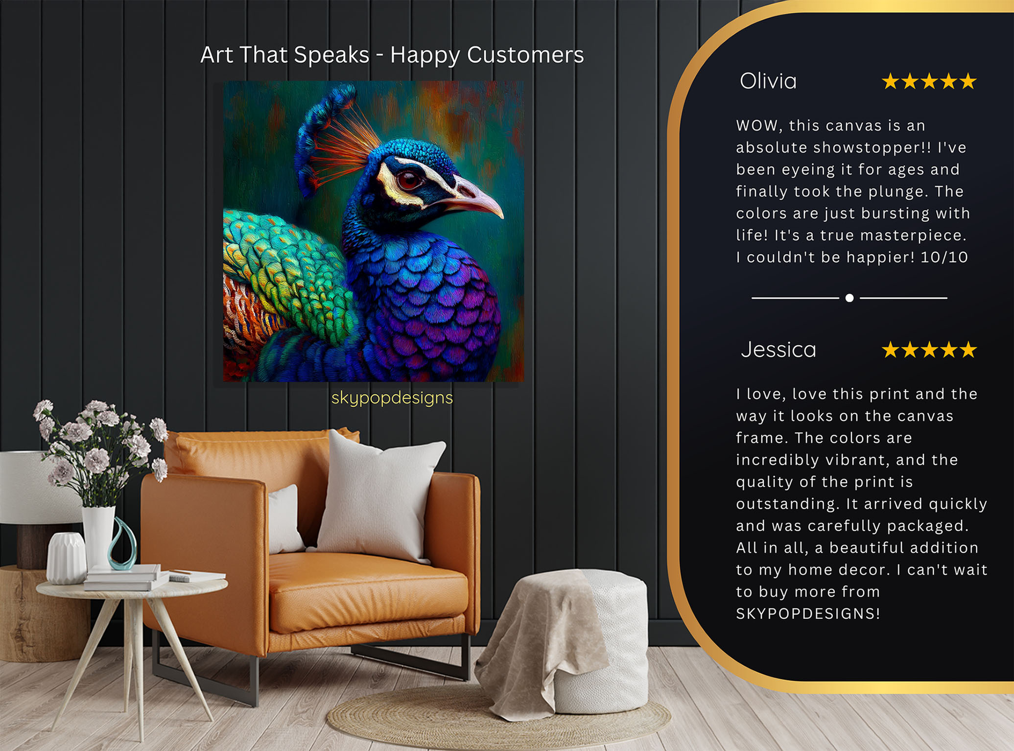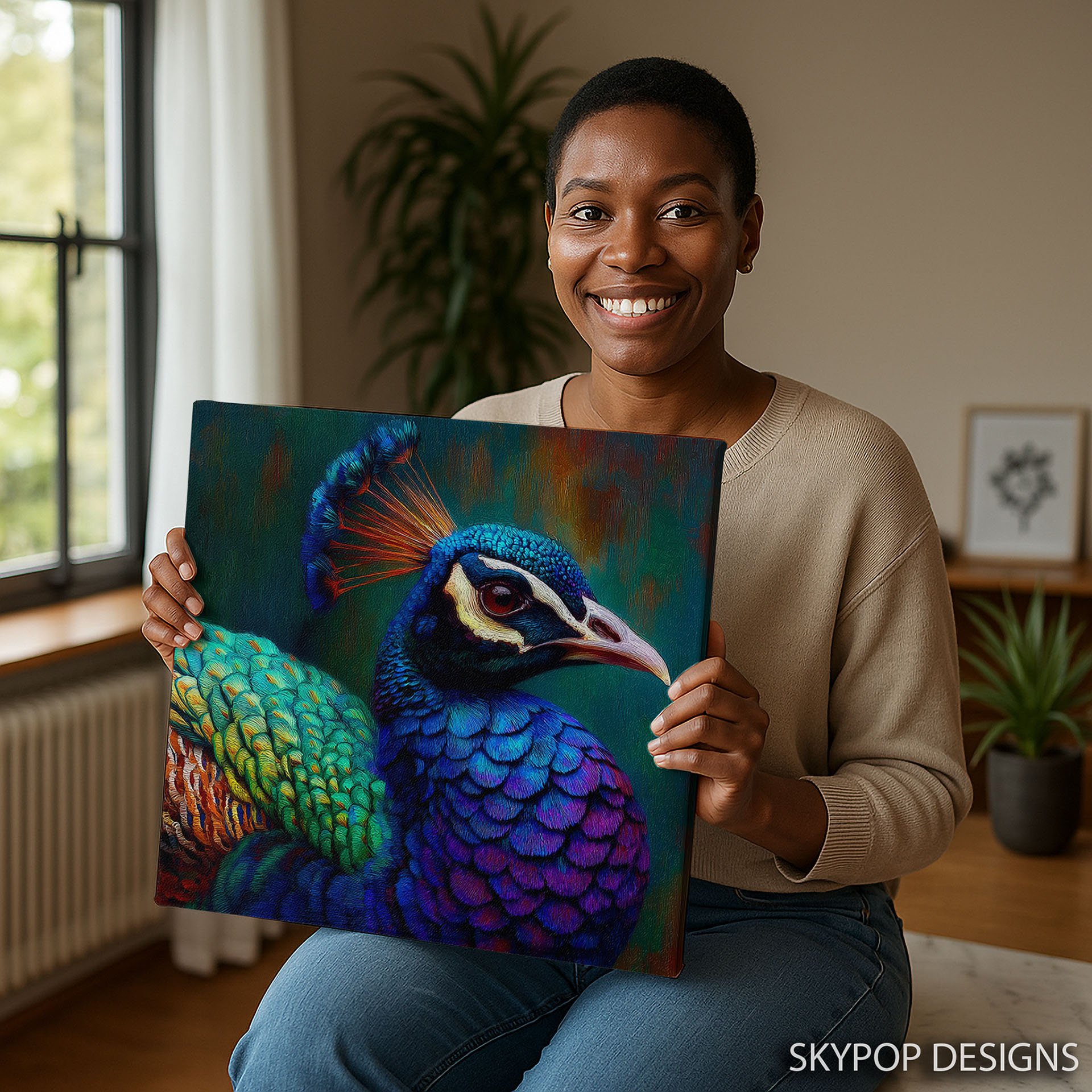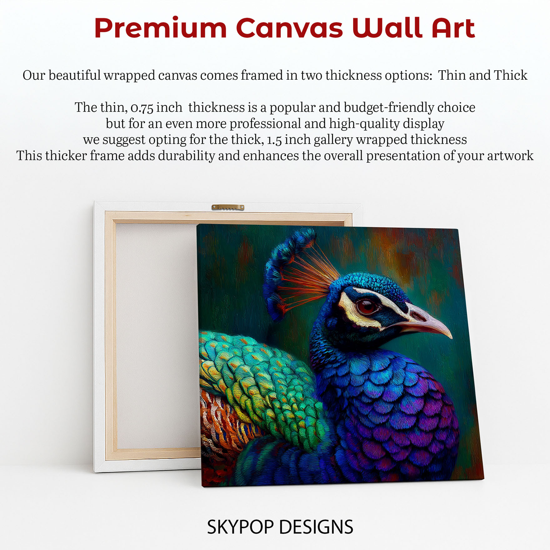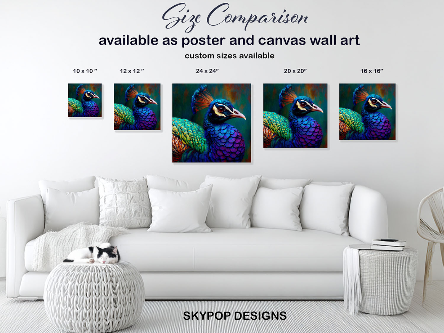 Transform your space with this stunning peacock canvas wall art that showcases the vibrant beauty of nature. This striking poster or canvas wall art is perfect for adding a touch of exotic elegance to living room decor or creating a captivating focal point in your entryway. The rich blues, teals, and purples of the peacock’s feathers bring a sense of luxury and depth, while the multicolor accents add a vibrant energy to any room. Ideal for bohemian and contemporary interiors, this animal art adds personality and sophistication to minimalist spaces. The majestic peacock, with its iridescent plumage, makes a breathtaking centerpiece that will inspire awe. High-quality printing ensures every detail, from the intricate feather patterns to the piercing gaze, is beautifully captured on this canvas wall art. This versatile nature art piece works wonderfully in bedrooms or hallways, creating an uplifting and chic atmosphere. Perfect as a memorable housewarming gift or to refresh your home decor for any occasion, it brings lasting visual appeal. The striking color palette blends seamlessly with a variety of color schemes, making it easy to integrate into your existing aesthetic. Elevate your home with this exquisite peacock canvas wall art that combines natural wonder with modern artistry. A must-have for lovers of bold animal wall art, this piece will captivate and enchant. Adorn your walls with this magnificent artwork and experience its transformative power today.