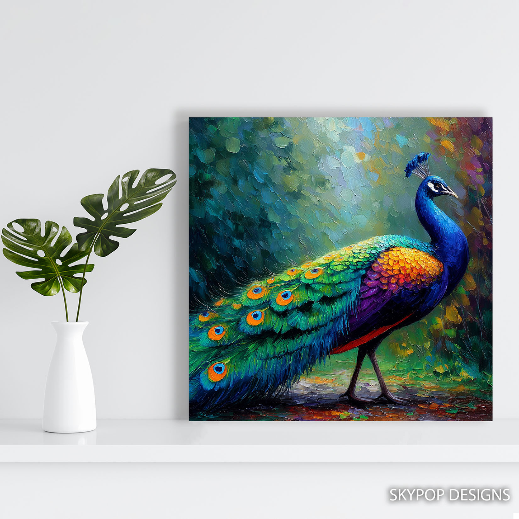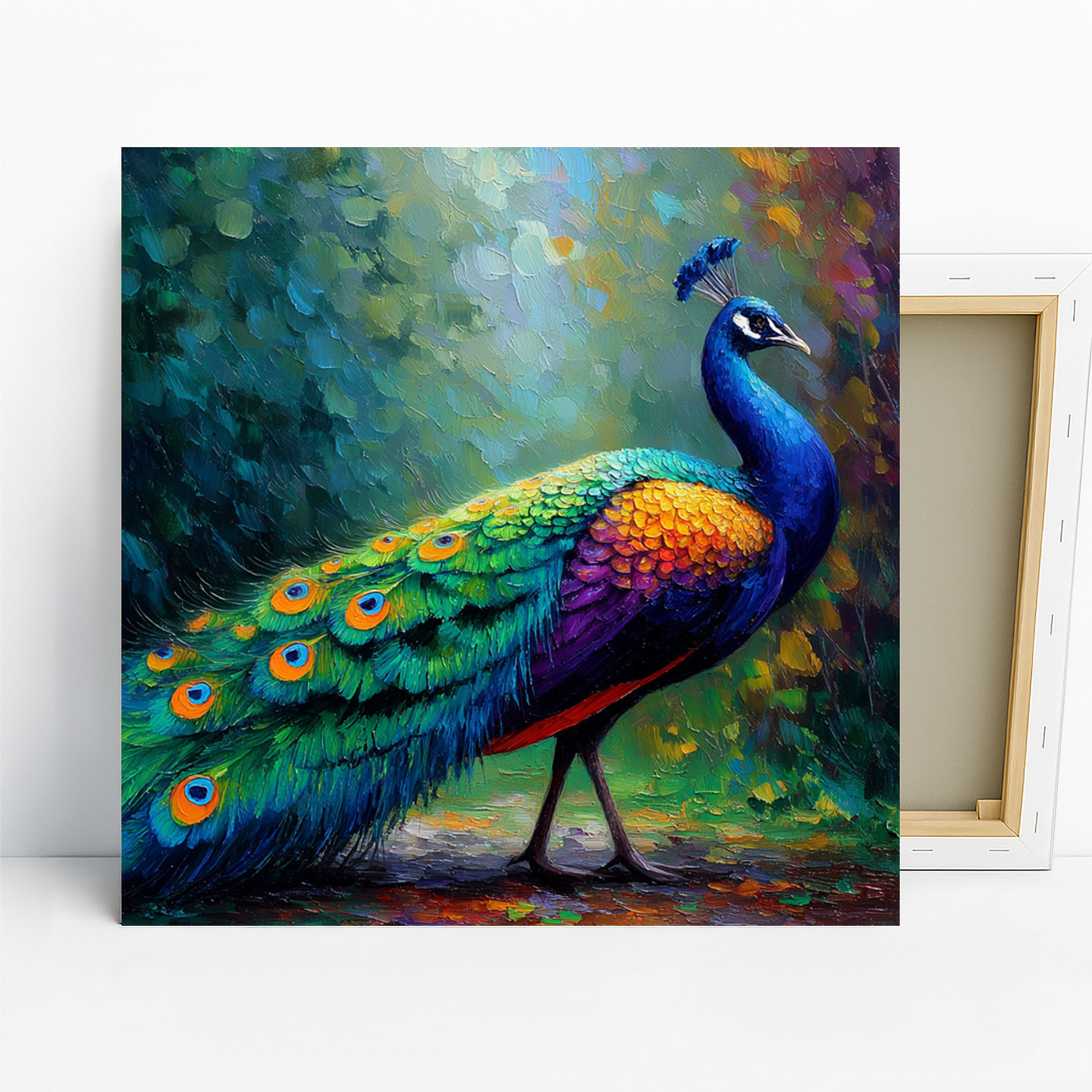 Transform your living space with this breathtaking peacock canvas wall art, showcasing the vibrant beauty of nature in a contemporary style. This stunning poster or canvas wall art is ideal for adding a touch of elegance to modern living room decor or creating a captivating focal point in your entryway. The rich blue and emerald green hues, accented with touches of gold and multicolor, evoke a sense of luxury and sophistication, while the striking peacock design inspires awe. Perfect for bohemian and contemporary interiors, this nature art piece brings the wild’s charm indoors and can even enhance your office decor. The intricate details of the peacock’s plumage, rendered with a rich, textured brushstroke effect, create a visually dynamic composition that captivates the eye. This versatile animal art is also a wonderful gift for housewarmings, birthdays, or holidays, bringing enduring beauty to any home. Elevate your walls with this high-quality canvas wall art that celebrates the majesty of the peacock, creating an inspiring and vibrant atmosphere. This exquisite poster or canvas wall art will be a cherished addition to your collection, transforming any room into a statement of personal style. Add a splash of color and natural wonder to your surroundings today.
