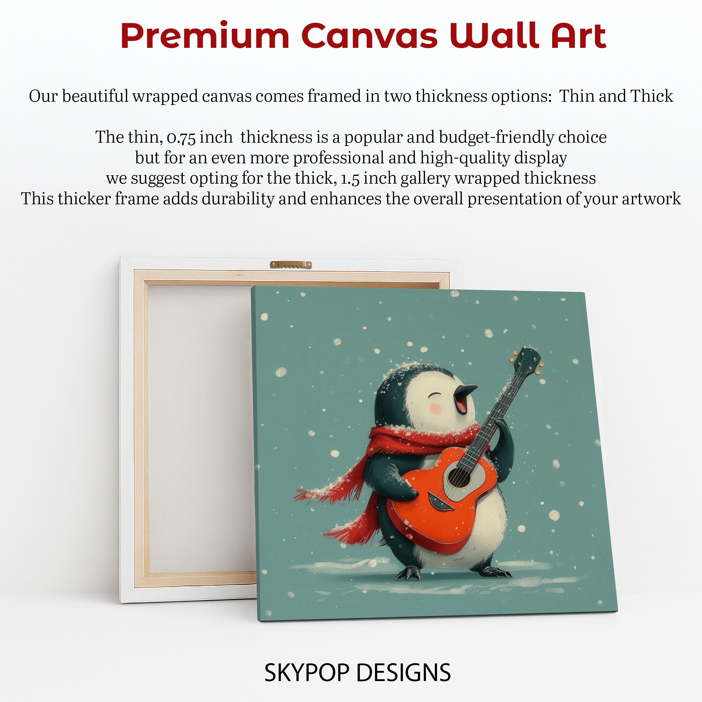 Keywords: Penguin Art, Canvas Wall Art, Animal Art, Whimsical Art, Pop Art, Contemporary Decor, Modern Decor, Bohemian Decor, Living Room Art, Children’s Room Decor, Bedroom Art, Entryway Decor, Teal Art, Red Art, Multicolor Art, White Art, Penguin Jam Session, Music Art, Winter Art, Guitar Art, Cute Animal Art, Playful Art, Housewarming Gift, Holiday Gift, Wall Decor, Home Decor, Canvas Print, Vibrant Art, Joyful Art, Unique Artwork