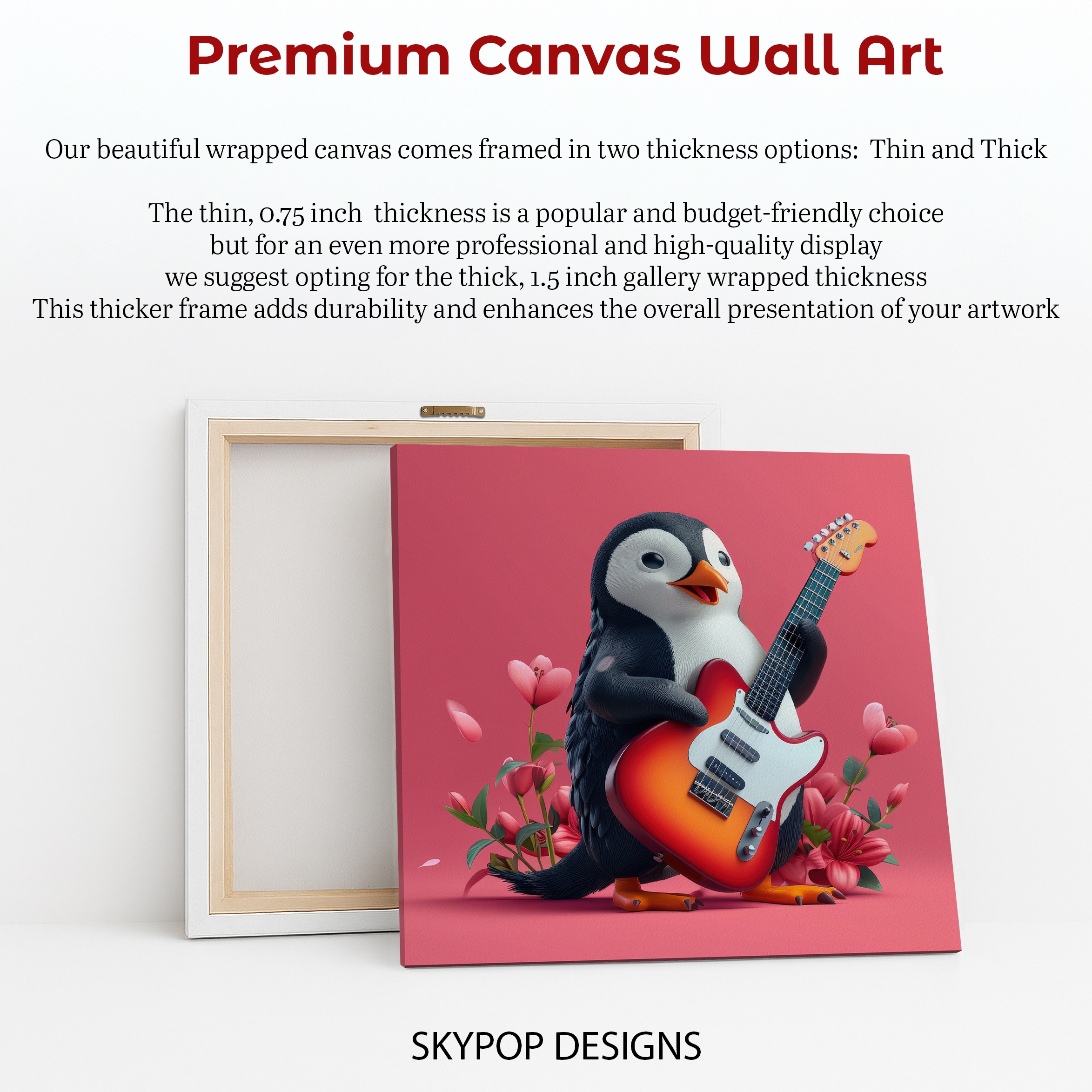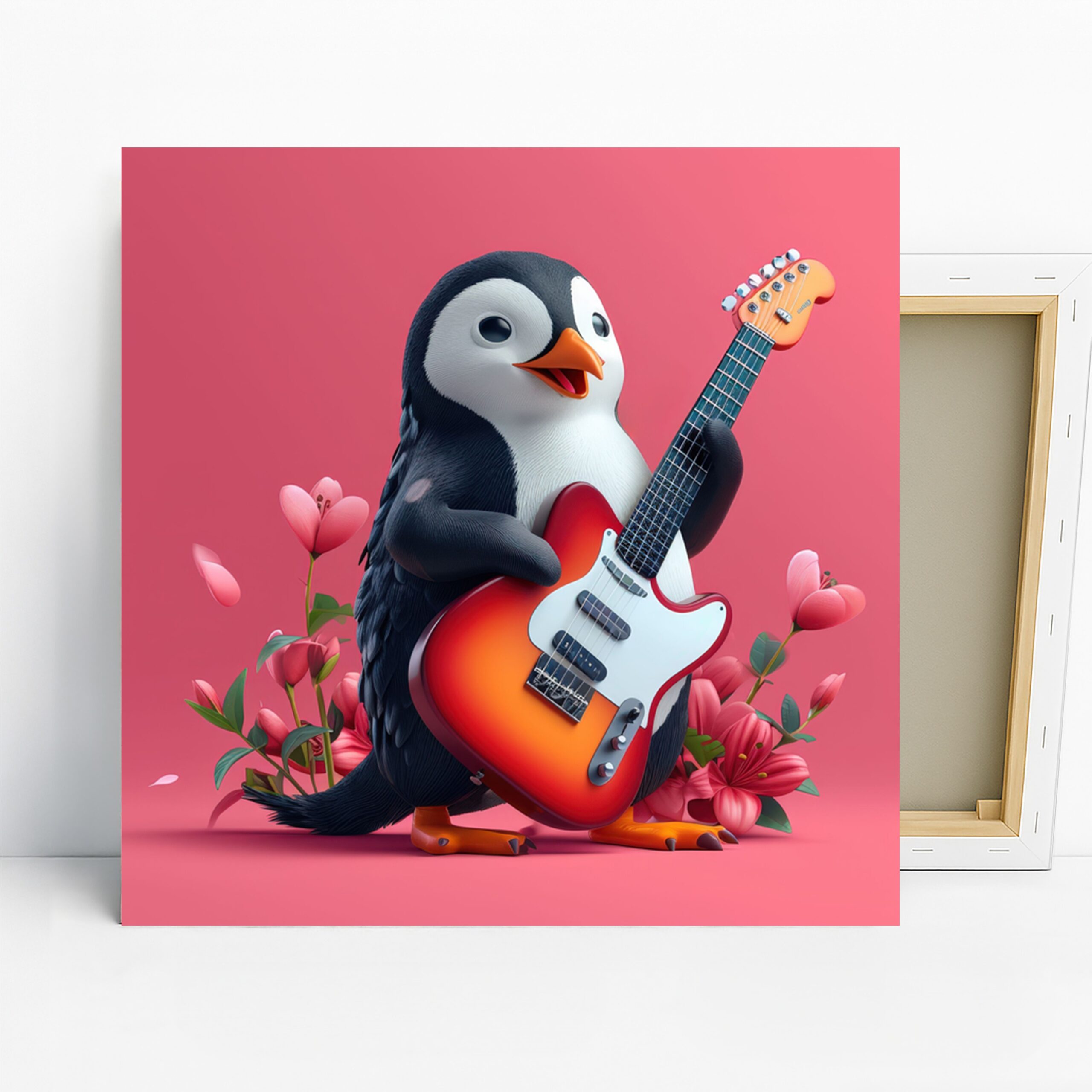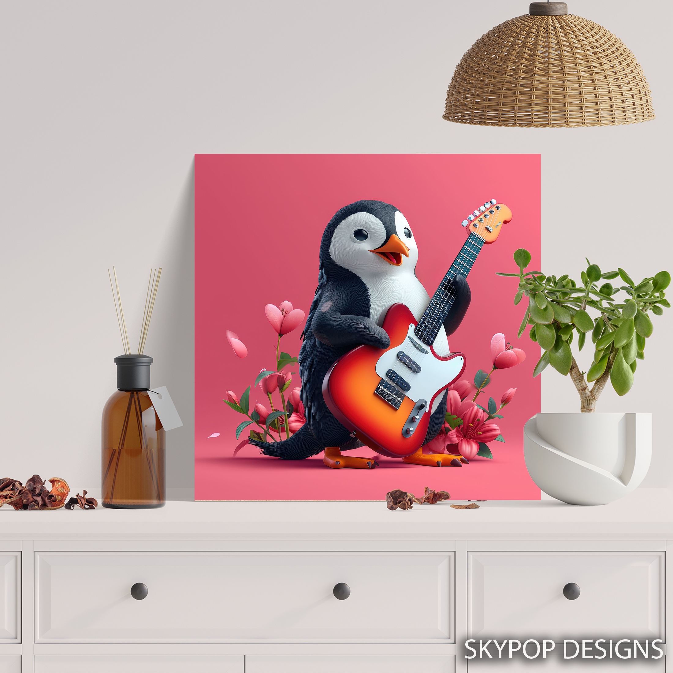 Unleash your inner rockstar with this vibrant penguin canvas wall art, showcasing a cool penguin ready to shred on a vibrant electric guitar. This eye-catching poster or canvas wall art will instantly transform your space, bringing a splash of fun and musical energy to any room. The playful combination of whimsical animal art and bold colors makes this a perfect statement piece for modern living rooms, energetic children’s rooms, or any space needing a touch of personality. The striking pink background and the penguin’s cheerful demeanor create a captivating scene that inspires creativity, while the detailed artwork on the canvas wall art is sure to be a conversation starter. Ideal for music lovers, this piece elevates any decor style, bringing a unique touch to bohemian or glam interiors. This stunning poster or canvas wall art is a fantastic gift for birthdays, holidays, or housewarmings, guaranteed to bring smiles. Showcase your love for music and quirky art with this high-quality canvas print that captures a lively, joyful mood. Celebrate fun and melody with this absolutely adorable penguin artwork, a must-have for any fan of unique wall decor. Bring a rock concert vibe to your walls that will have everyone tapping their feet. This versatile artwork fits perfectly in a cozy bedroom, a fun game room, or even a home office to add a touch of whimsy. Elevate your wall art collection with this unforgettable penguin guitarist today.
