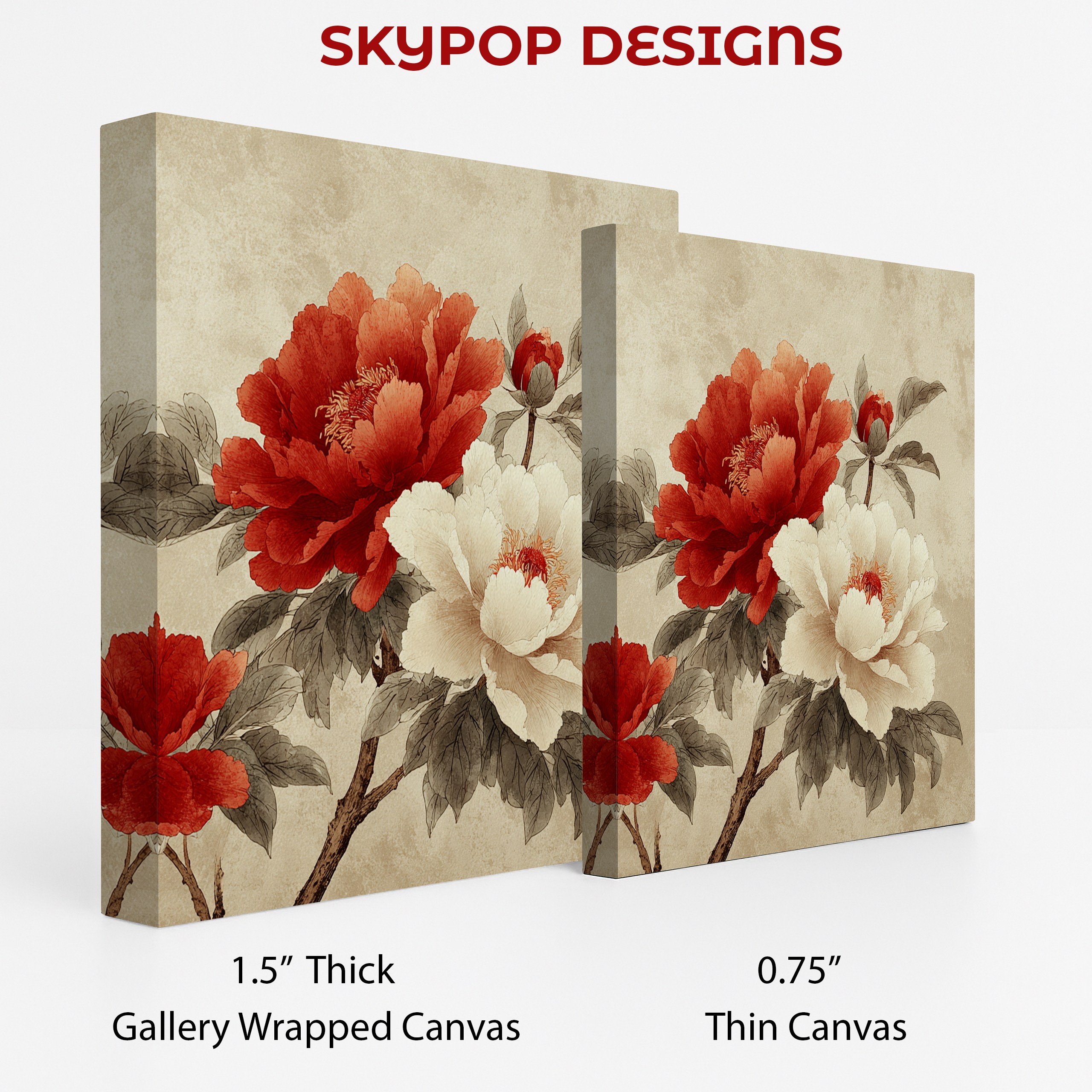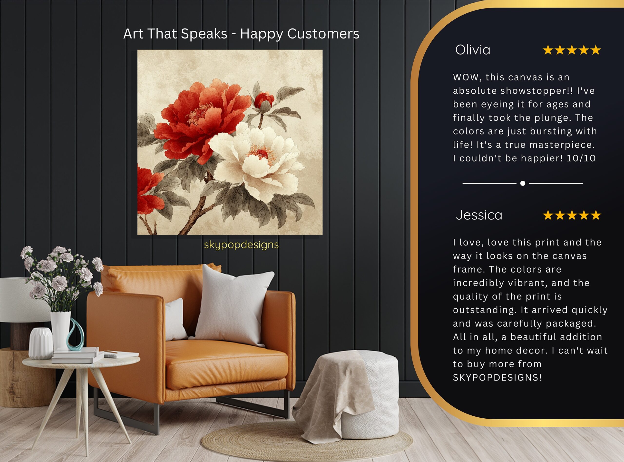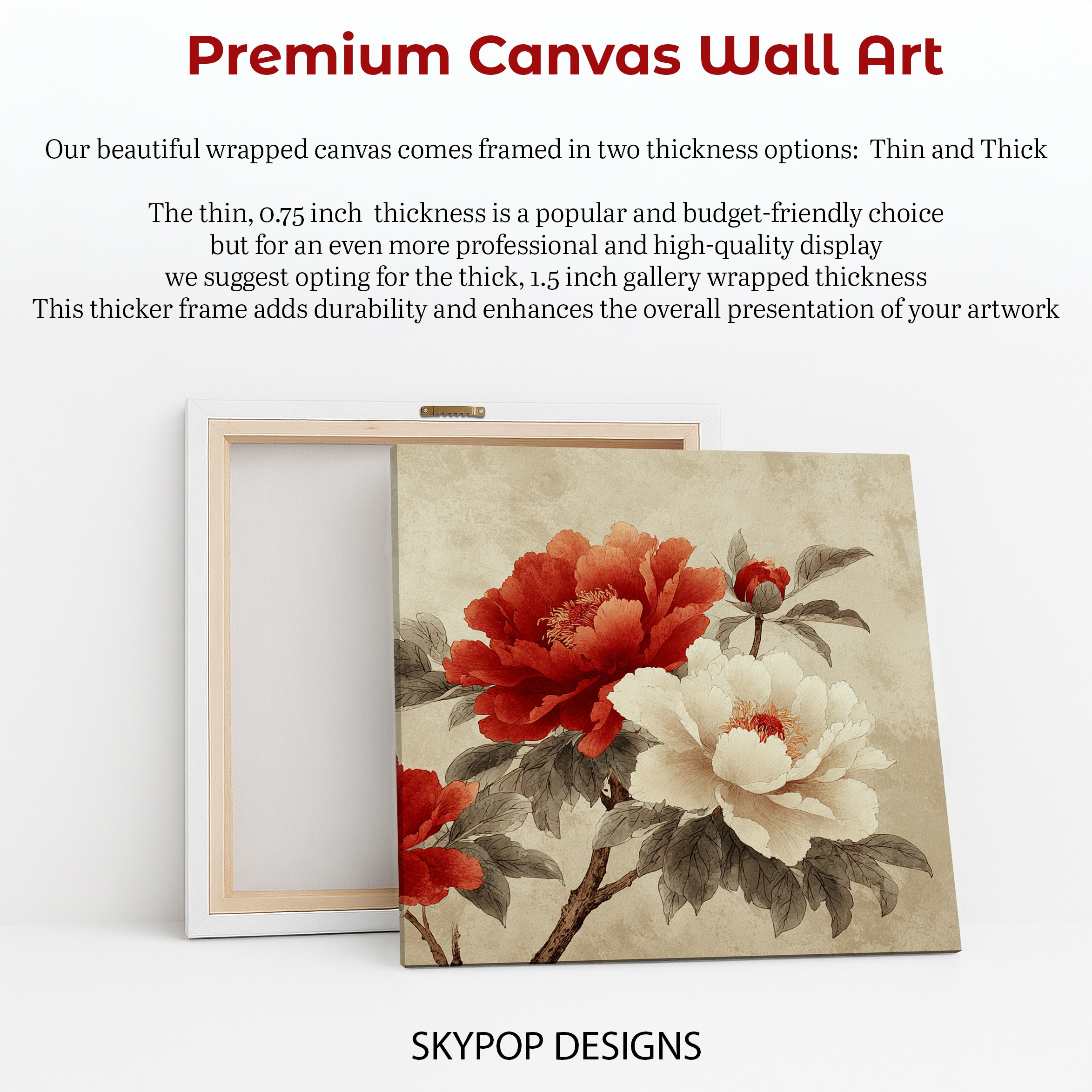 Elevate your space with this stunning peony canvas wall art, showcasing vibrant red and delicate white blooms in a classic, timeless style. This breathtaking poster captures the essence of traditional Asian floral paintings, making it perfect for creating a serene focal point in your living room or bedroom. The rich red petals contrast beautifully with the pure white flower, symbolizing passion and purity, while the soft grey leaves add depth and balance to the composition. Ideal for those who love vintage-inspired decor, this piece effortlessly blends with both modern and traditional interiors. The intricate details of each petal are masterfully rendered, bringing a touch of nature’s beauty into your home. Whether displayed as a statement piece in your dining room or as part of a gallery wall in your office, this peony art print adds elegance and sophistication to any space. The calming effect of the floral imagery makes it a perfect addition to create a zen-like atmosphere in your home. Available in various sizes, this versatile canvas wall art adapts to different room layouts and decor styles. Transform your living space with this exquisite peony artwork that celebrates the timeless beauty of nature. Enhance your home’s ambiance and bring a touch of classic elegance to your walls today.