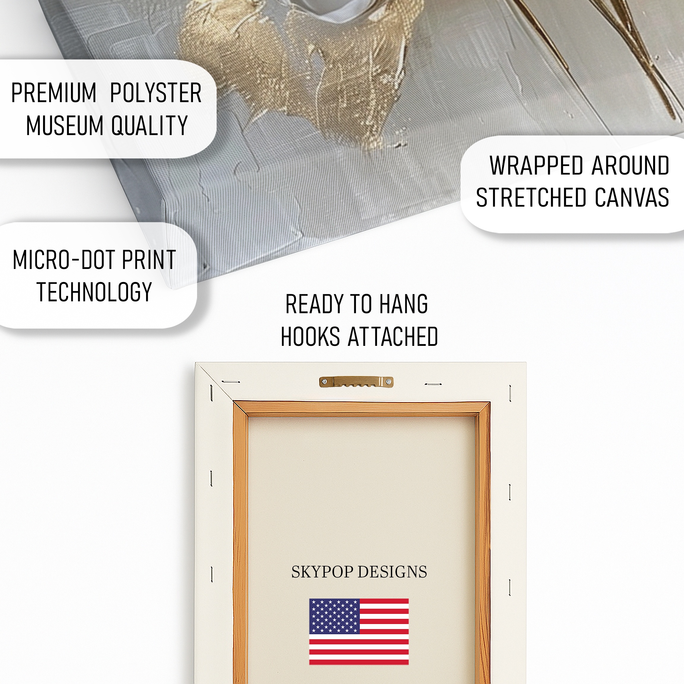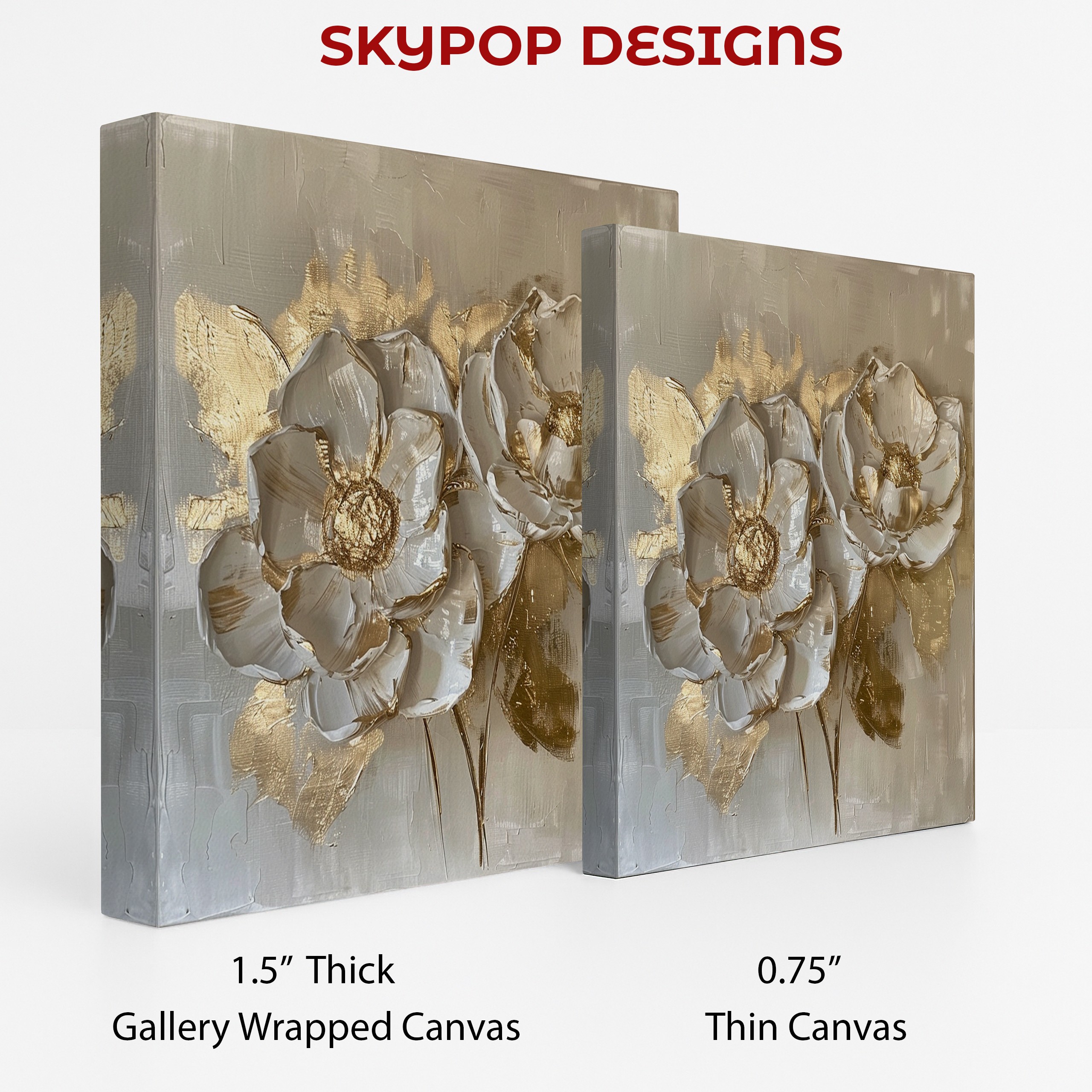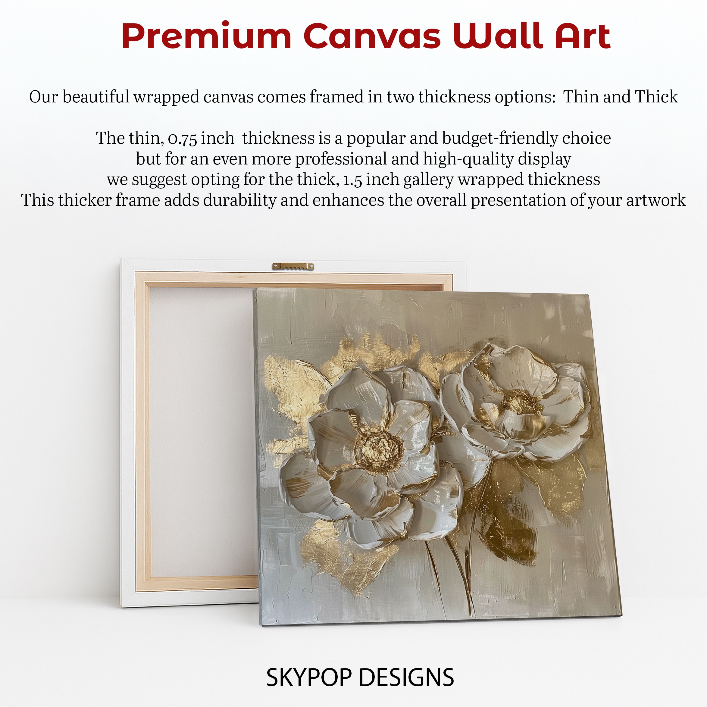 Elevate your home with this luxurious peony canvas wall art, a stunning piece that adds sophistication and glamour to any space. This poster or canvas wall art features opulent peonies in textured white with striking gold accents, creating a captivating floral centerpiece. Perfect for modern living room wall decor, this artwork instantly transforms your bedroom or dining room into a chic retreat. The elegant blend of white and gold evokes a sense of luxury and tranquility, making it ideal for modern and glam decor styles. This floral art piece brings a touch of nature’s beauty indoors, enhanced by its rich texture and radiant gold highlights. The three-dimensional effect of the petals adds depth and an artistic flair, making this canvas wall art a true statement piece. Ideal for creating a welcoming entryway or enhancing a sophisticated lounge area, it offers timeless appeal. This high-quality canvas print is perfect for housewarmings, birthdays, or holidays, offering a gift that radiates elegance and style. Its versatile color palette complements a wide range of interior designs, from minimalist to opulent. Transform your walls with this breathtaking floral canvas art that embodies refined taste and contemporary design trends. Add a touch of gilded beauty and artistic charm to your home with this exquisite peony artwork, a sure conversation starter that inspires awe. Embrace the allure of luxury decor with this magnificent gold and white floral canvas wall art today.
