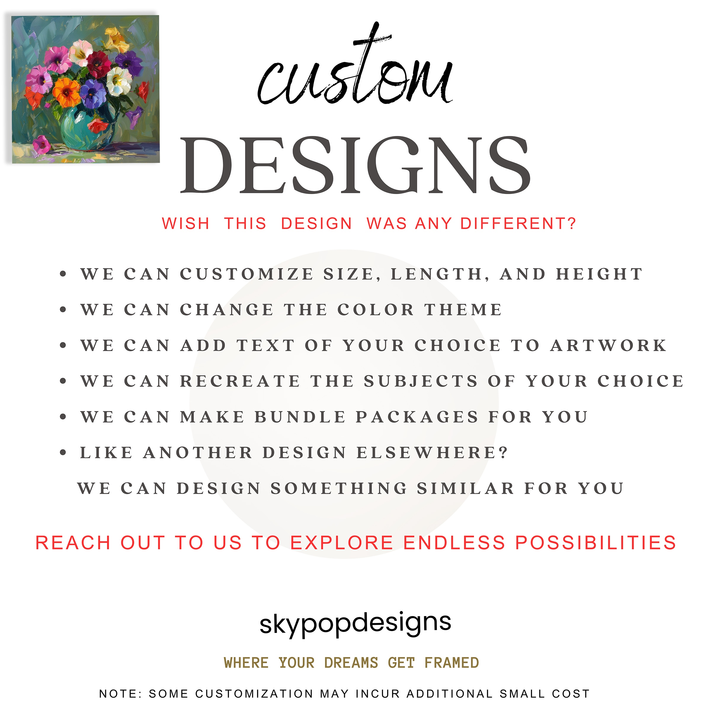 At SKYPOPDESIGNS, we specialize in high-quality canvas and poster prints designed to bring sophistication and style to your space. Please note that our designs are not created with 3D textures or as original oil, acrylic, or watercolor paintings; they are instead HD reproductions of original artwork. This approach allows us to offer these visually stunning pieces at competitive prices, ensuring you receive top-tier, maintenance-free art that’s easy to enjoy.