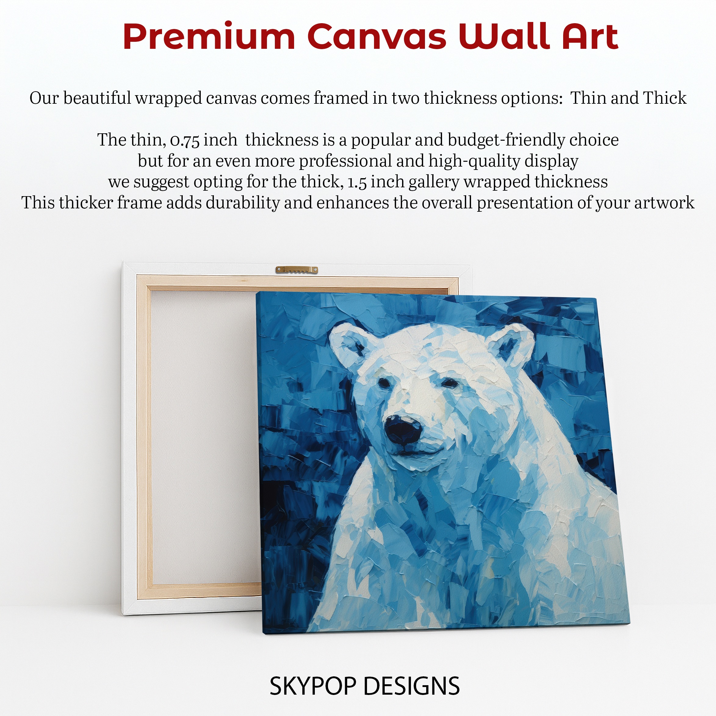 Keywords: Abstract Wall Art, Blue Bear Art, Polar Bear Print, Canvas Wall Art, Modern Decor, Minimalist Art, Contemporary Art, Bedroom Wall Art, Living Room Decor, Office Wall Art, Entryway Decor, Blue White Black Art, Animal Art, Nature Wall Art, Bear Portrait, Arctic Art, Statement Piece, Textured Art, Unique Wall Decor, Serene Nature, Calm Atmosphere, Powerful Beauty, Sophisticated Gift, Nature Lover Gift, Housewarming Gift, Birthday Gift, High-Quality Print, Wild Animal Art, Cool Charm, Home Decor Art