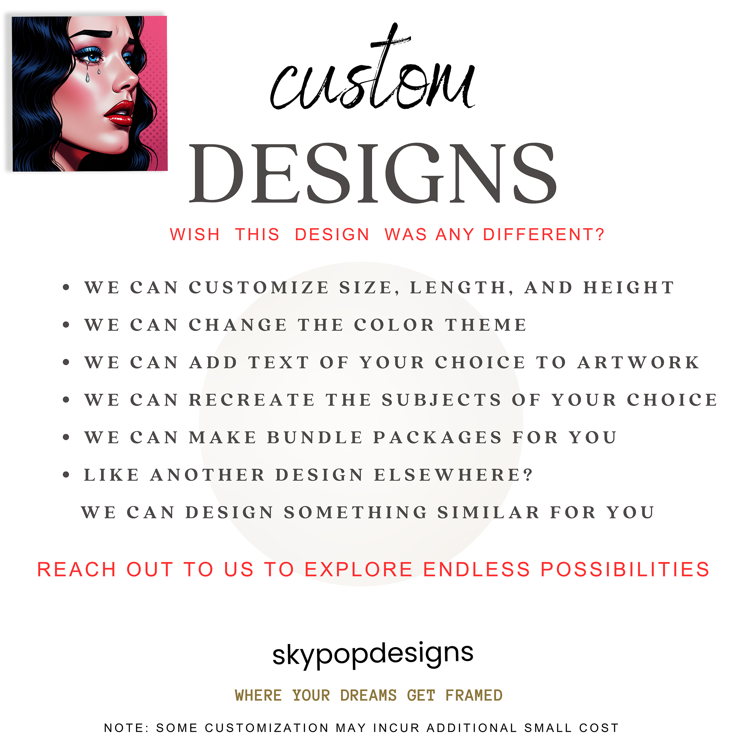 Welcome to SKYPOPDESIGNS, where we blend art, precision, and affordability. Our collection showcases stunning, high-quality images meticulously printed on canvas or posters, ensuring a flawless and consistent finish that captures the essence of various art styles.