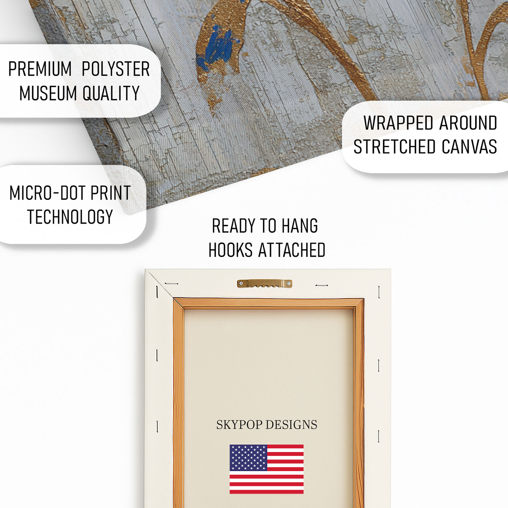 Elevate your home with stunning royal blue poppy canvas wall art that brings vibrant color and luxurious gold accents to any space. This captivating poster or canvas wall art features striking blue poppies with gilded details, creating a dramatic and chic focal point perfect for modern living room decor. The rich blue hues symbolize tranquility and sophistication, while the gold adds an element of glamour and opulence. Ideal for contemporary and glam spaces, this floral artwork enhances entryways with a bold statement or adds a touch of elegance to a bedroom. The abstract yet recognizable floral forms make this piece a conversation starter, showcasing a unique blend of nature-inspired beauty and modern design. High-quality printing ensures the textures and radiant gold leaf shine, bringing depth and dimension to your wall. Whether you’re looking to refresh your home decor or find a luxurious gift for a housewarming or special occasion, this canvas wall art offers versatile appeal. Works beautifully in dining rooms or hallways to create an inviting and upscale atmosphere. This striking poster transcends trends, offering timeless appeal for those who appreciate sophisticated floral wall art. Transform your interiors with this breathtaking combination of blue and gold that celebrates art and luxury today.