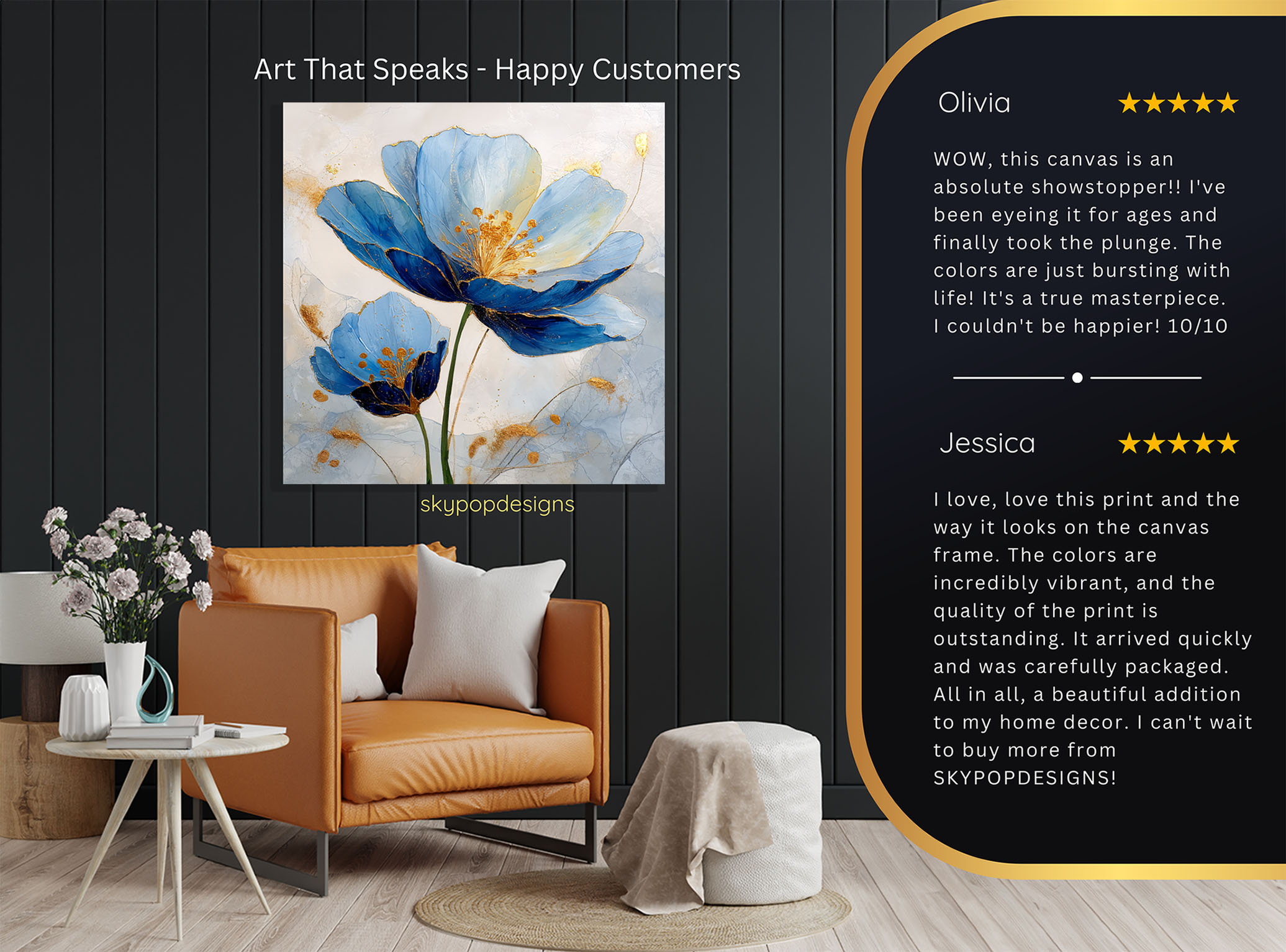 At SKYPOPDESIGNS, we specialize in high-quality canvas and poster prints designed to bring sophistication and style to your space. Please note that our designs are not created with 3D textures or as original oil, acrylic, or watercolor paintings; they are instead HD reproductions of original artwork. This approach allows us to offer these visually stunning pieces at competitive prices, ensuring you receive top-tier, maintenance-free art that’s easy to enjoy.