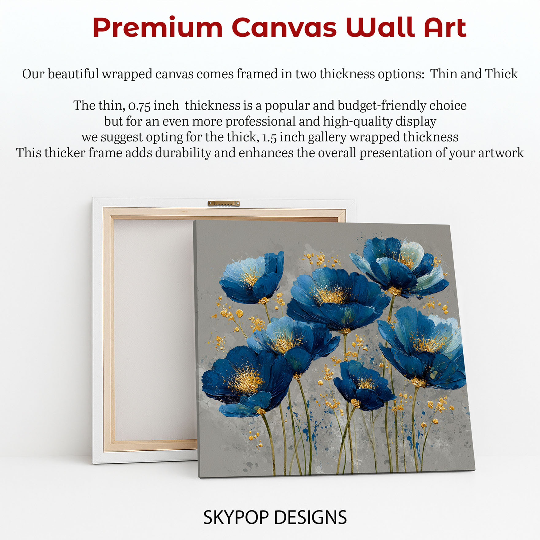 Elevate your living space with this stunning blue poppy canvas wall art, a captivating piece that brings the beauty of nature indoors.
