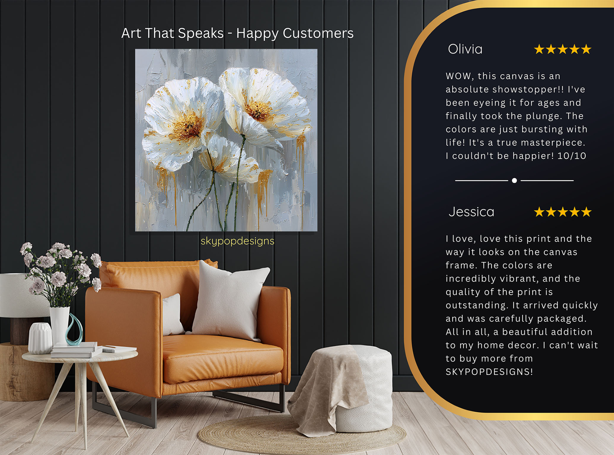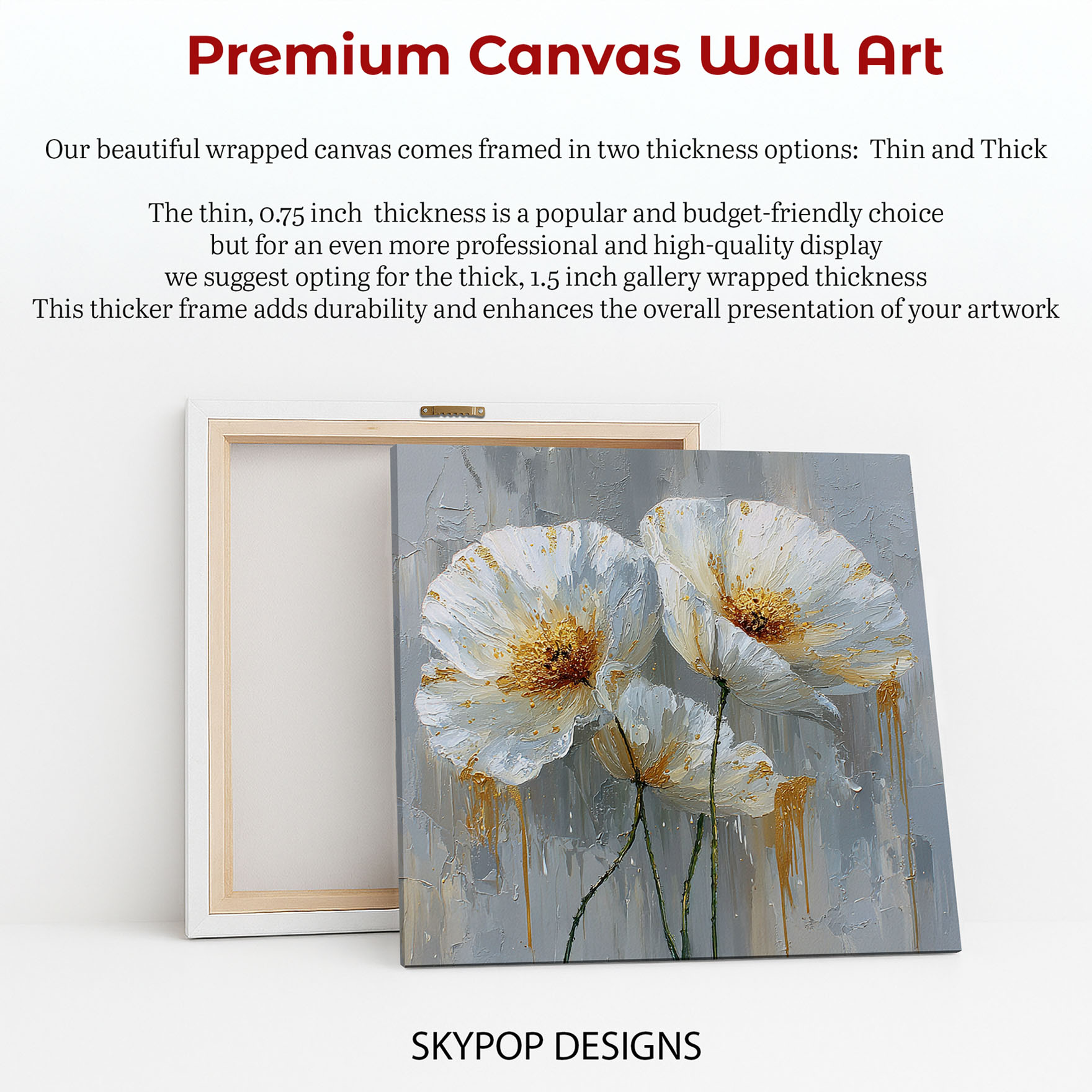 At SKYPOPDESIGNS, we specialize in high-quality canvas and poster prints designed to bring sophistication and style to your space. Please note that our designs are not created with 3D textures or as original oil, acrylic, or watercolor paintings; they are instead HD reproductions of original artwork. This approach allows us to offer these visually stunning pieces at competitive prices, ensuring you receive top-tier, maintenance-free art that’s easy to enjoy.