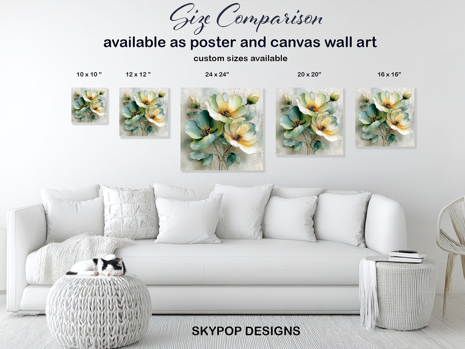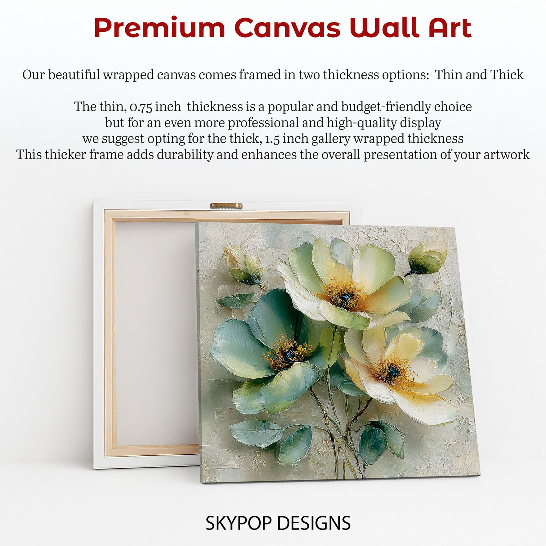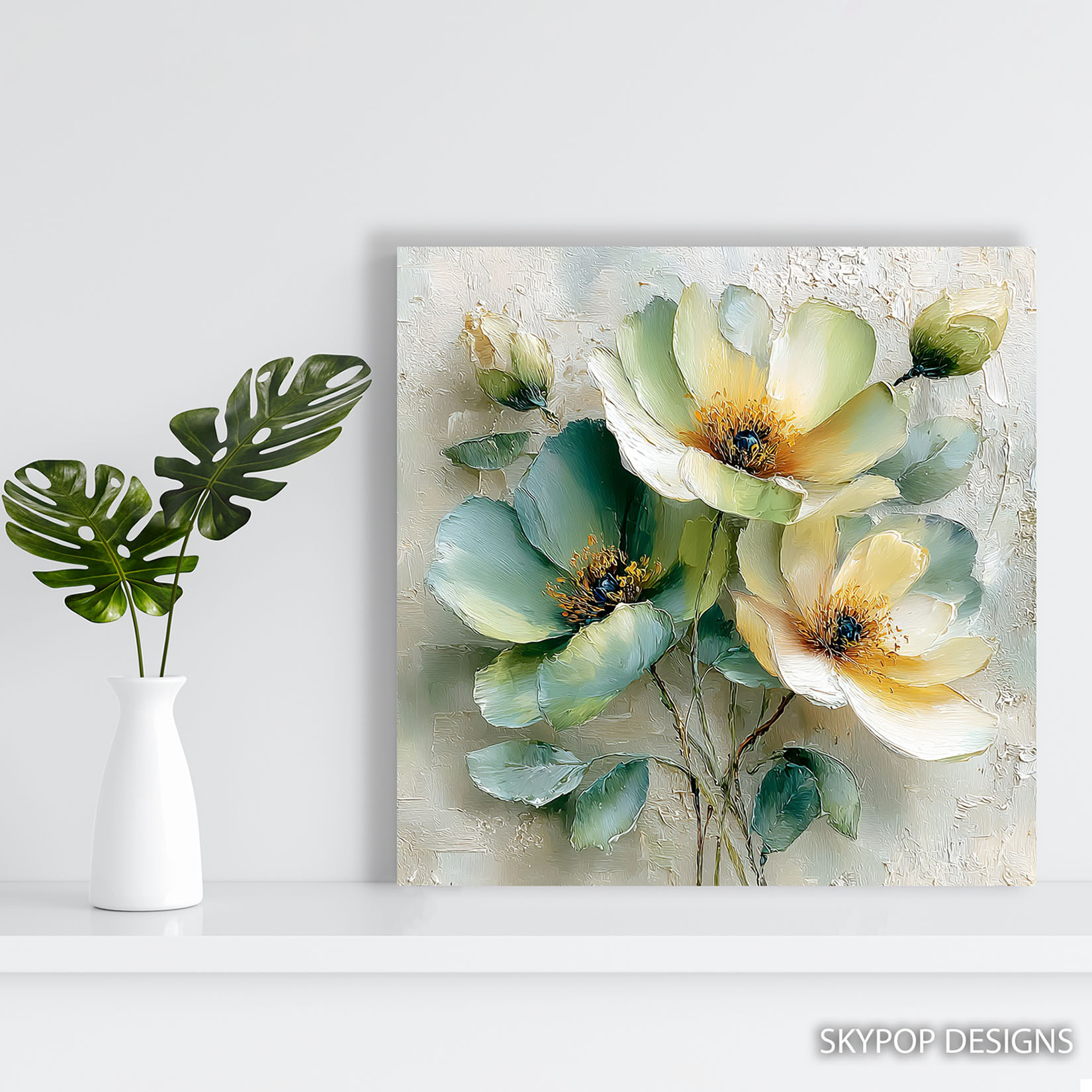 Elevate your home with this breathtaking floral canvas wall art featuring delicate poppy blooms in a contemporary style. This stunning poster or canvas wall art is perfect for transforming your living room with its serene beauty and natural elegance. The soft color palette of white, green, yellow, and beige creates a calming atmosphere ideal for modern and Scandinavian decor. This captivating artwork will enhance your bedroom ensemble or add a sophisticated touch to your entryway. The vibrant yet subtle hues of the poppy flowers bring a sense of renewal and tranquility to any space, making it perfect for mindfulness or creating a peaceful retreat. This high-quality canvas wall art showcases textured brushstrokes, adding depth and dimension to the floral composition for a truly artistic feel. It’s an ideal choice for creating minimalist wall decor that speaks volumes through its understated charm. Whether you’re seeking a striking centerpiece or a subtle accent, this versatile poster or canvas print fits seamlessly into various room designs. This floral art makes a thoughtful housewarming gift or a lovely present for birthdays and holidays. Celebrate the beauty of nature with this stunning flower artwork designed to inspire and uplift your everyday. Transform your interior with this exquisite poppy canvas art, a perfect addition to your collection of nature-inspired wall decor. Add a touch of timeless sophistication and natural grace to your walls today.