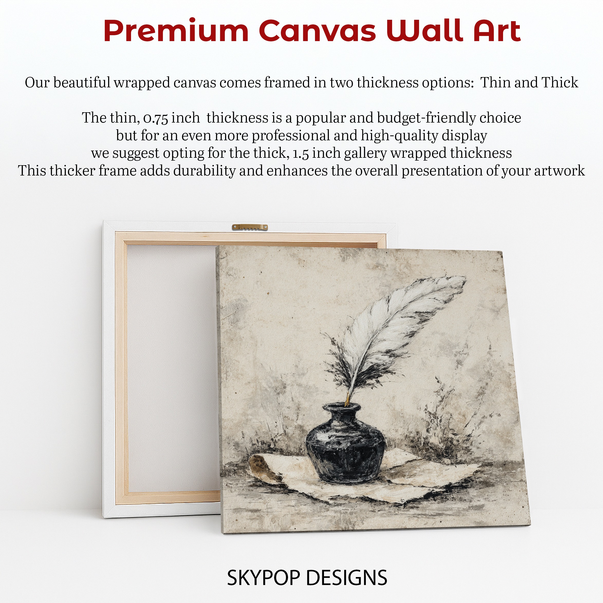 At SKYPOPDESIGNS, we specialize in high-quality canvas and poster prints designed to bring sophistication and style to your space. Please note that our designs are not created with 3D textures or as original oil, acrylic, or watercolor paintings; they are instead HD reproductions of original artwork. This approach allows us to offer these visually stunning pieces at competitive prices, ensuring you receive top-tier, maintenance-free art that’s easy to enjoy.