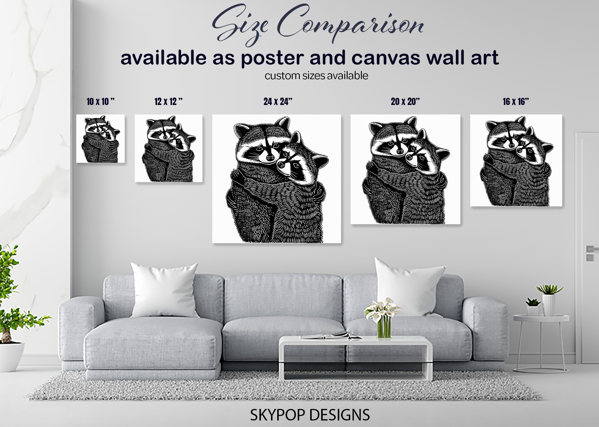 Bring the charm of wildlife into your home with this adorable raccoon canvas wall art. This striking black and white poster captures two cuddling raccoons in an intimate embrace, perfect for adding a touch of nature to your living room or bedroom decor. The intricate linework and detailed fur textures create a captivating visual that draws the eye and adds depth to any wall. Ideal for contemporary or rustic interiors, this modern animal art print works wonderfully as a focal point in a nursery or a conversation starter in your home office. The monochromatic palette ensures versatility, effortlessly complementing various color schemes and decor styles. This raccoon wall art celebrates the beauty of forest creatures while adding a whimsical element to your space. The high-quality canvas print showcases every whisker and fur detail, bringing these woodland creatures to life. Whether you’re a nature enthusiast or simply looking for unique wall decor, this raccoon hug artwork offers both charm and artistic appeal. Gift it to animal lovers or use it to create a cozy atmosphere in your own home. Elevate your interior design with this endearing raccoon canvas that blends nature’s beauty with modern artistry. Transform your space today with this delightful piece of animal-themed wall art.
