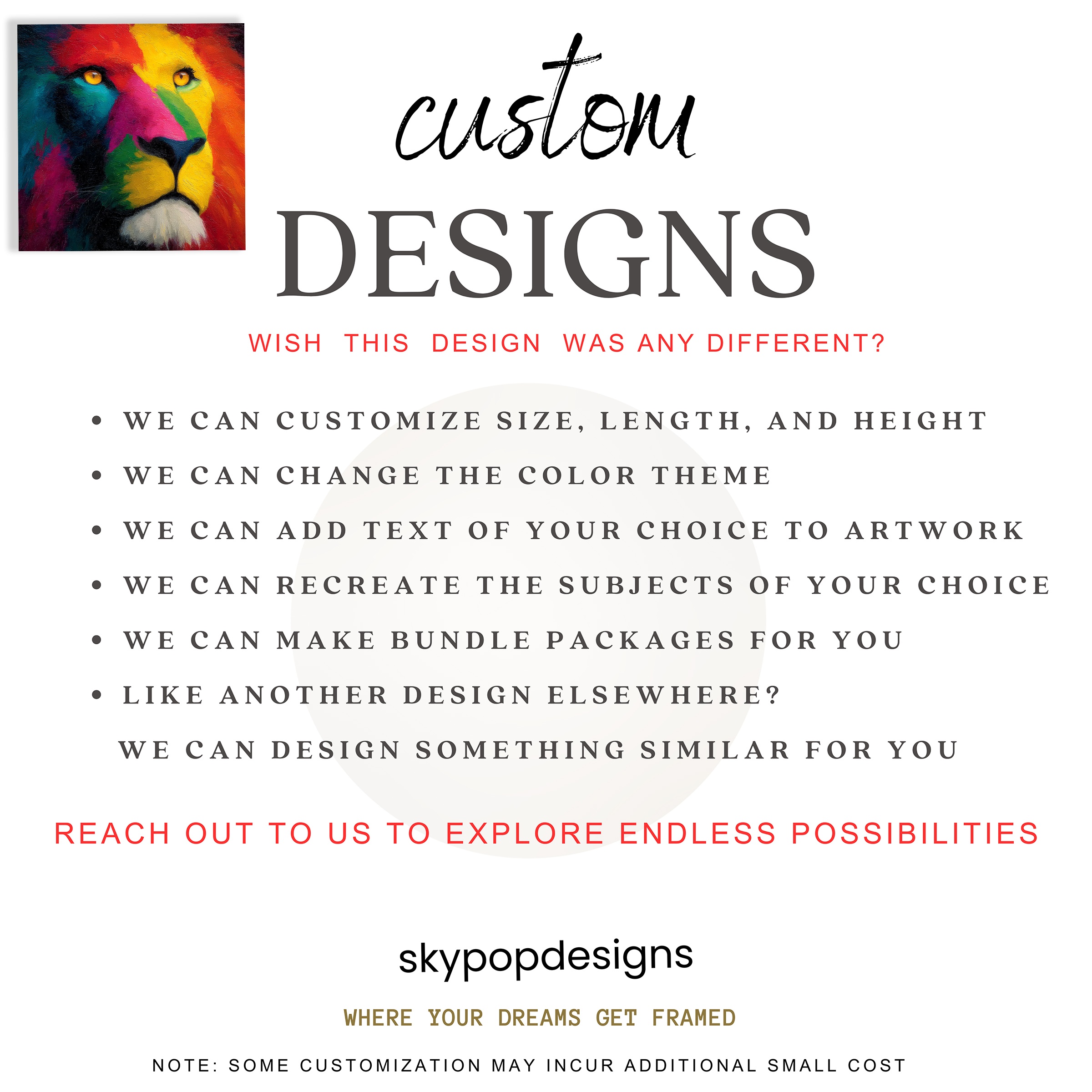 At SKYPOPDESIGNS, we specialize in high-quality canvas and poster prints designed to bring sophistication and style to your space. Please note that our designs are not created with 3D textures or as original oil, acrylic, or watercolor paintings; they are instead HD reproductions of original artwork. This approach allows us to offer these visually stunning pieces at competitive prices, ensuring you receive top-tier, maintenance-free art that’s easy to enjoy.