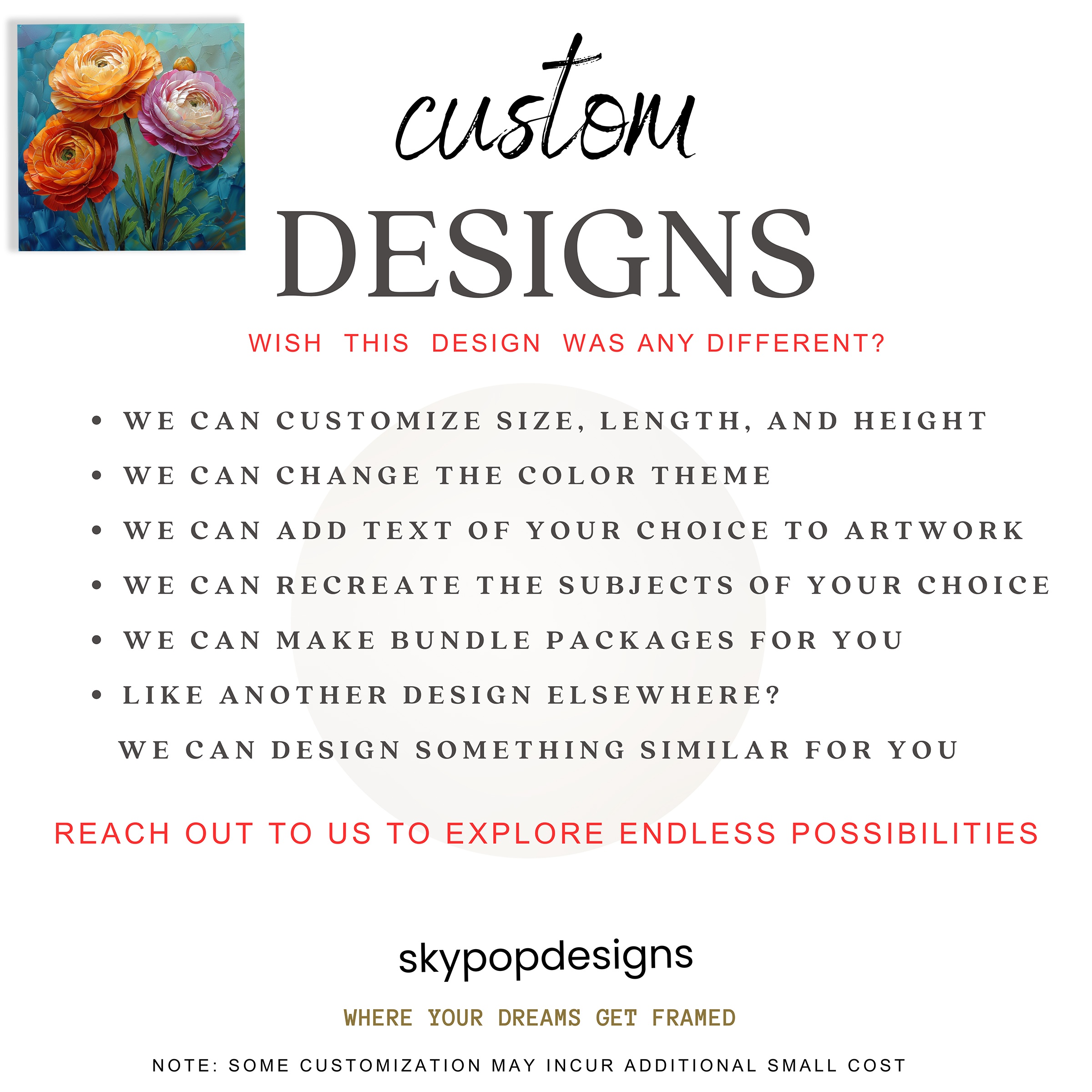 At SKYPOPDESIGNS, we specialize in high-quality canvas and poster prints designed to bring sophistication and style to your space. Please note that our designs are not created with 3D textures or as original oil, acrylic, or watercolor paintings; they are instead HD reproductions of original artwork. This approach allows us to offer these visually stunning pieces at competitive prices, ensuring you receive top-tier, maintenance-free art that’s easy to enjoy.