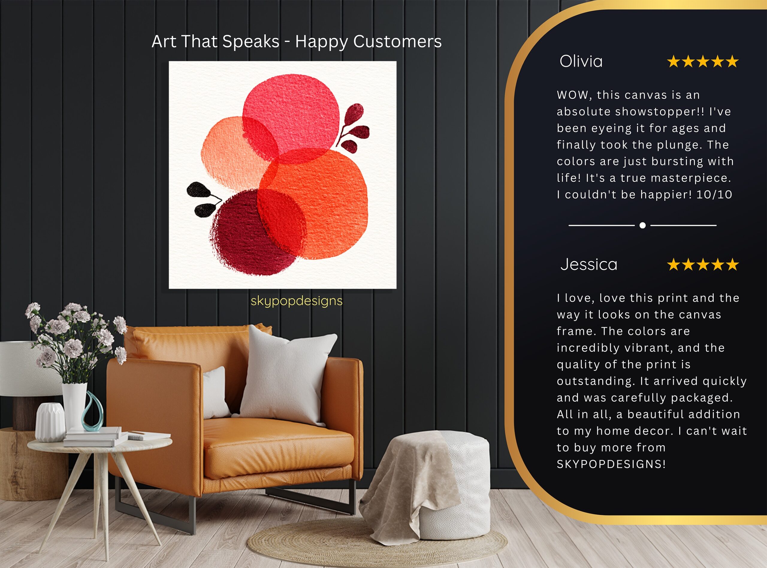 Elevate your space with this striking abstract canvas wall art featuring bold red and orange circles. This contemporary poster transforms any room with its vibrant color palette and minimalist design. Perfect for modern living rooms or sleek office spaces, the artwork’s clean lines and overlapping shapes create a captivating visual rhythm. The rich red hues evoke energy and passion, while softer orange tones add warmth and depth to the composition. Ideal for minimalist decor enthusiasts, this piece adds a pop of color without overwhelming your space. The textured brushwork gives the circles a handcrafted feel, ensuring this canvas wall art remains engaging from every angle. Great as a focal point in Scandinavian-inspired interiors or as part of a gallery wall in a dining room. The high-quality printing captures every subtle color variation, from deep maroon to bright coral. Whether displayed in a cozy bedroom or a contemporary home office, this versatile artwork adapts to various interior styles. Make a statement with this modern abstract piece that celebrates simplicity and bold color. Transform your walls and create a fresh, inspiring atmosphere in any room with this eye-catching red circles art today.