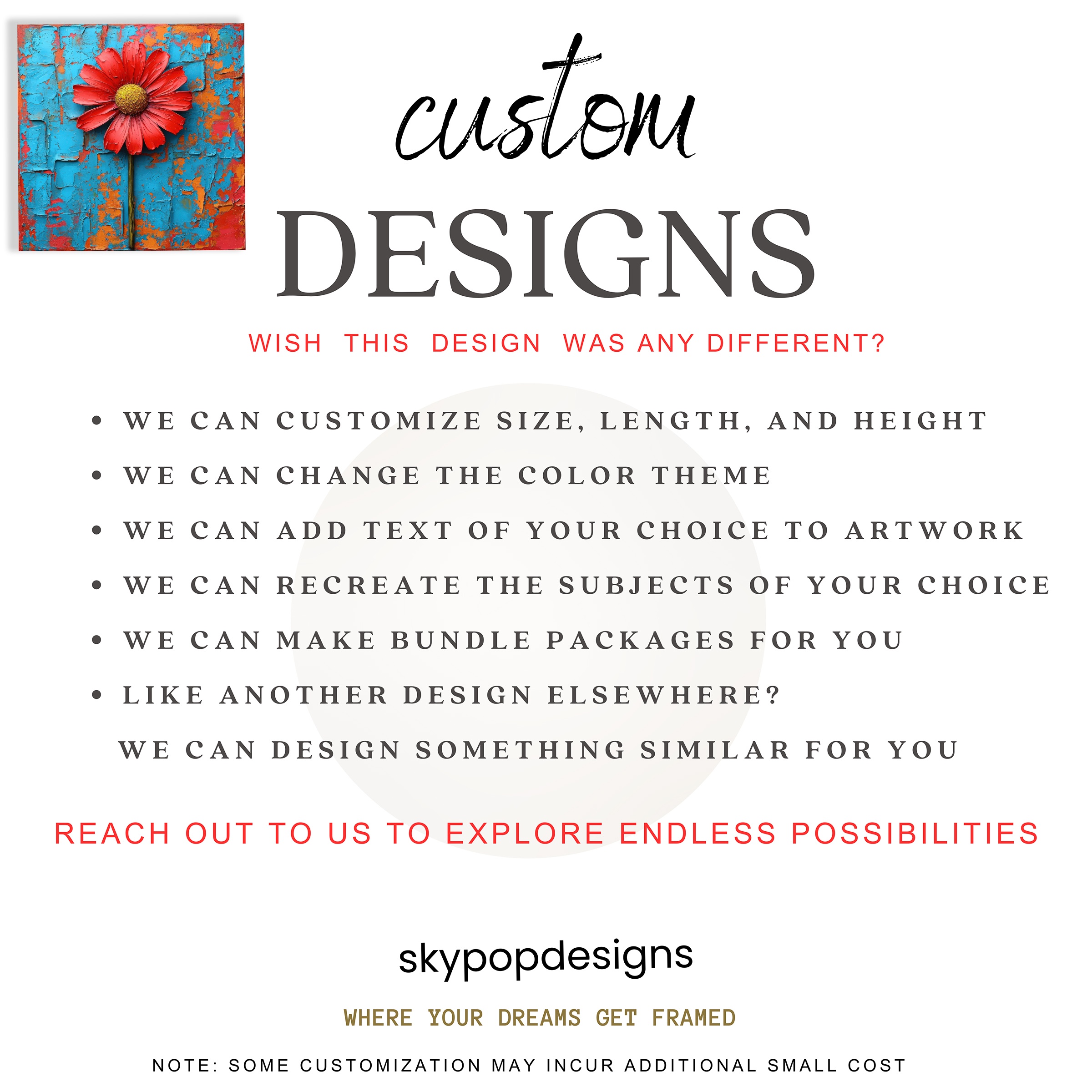 At SKYPOPDESIGNS, we specialize in high-quality canvas and poster prints designed to bring sophistication and style to your space. Please note that our designs are not created with 3D textures or as original oil, acrylic, or watercolor paintings; they are instead HD reproductions of original artwork. This approach allows us to offer these visually stunning pieces at competitive prices, ensuring you receive top-tier, maintenance-free art that’s easy to enjoy.