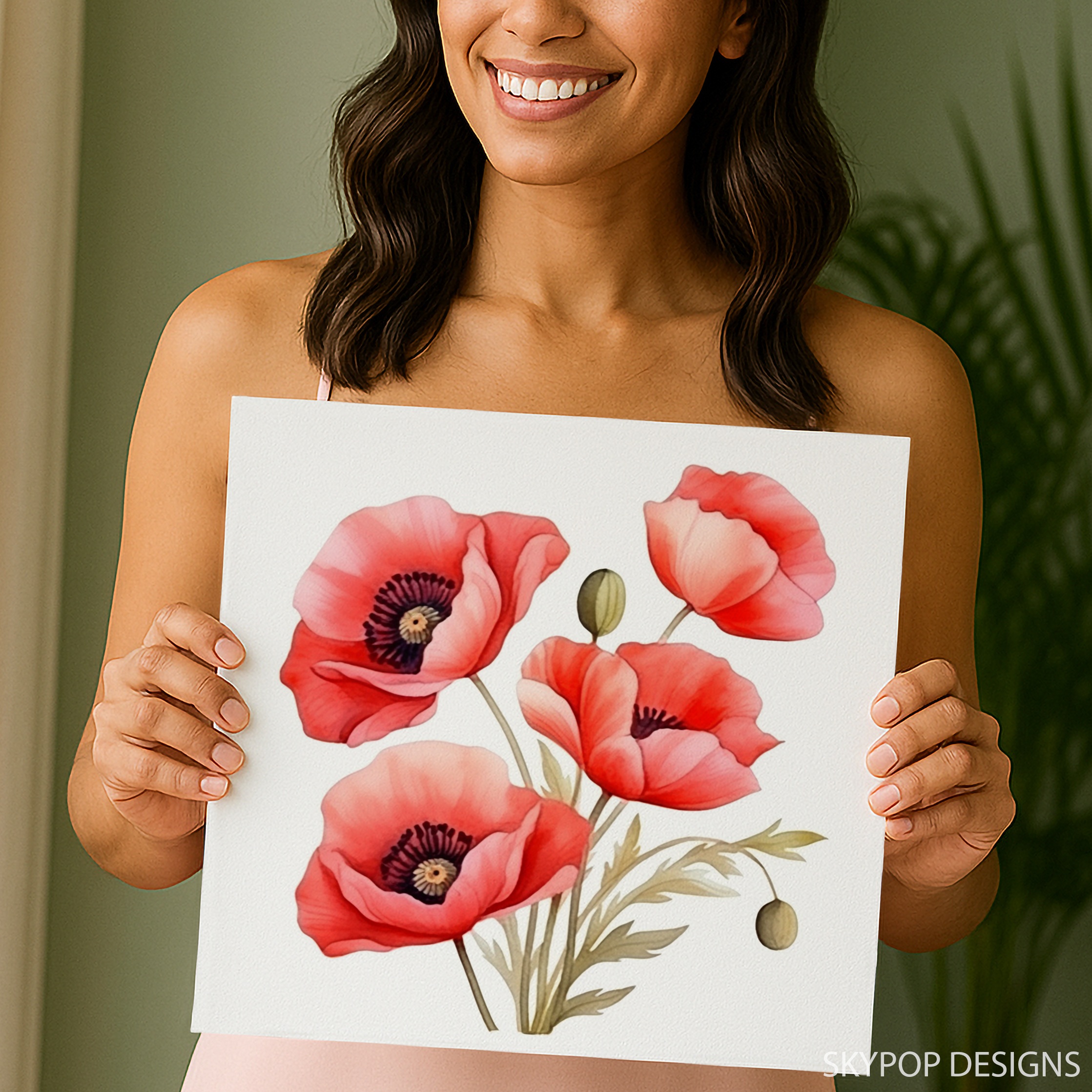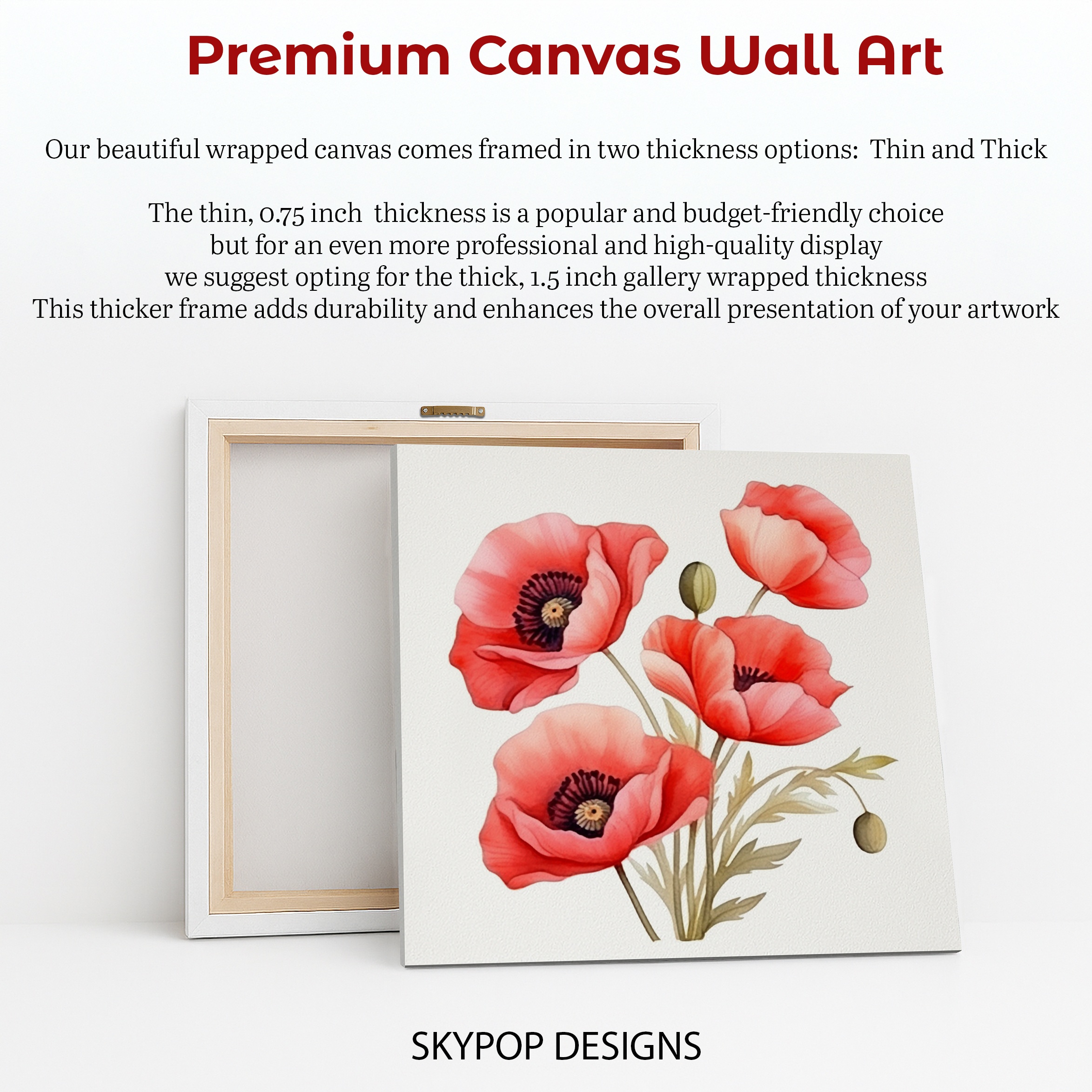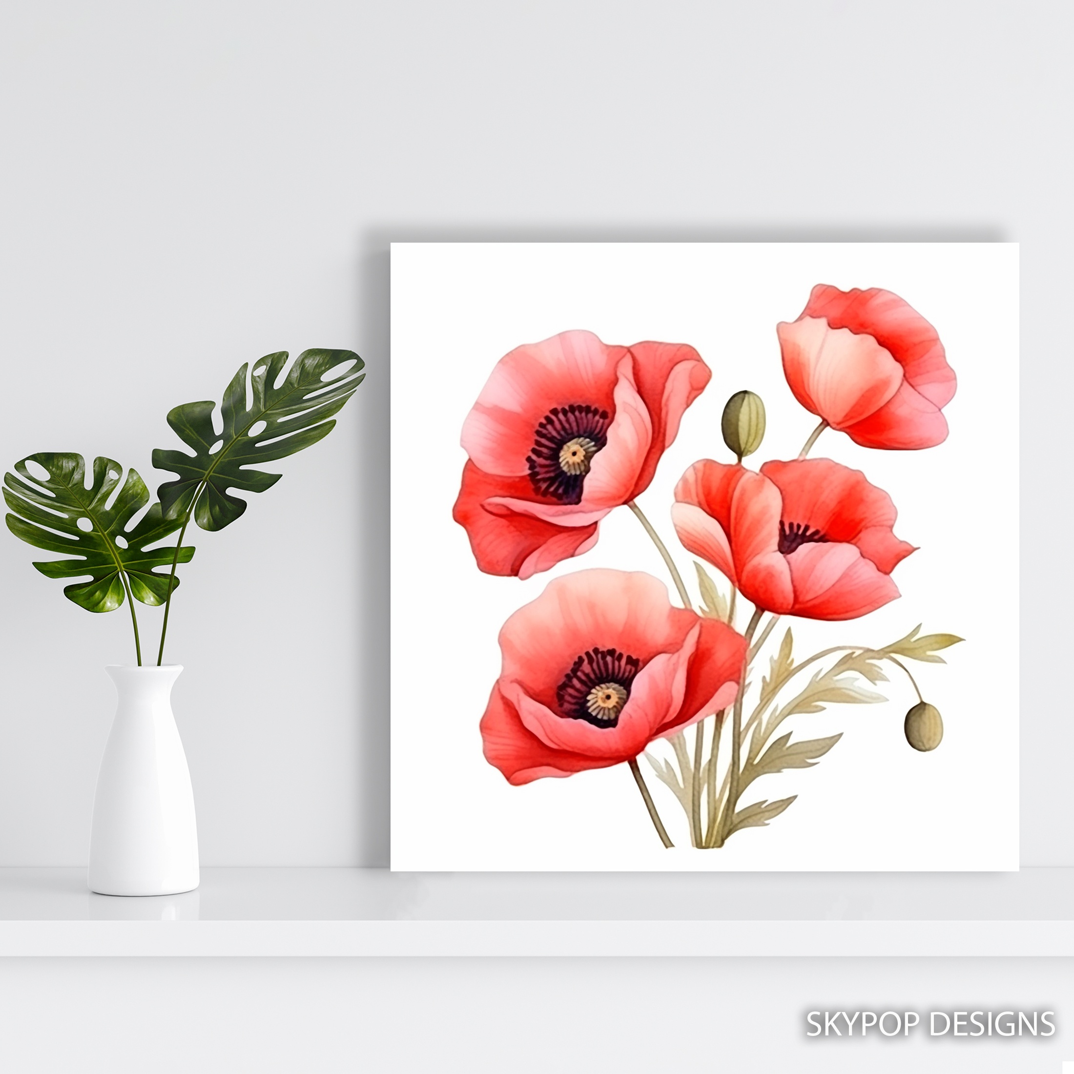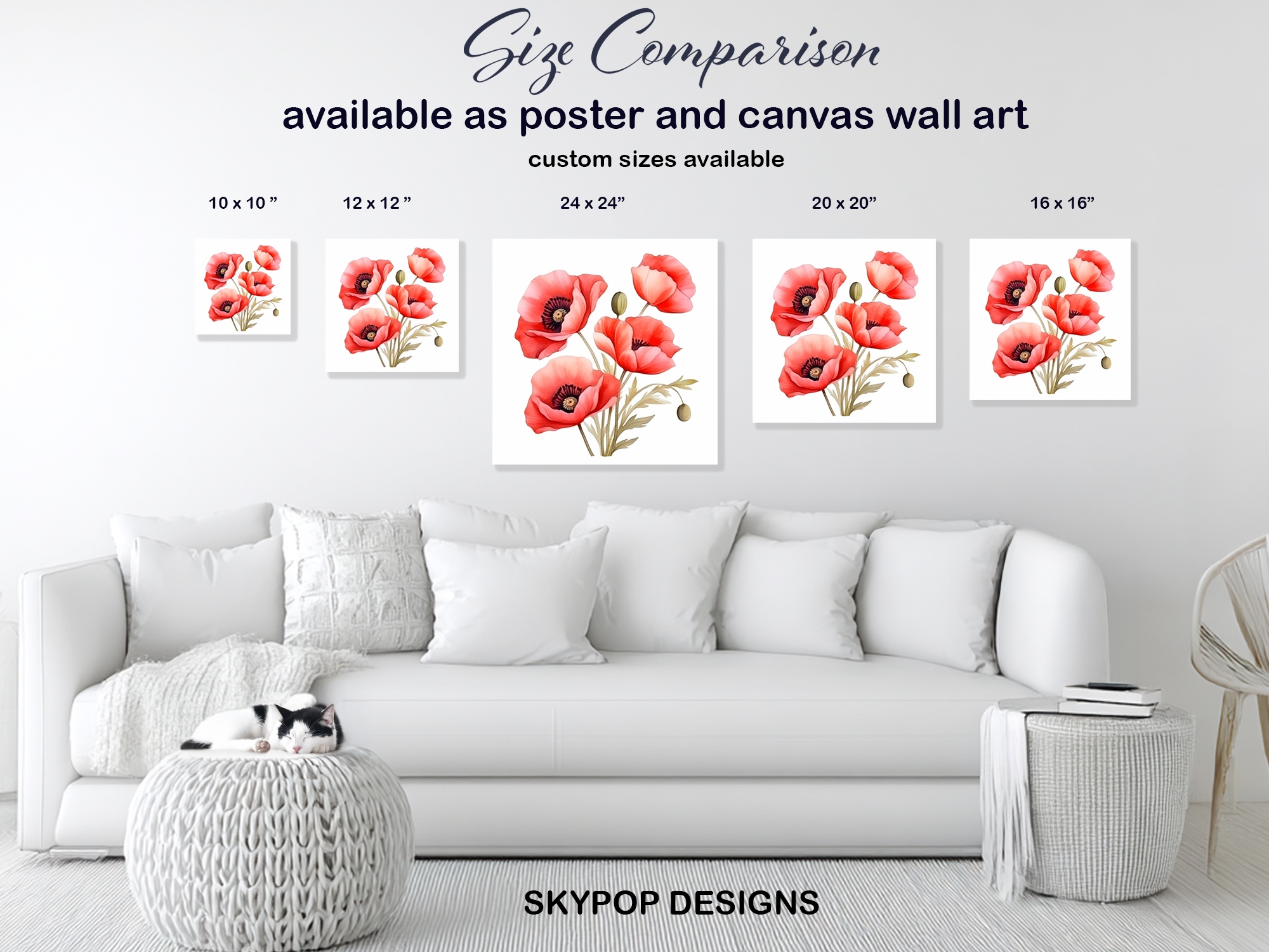 Bring the beauty of nature indoors with this stunning red poppy canvas wall art. This vibrant floral poster instantly transforms any space with its bold, contemporary design and lifelike detail. Perfect for modern living rooms or minimalist bedrooms, the striking red and pink hues of the poppies create a captivating focal point against a crisp white background. The delicate petals and intricate centers of each flower are rendered with exquisite precision, showcasing the natural beauty of these beloved blooms. Ideal for Scandinavian-inspired interiors, this piece adds a touch of organic elegance to clean, streamlined spaces. The subtle green stems and leaves provide a refreshing contrast, enhancing the overall composition. Whether displayed as a standalone statement or part of a gallery wall, this poppy wall art brings a sense of serenity and natural charm to your home. The high-quality printing ensures every brushstroke and petal is captured in vivid detail, making this canvas a long-lasting addition to your decor. Suitable for various room sizes, this versatile artwork adapts beautifully to dining rooms, home offices, or entryways. Elevate your space with this contemporary floral masterpiece that celebrates the timeless allure of poppies. Transform your walls and bring a touch of nature’s wonder into your daily life with this eye-catching poppy canvas art.