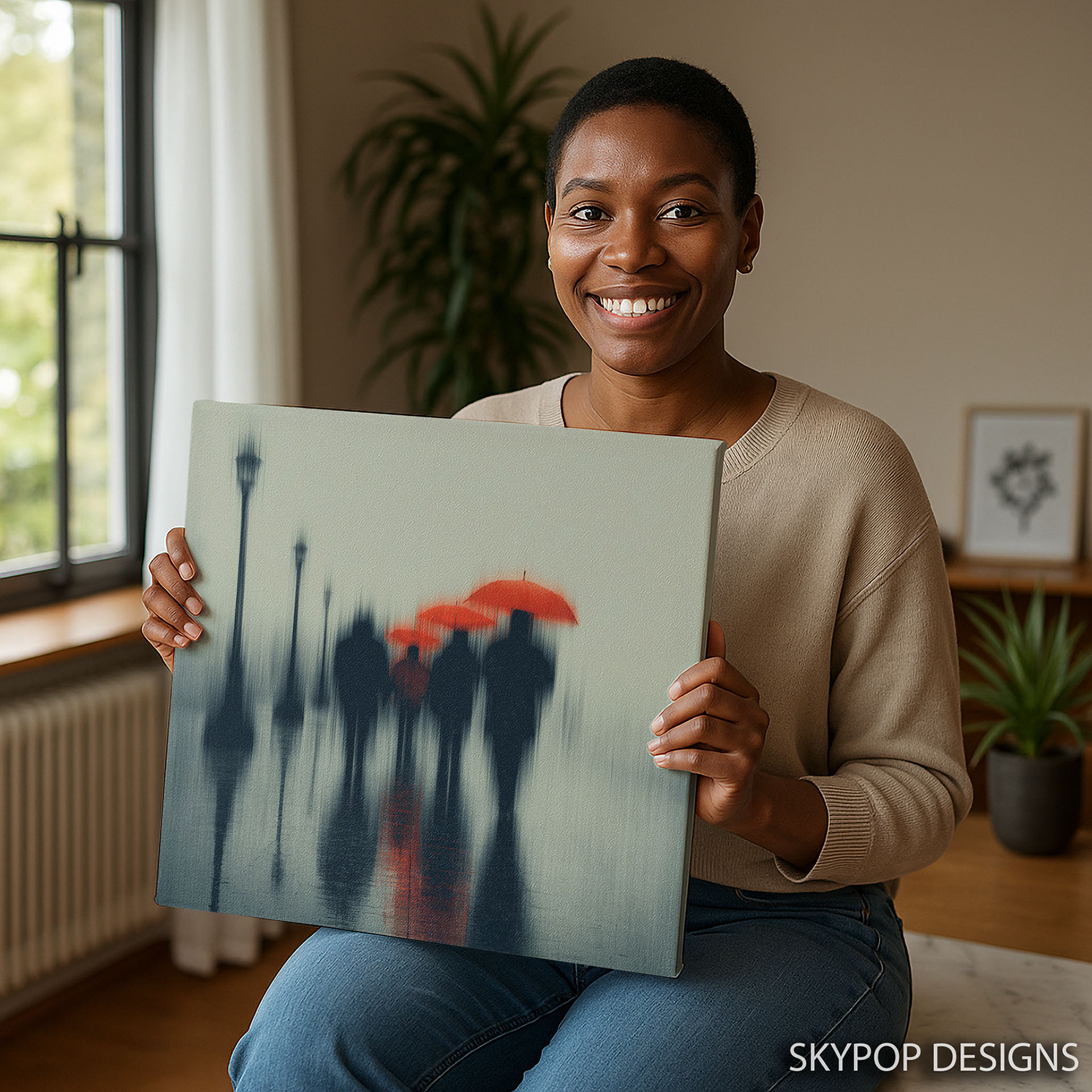 Transform your home with this captivating red umbrellas in the rain canvas wall art, a piece that evokes emotion and style. This stunning poster or canvas wall art captures the essence of a rainy day with a unique artistic flair, creating a striking focal point for any room. The contrasting red umbrellas against the muted grey and black tones add a dramatic and modern touch, making it perfect for contemporary living rooms or minimalist entryways. This artwork’s impressionistic style and clean lines make it an ideal choice for modern decor, while its coastal feel can complement beach-inspired spaces. The vibrant red symbolizes energy and optimism, injecting life into a potentially somber scene, making this a truly inspirational piece. High-quality printing on canvas ensures the rich colors and textured effect are preserved, creating a lasting visual impact. Whether you’re looking to enhance your office decor or add character to a quiet hallway, this versatile wall art is sure to impress. It is an ideal choice for those seeking modern wall decor that sparks conversation and adds personality. This canvas wall art is also a thoughtful gift for housewarmings, birthdays, or any occasion celebrating new beginnings. Elevate your interior design with this artistic expression of everyday life. Bring a sense of movement and mood to your space with this unique red umbrellas canvas art today.