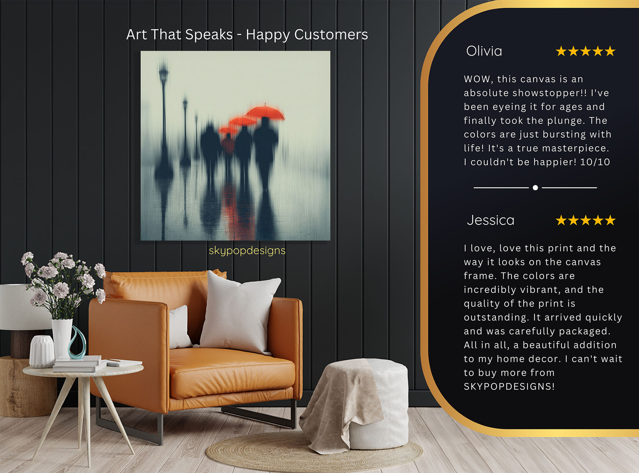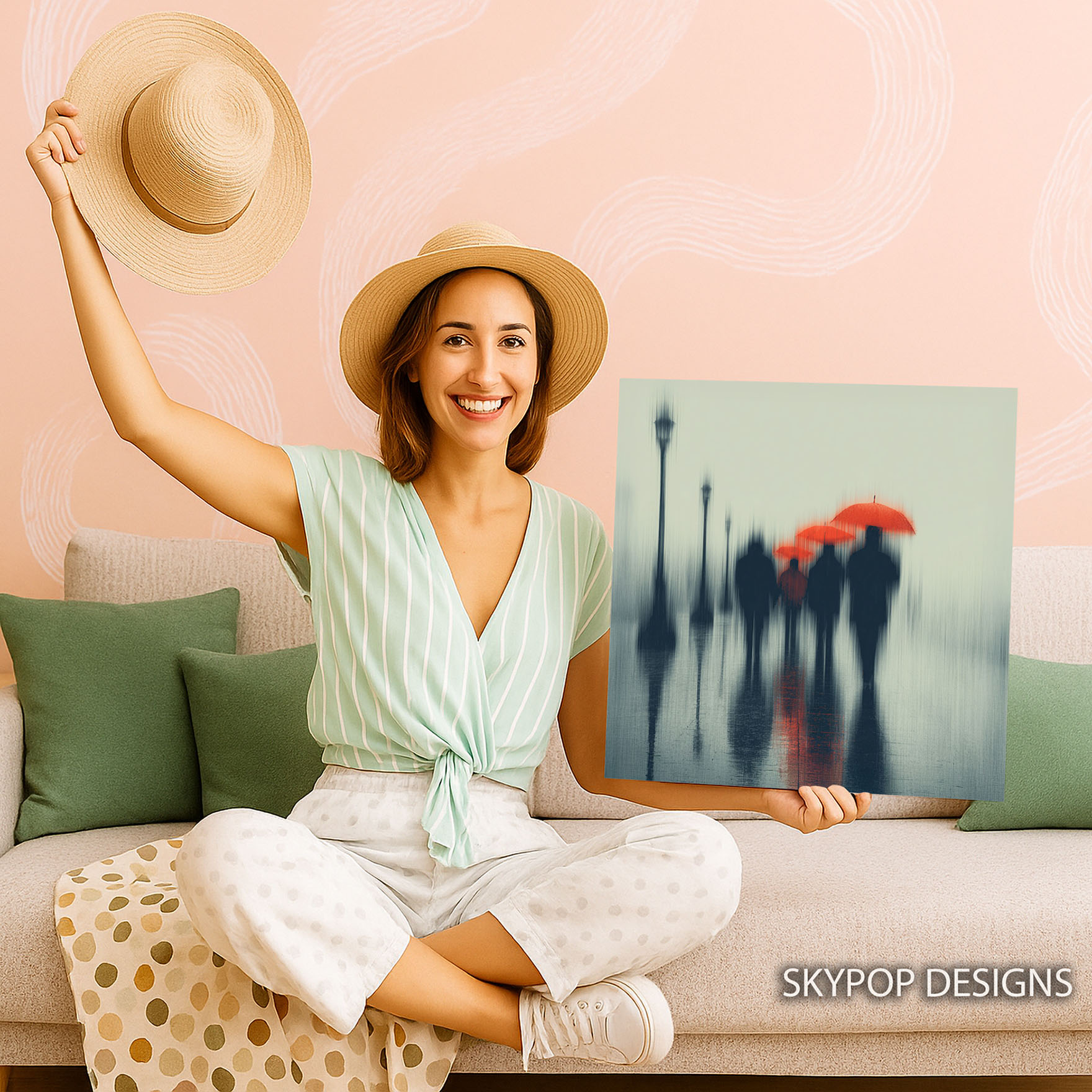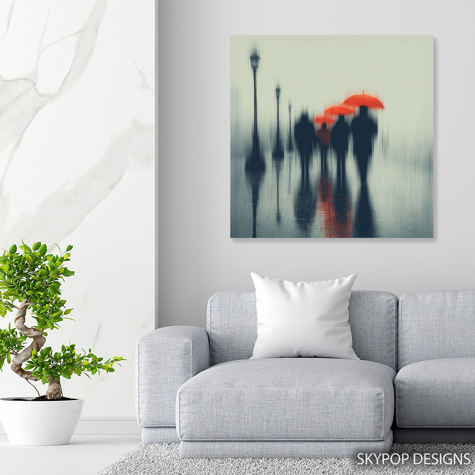 Transform your home with this captivating red umbrellas in the rain canvas wall art, a piece that evokes emotion and style.