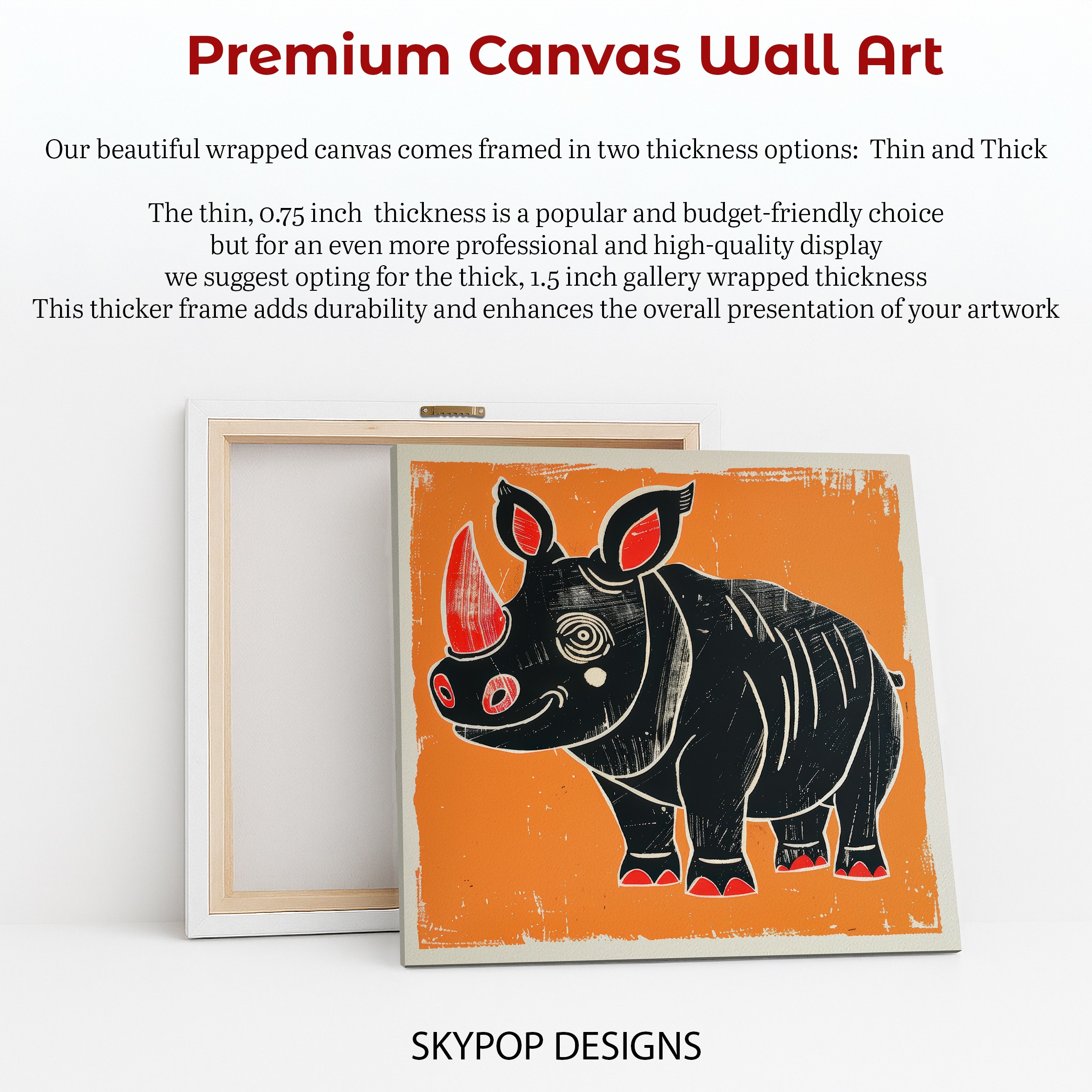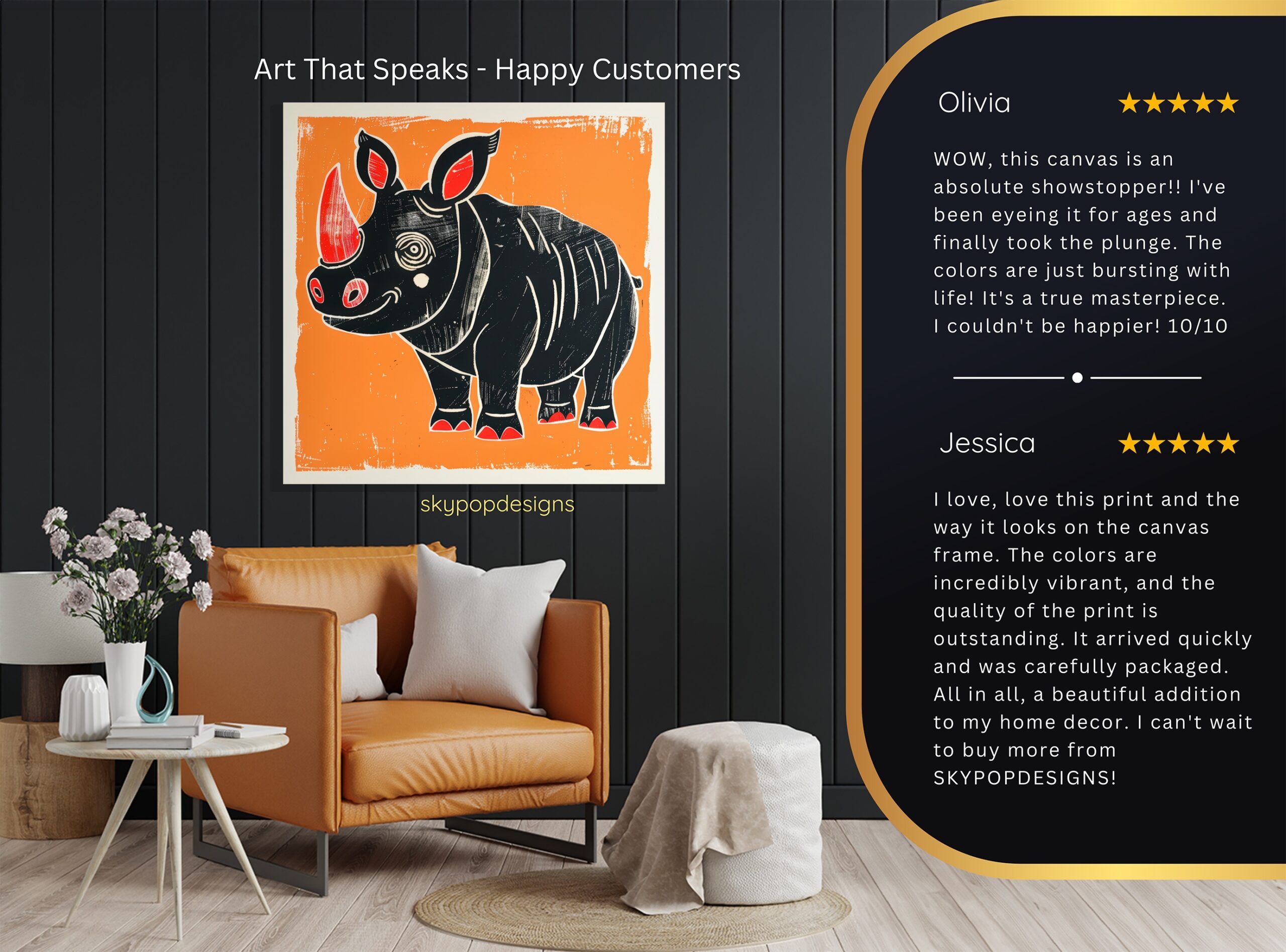 Keywords: Rhino Art, Animal Wall Art, Pop Art Canvas, Graffiti Art Print, Contemporary Decor, Modern Living Room, Bohemian Bedroom, Orange Black White Red, Statement Art, Rhino Poster, Bold Design, Wall Decor, Art for Office, Kids Room Art, Animal Lovers Gift, Unique Home Decor, Vibrant Canvas, Graphic Art, Urban Vibe, Textured Art, Energetic Colors, Creative Wall Art, Children’s Room Decor, Textured Artwork, Rhino Print, Canvas Art, Animal Advocacy, Eclectic Decor, Modern Art, Bold Rhino Statement