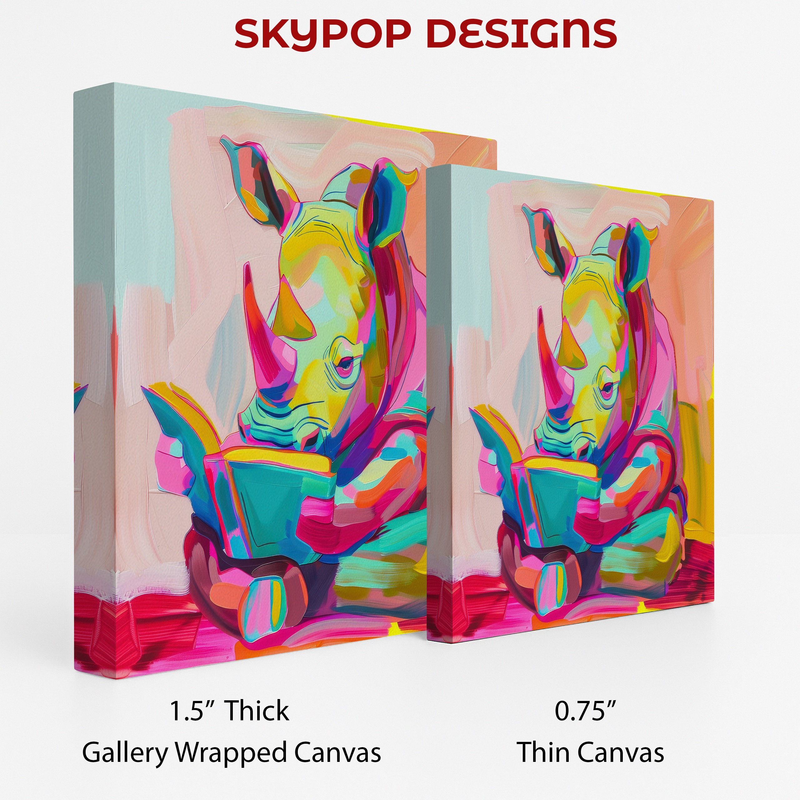 Keywords: Abstract Rhino Art, Contemporary Wall Art, Animal Art Print, Reading Rhino Decor, Multicolor Canvas Art, Pink Yellow Teal Art, Modern Home Decor, Bohemian Wall Decor, Minimalist Art Piece, Living Room Art, Bedroom Wall Art, Office Decor, Entryway Art, Statement Wall Art, Unique Artwork, Vibrant Home Decor, Bold Brushstrokes, Expressive Color, Joyful Art, Intellectual Curiosity, Gift for Book Lovers, Gift for Animal Enthusiasts, Home Art Collection, Canvas Wall Hanging, Rhino Poster, Modern Art Style, Bohemian Decor, Contemporary Art, Animal Lover Gift, Creative Decor